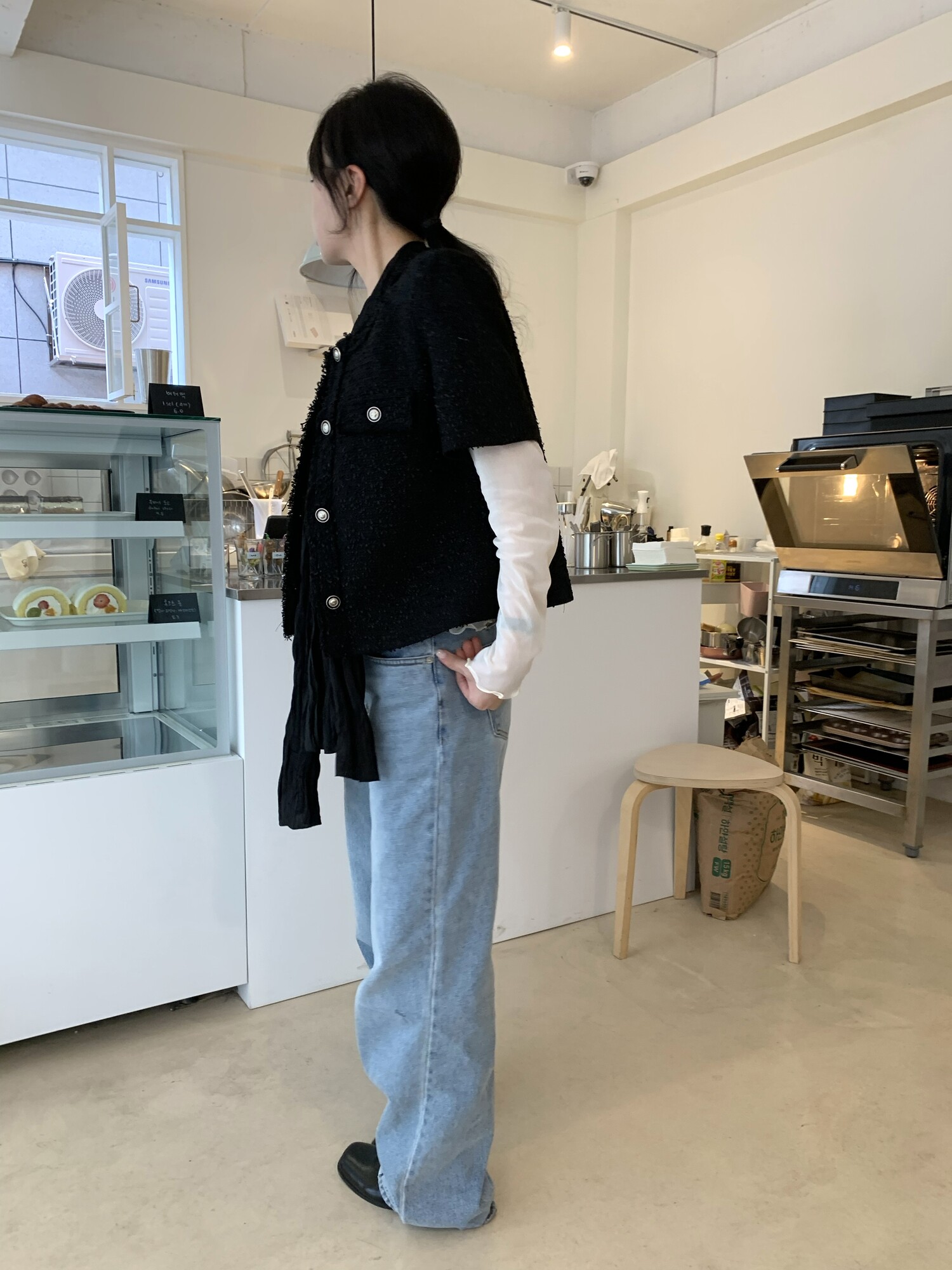 162cm / 허리 28 (상의 s, 하의m 힙과 허벅지가 큰편) / 신발 240mm