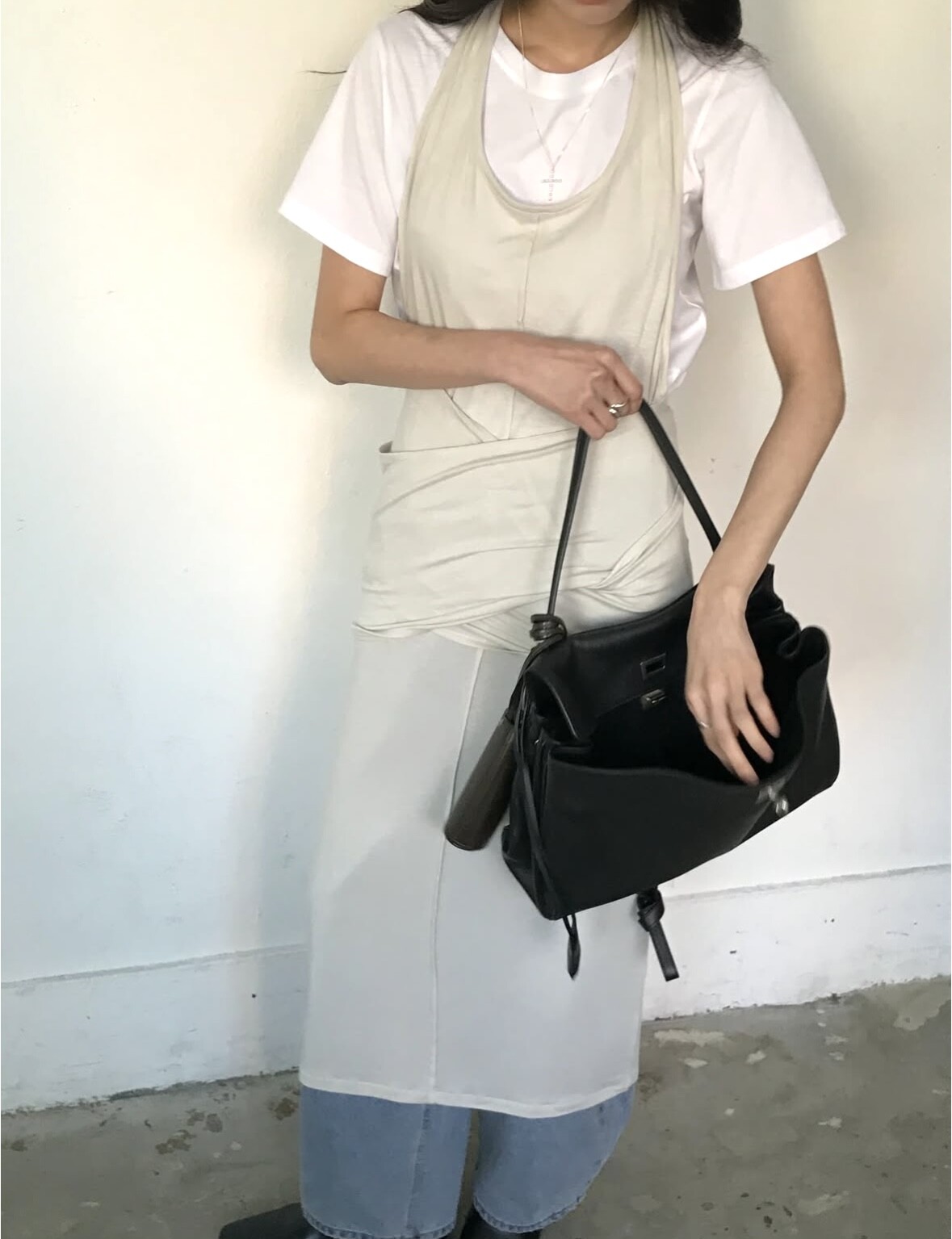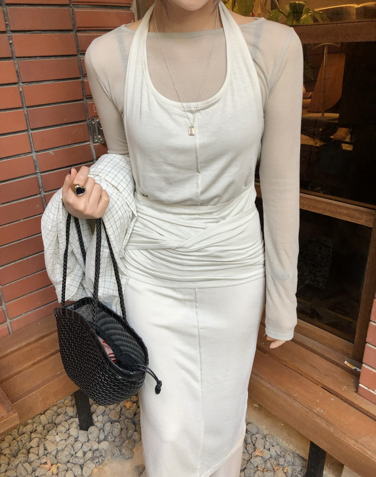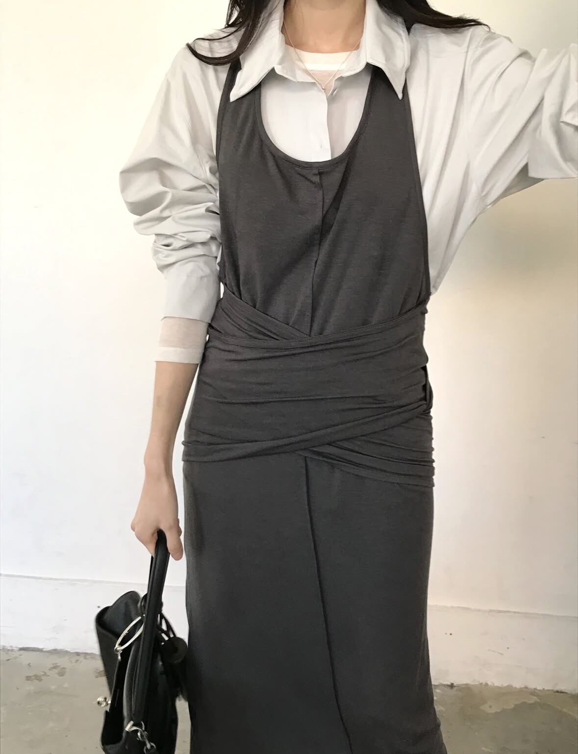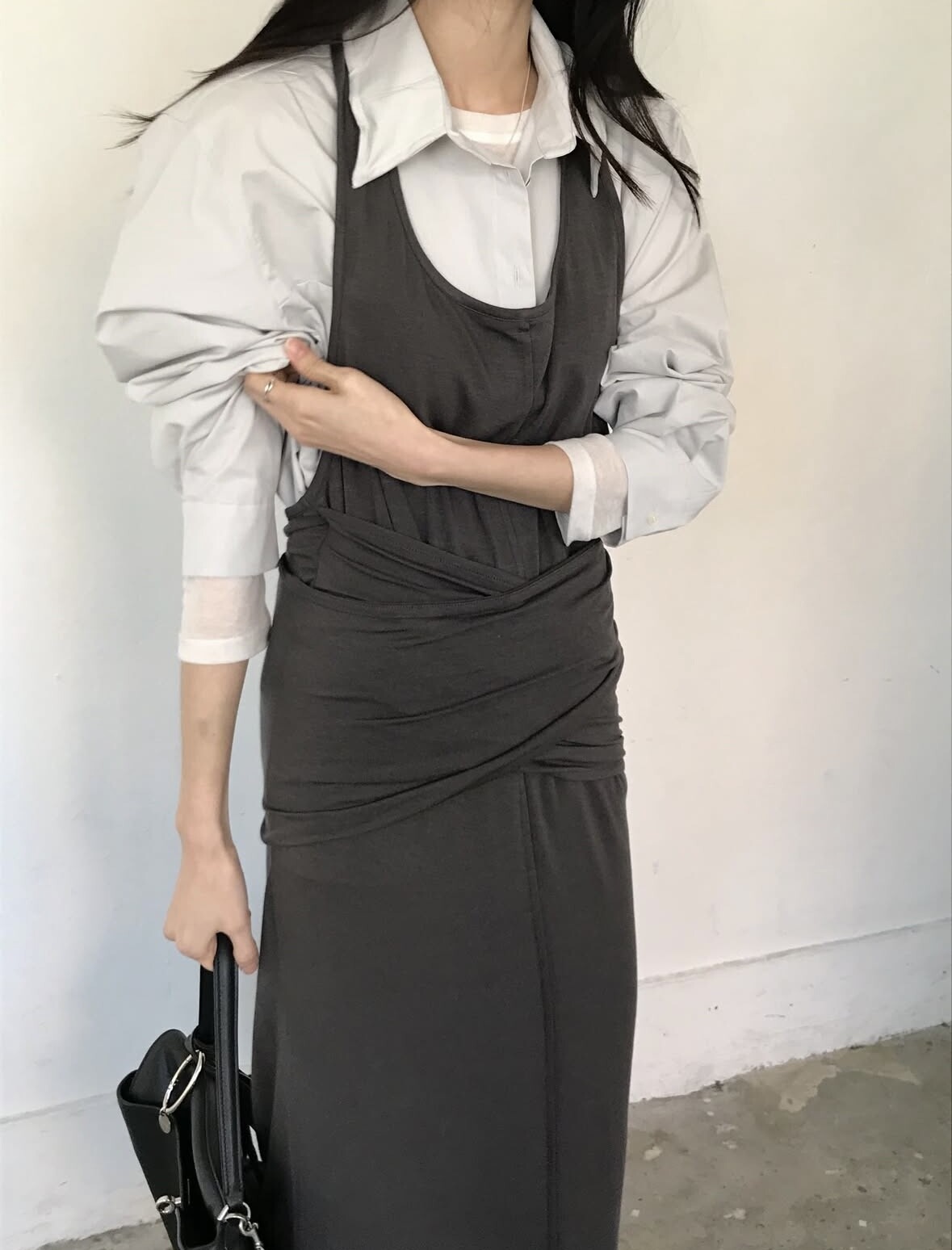 굉장히 부드럽고 스판성 좋은 가벼운 텐셀 혼방으로 레이어드하여 입기 특히나 좋으며