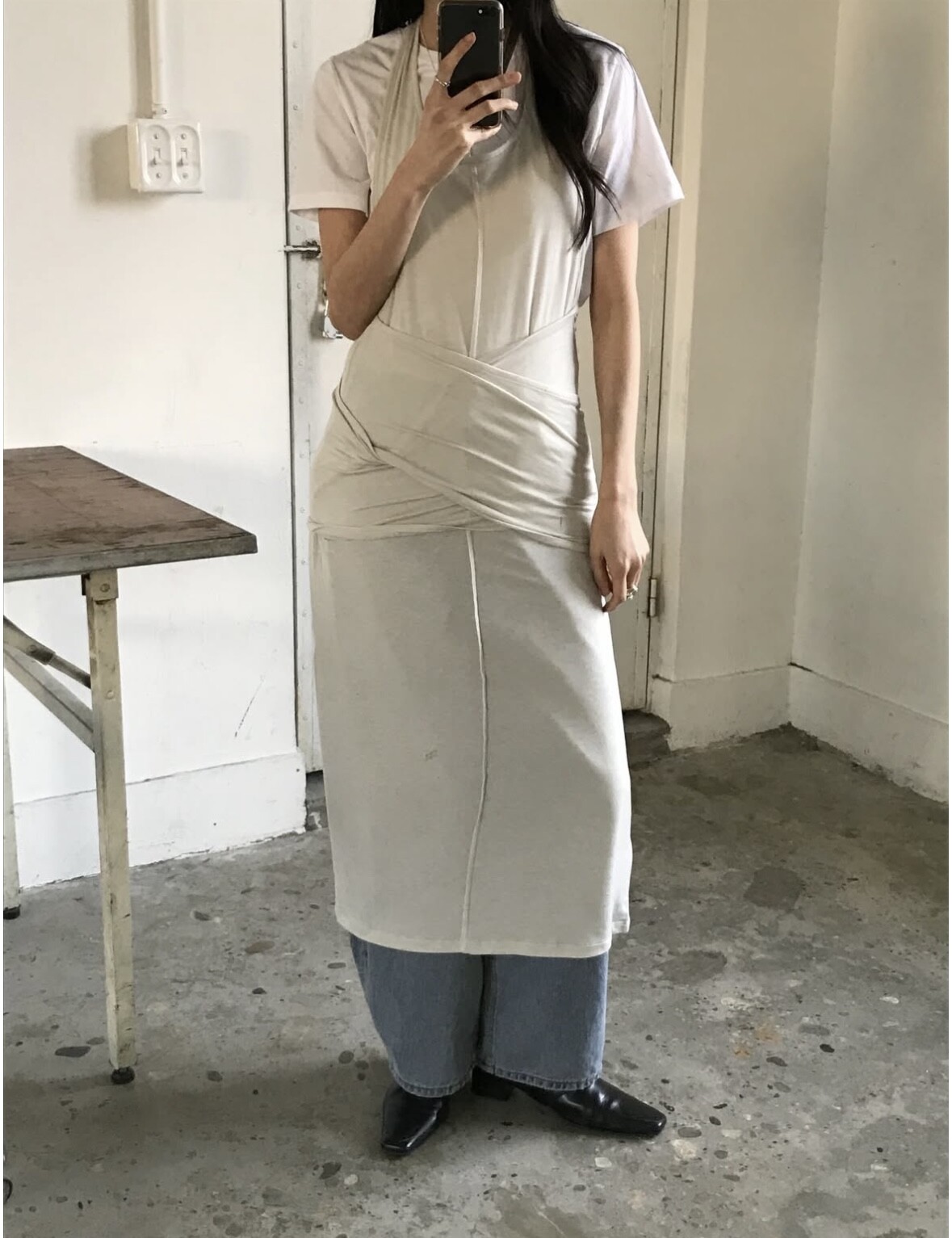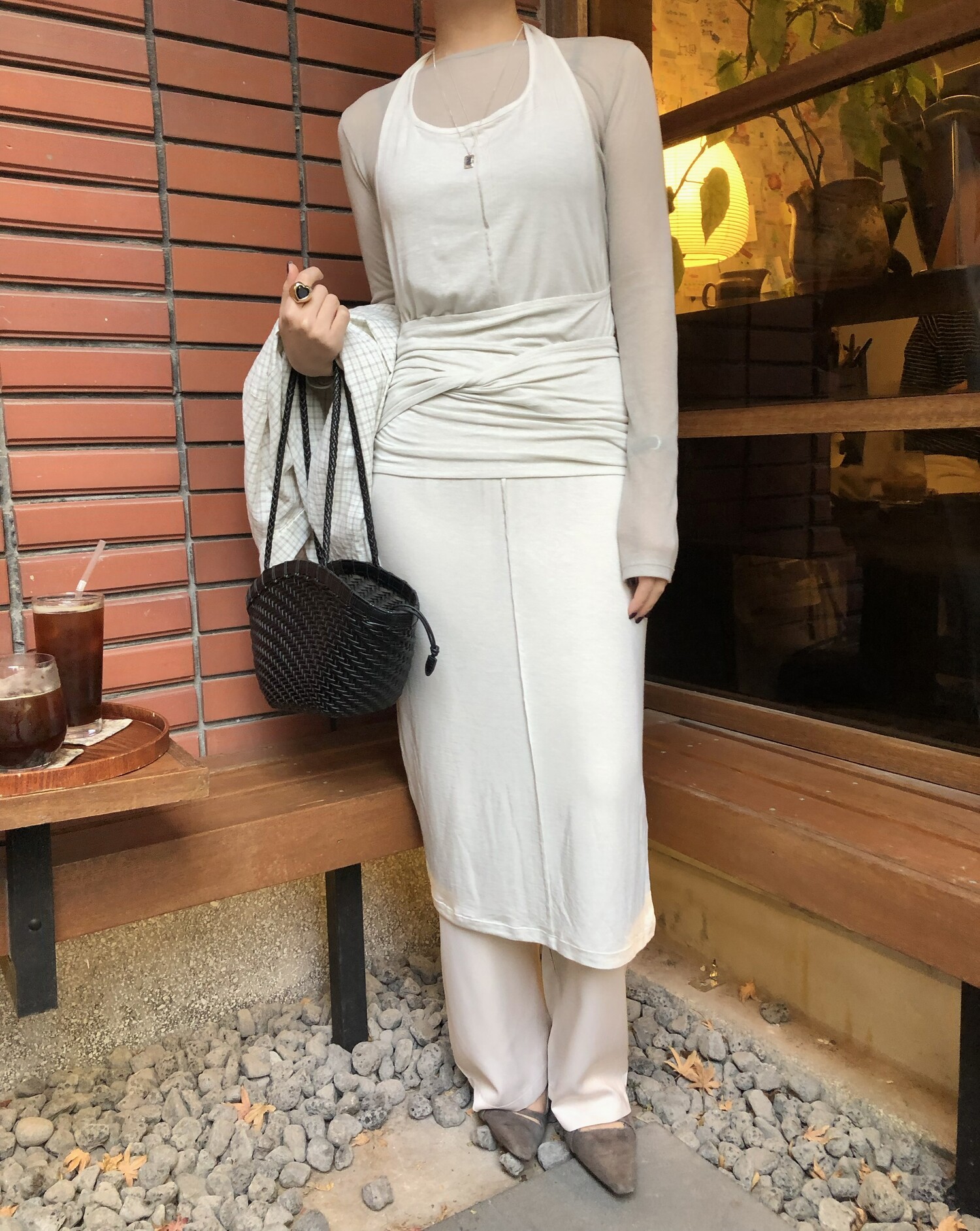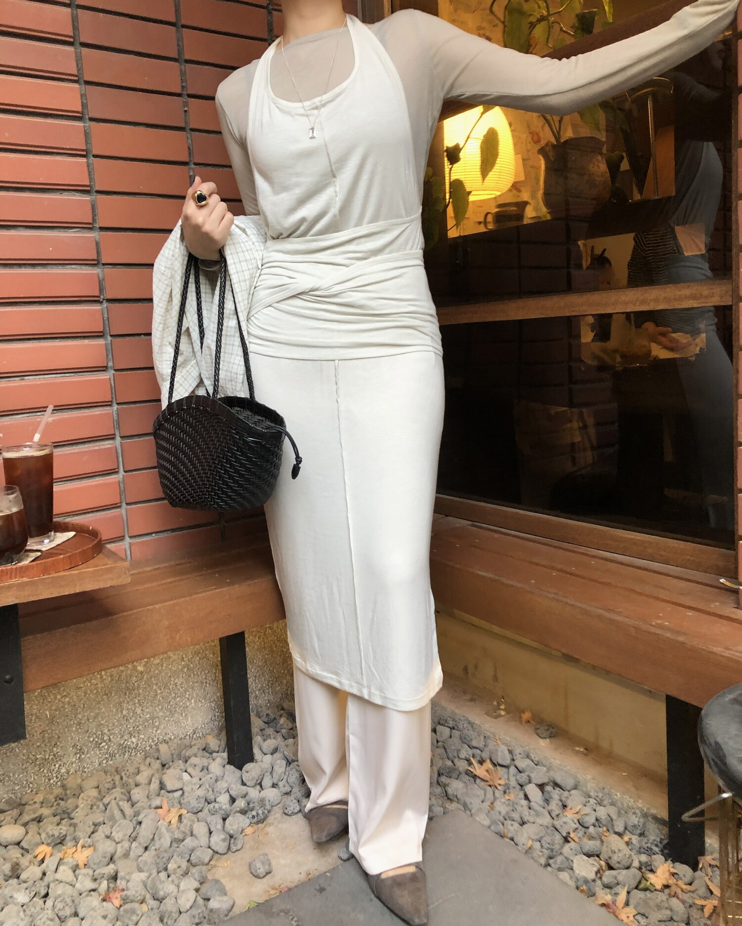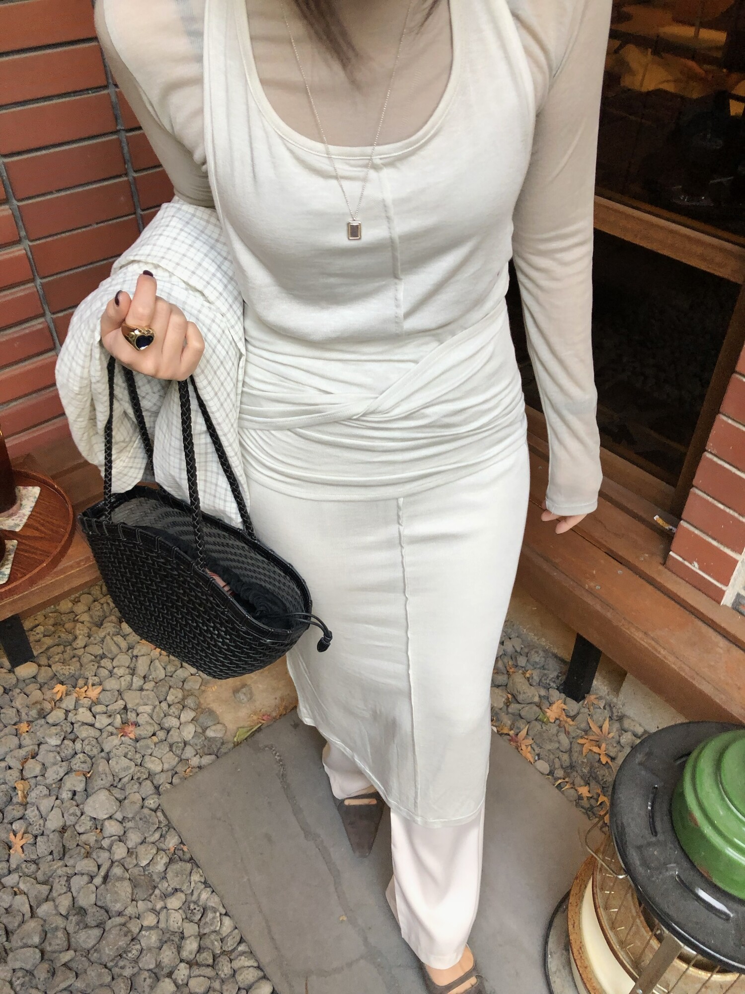 굉장히 부드럽고 스판성 좋은 가벼운 텐셀 혼방으로 레이어드하여 입기 특히나 좋으며