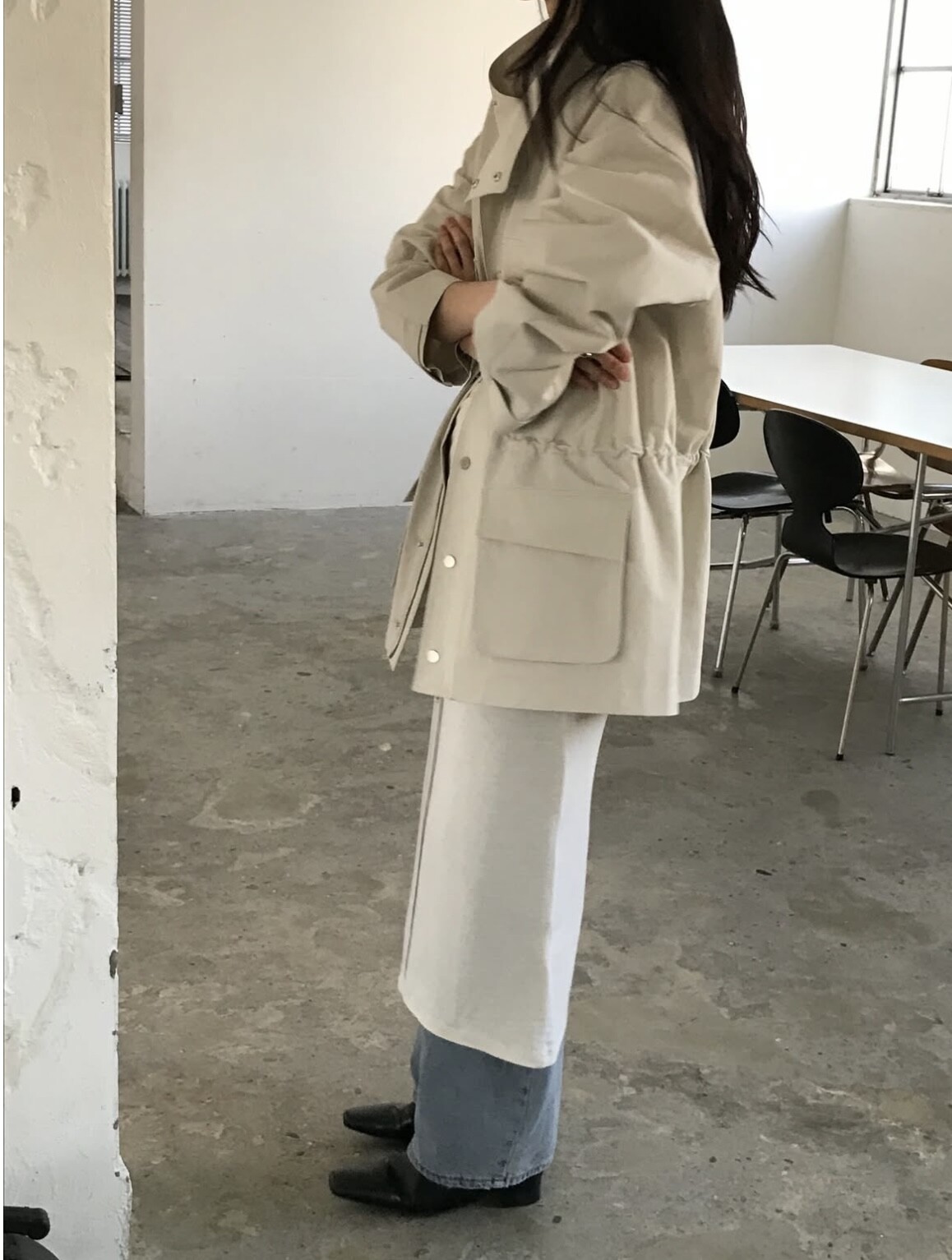 실루엣을 강조해주는 슬림핏이에요. 시즌리스하게 입으실 수 있습니다.