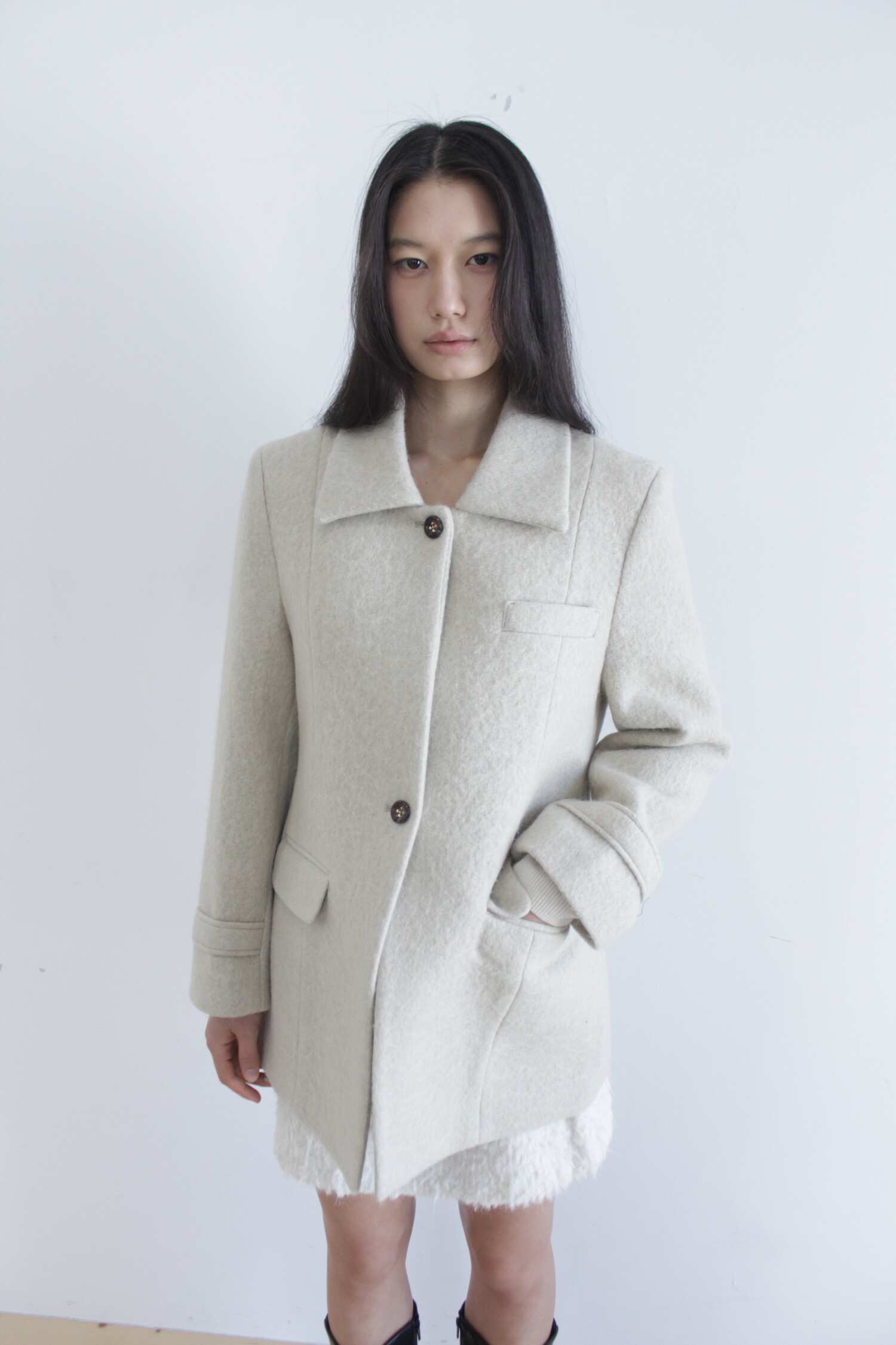 mute beige-오트밀+연베이지+애쉬 색상이 은은하게 조화롭게 믹스된 색상으로 굉장히 오묘하고 크리미한 컬러감이며