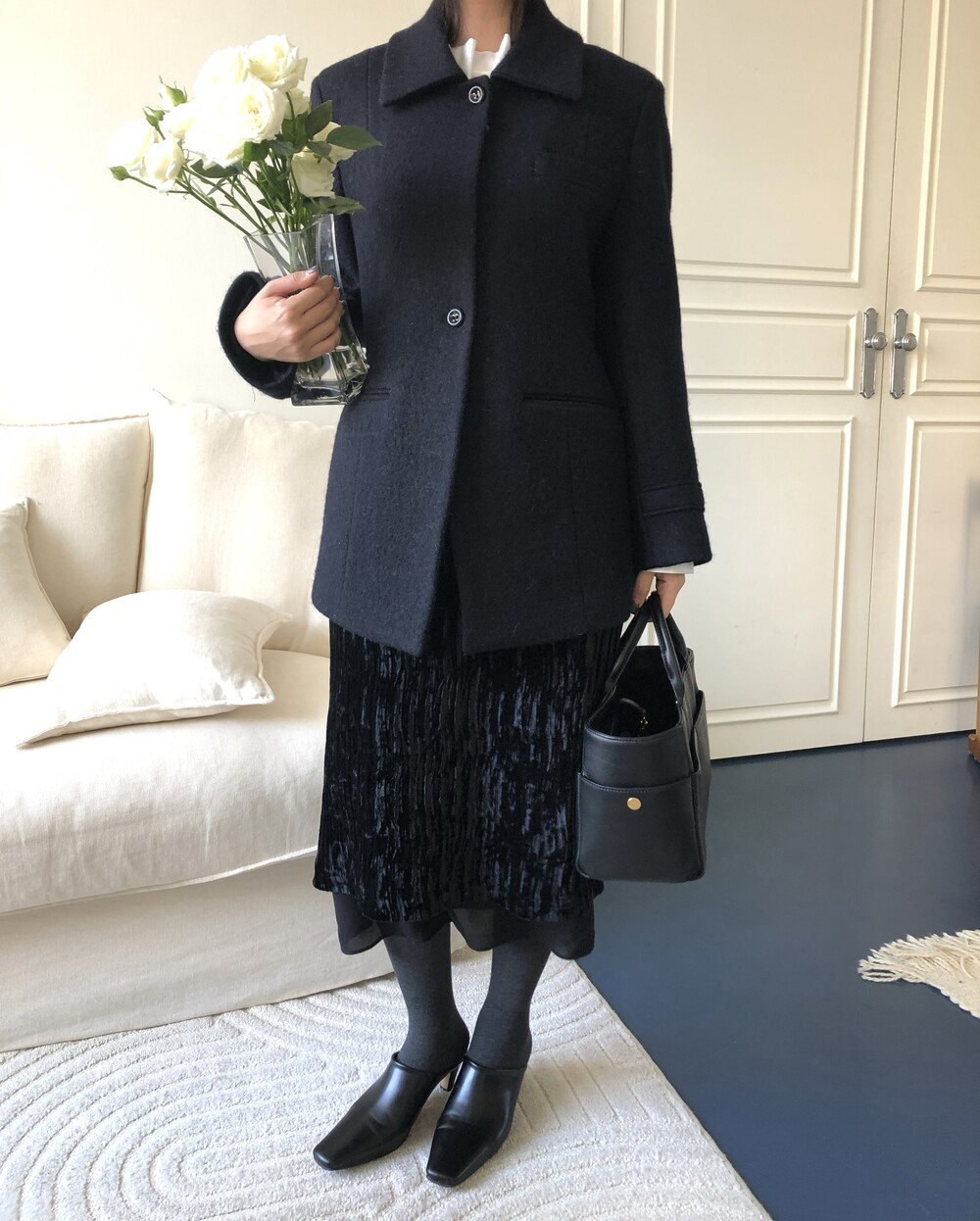 navy 착용-딥&다크한 네이비 색상입니다.