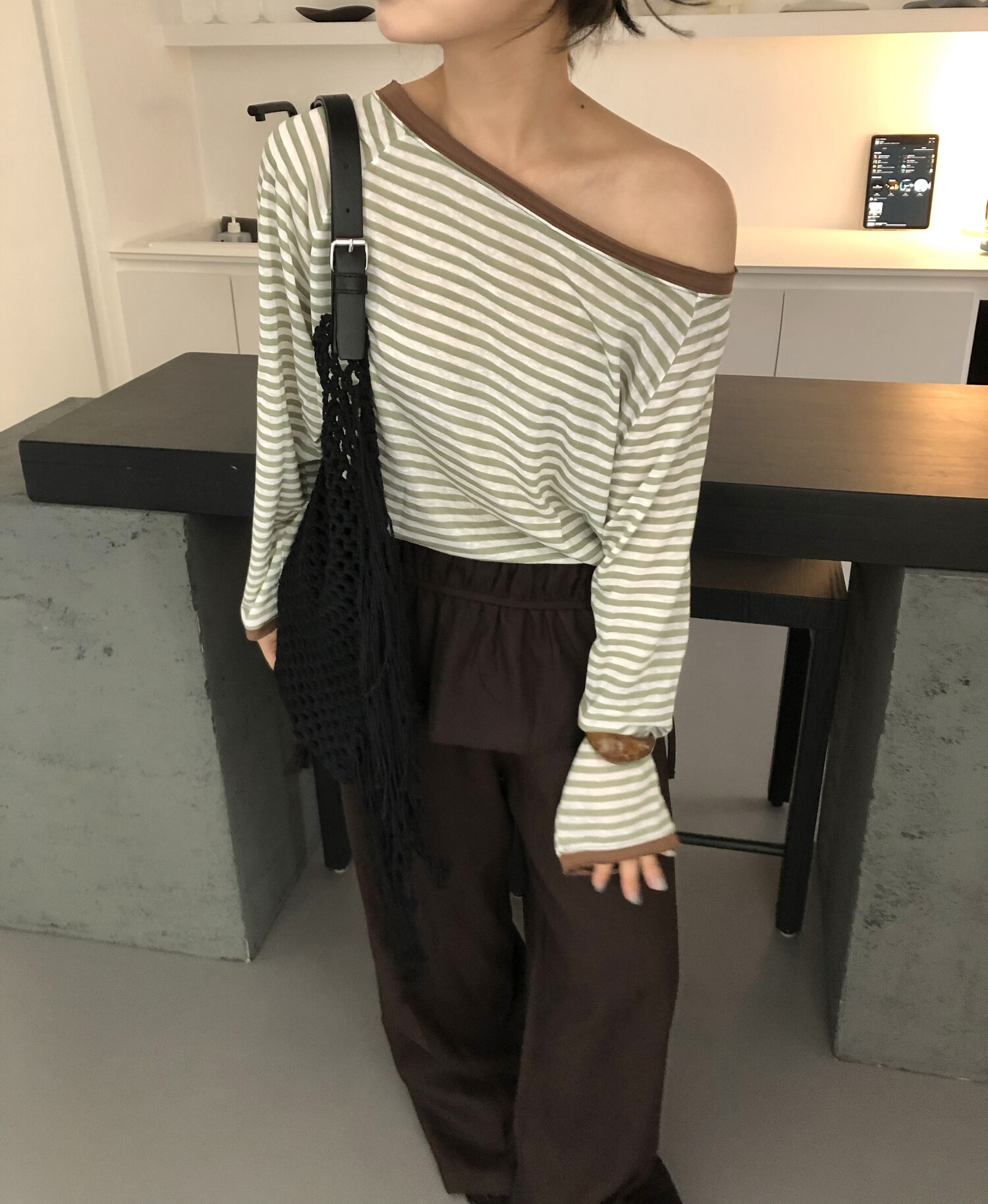 brown 착용-붉은기 없는 다크한 밤색입니다.