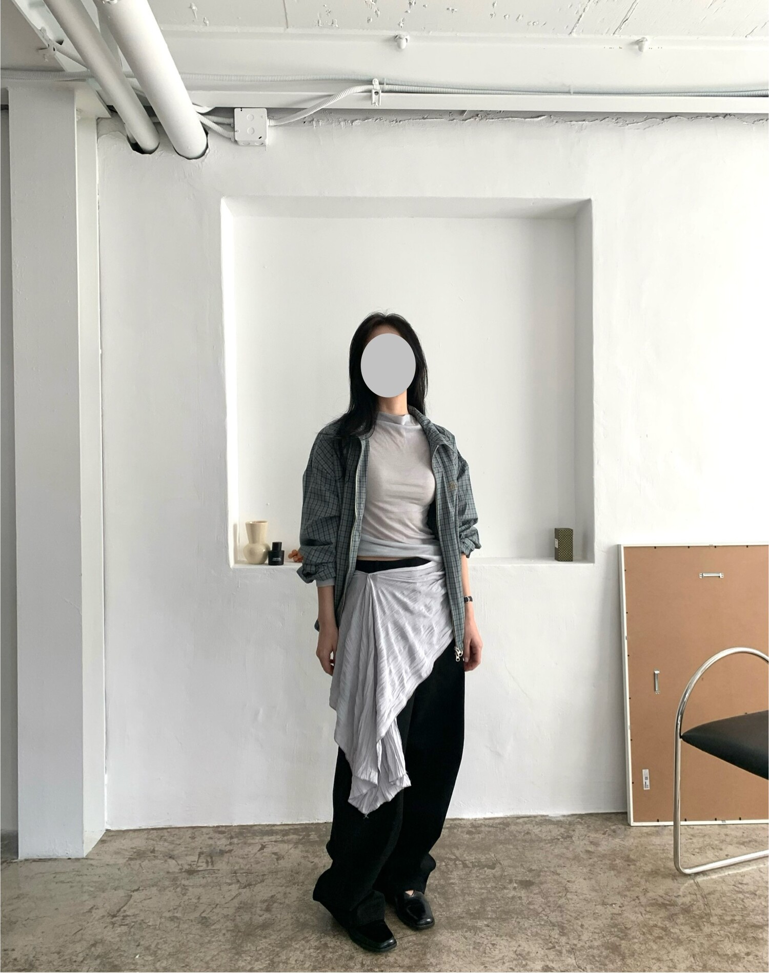 162cm / 허리 28 (상의 s, 하의m 힙과 허벅지가 큰편) / 신발 240mm