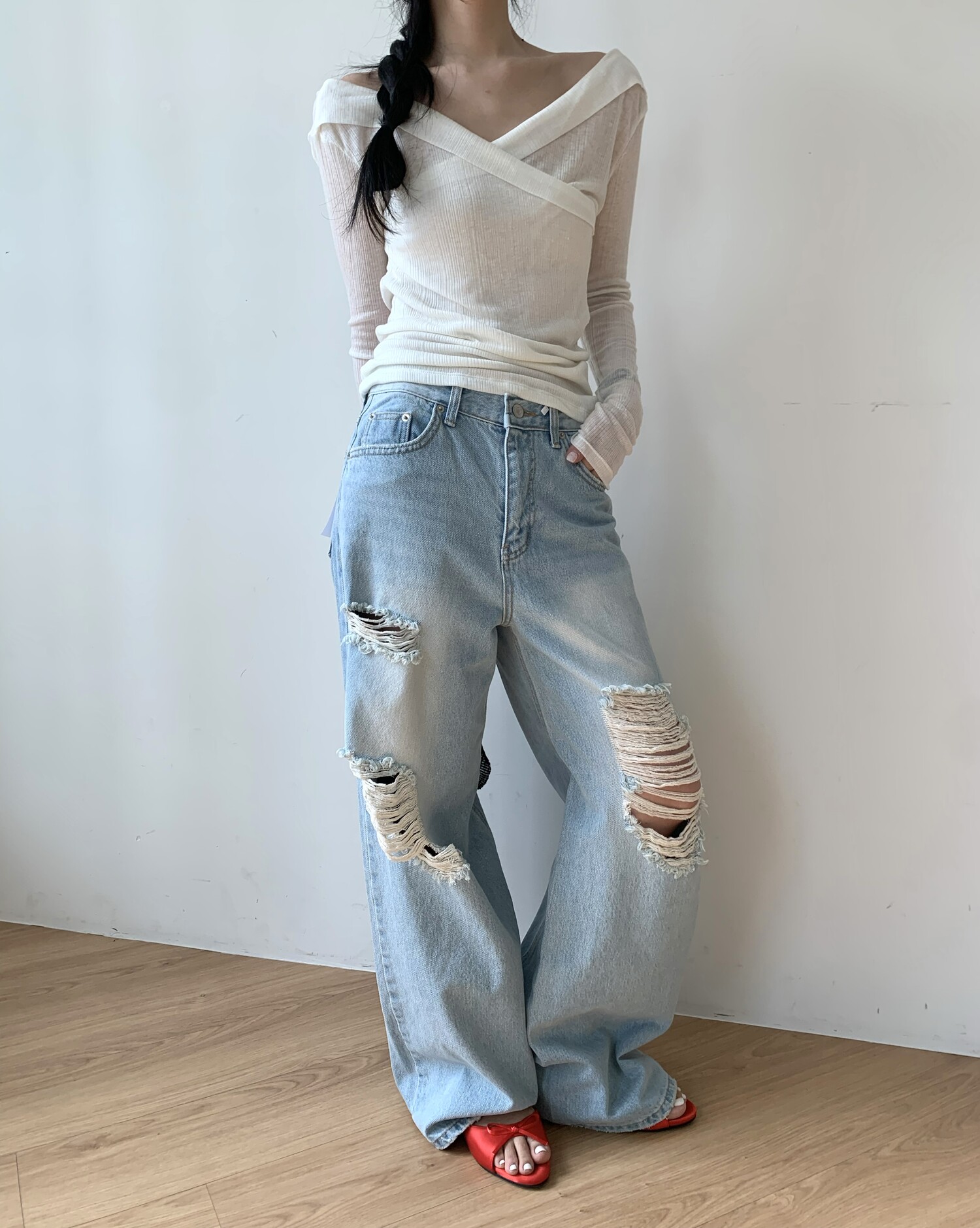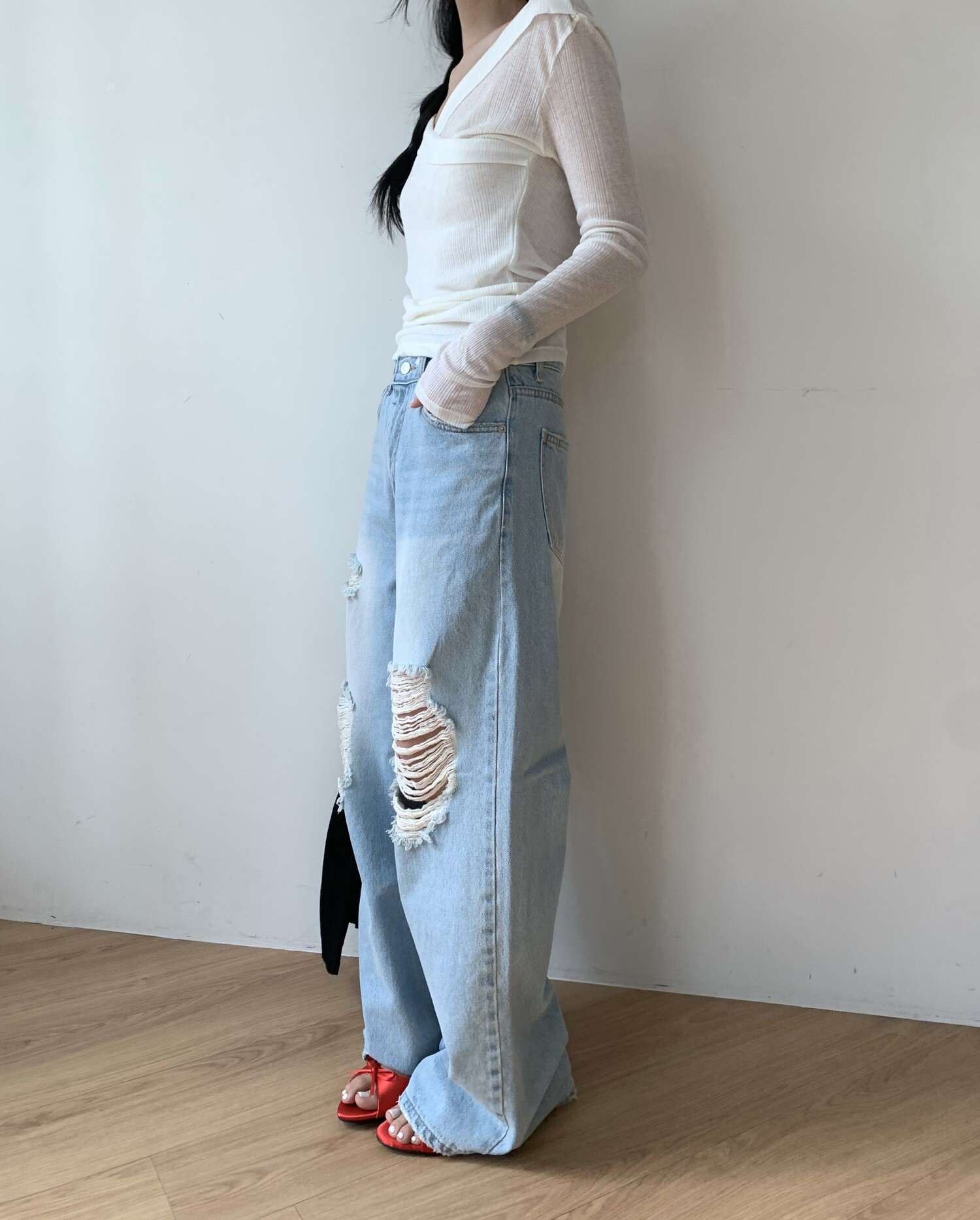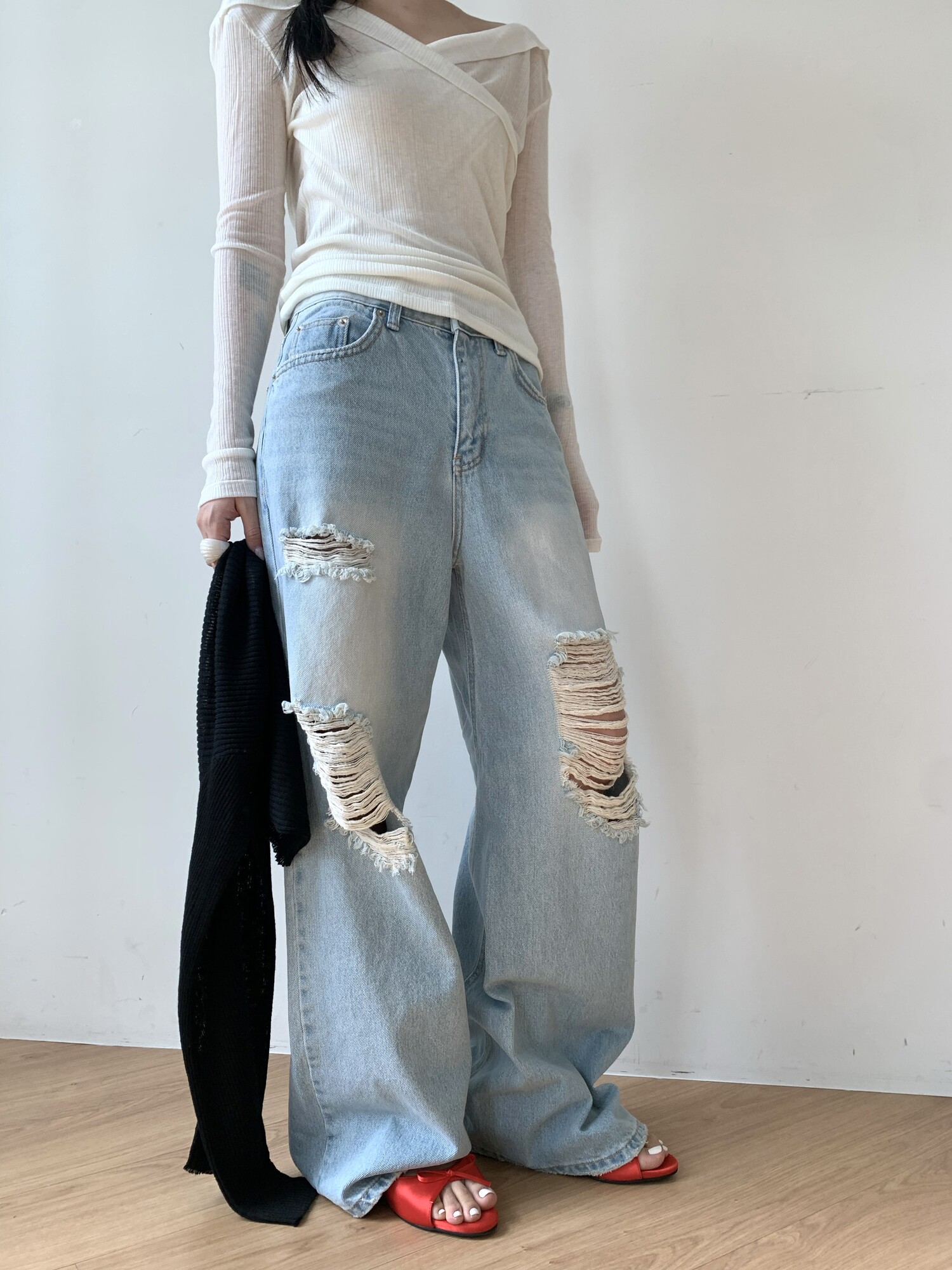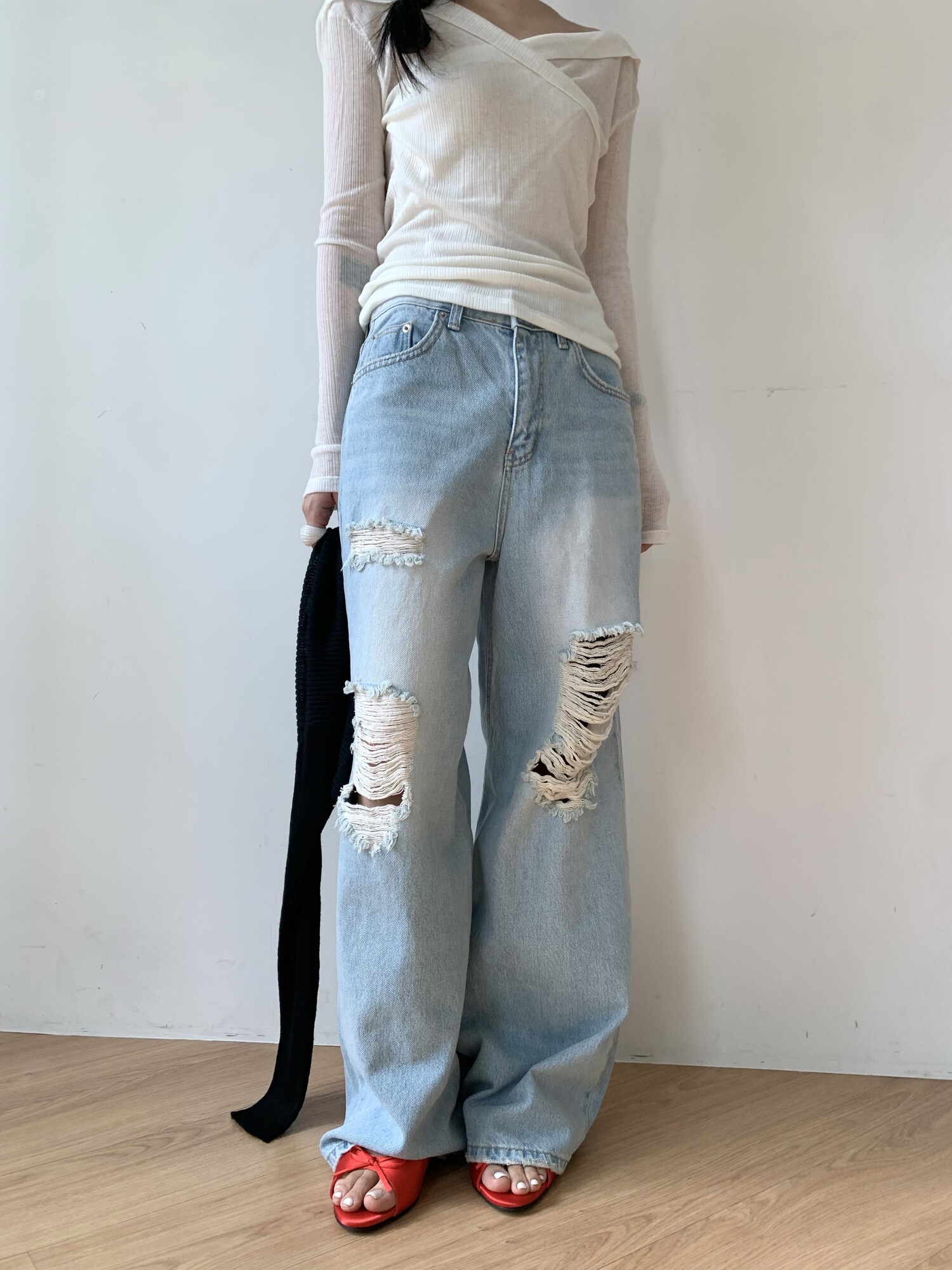 Distressed wide jean-2color