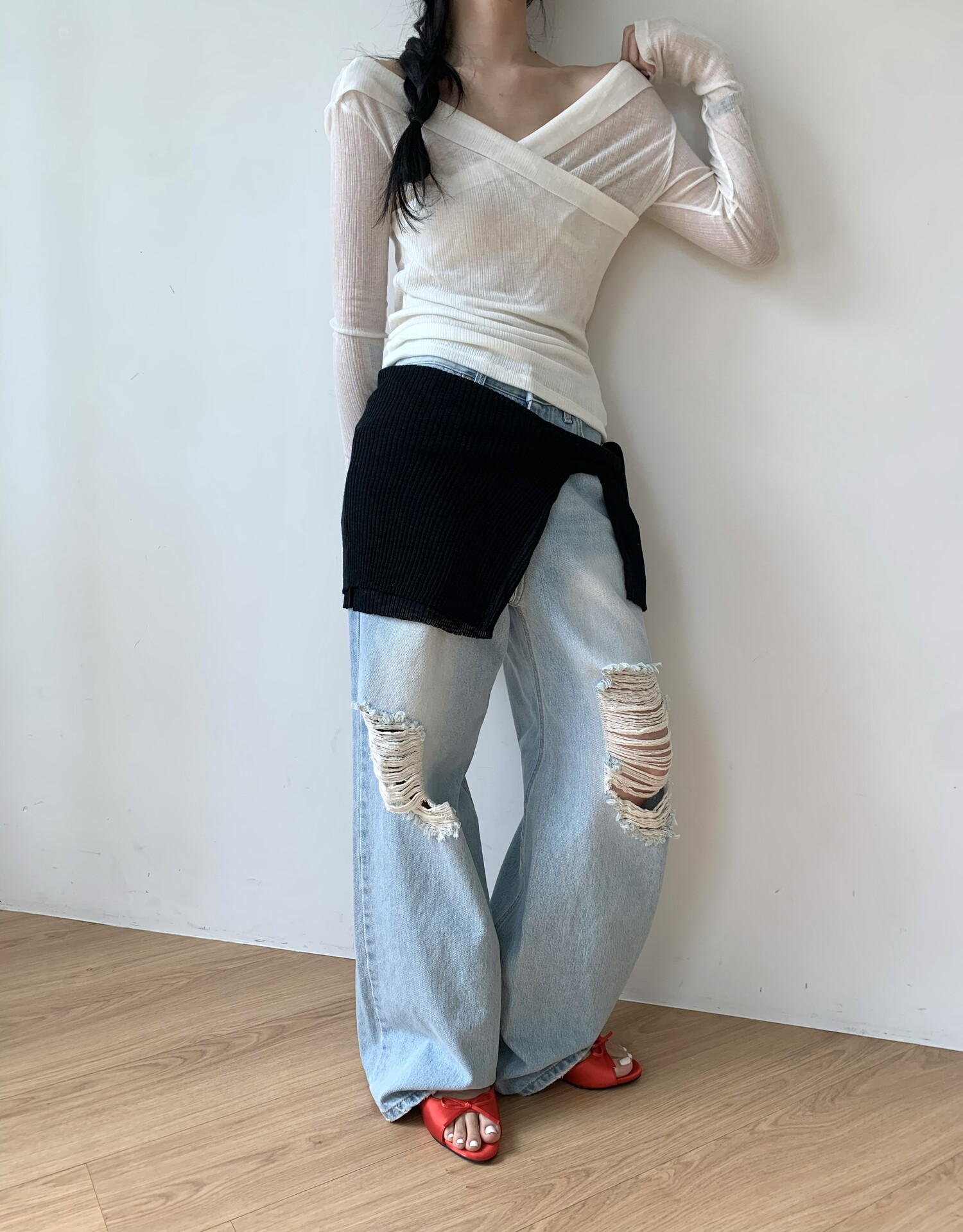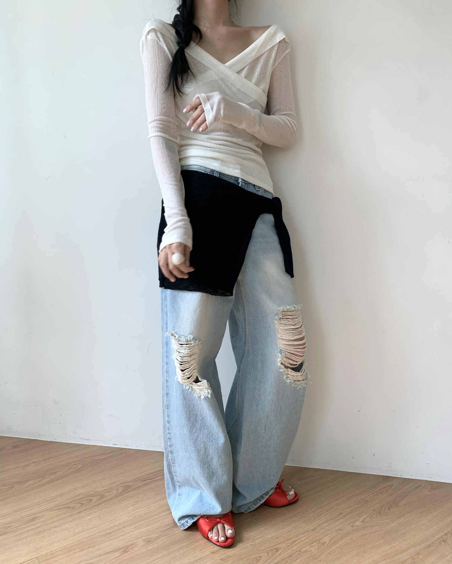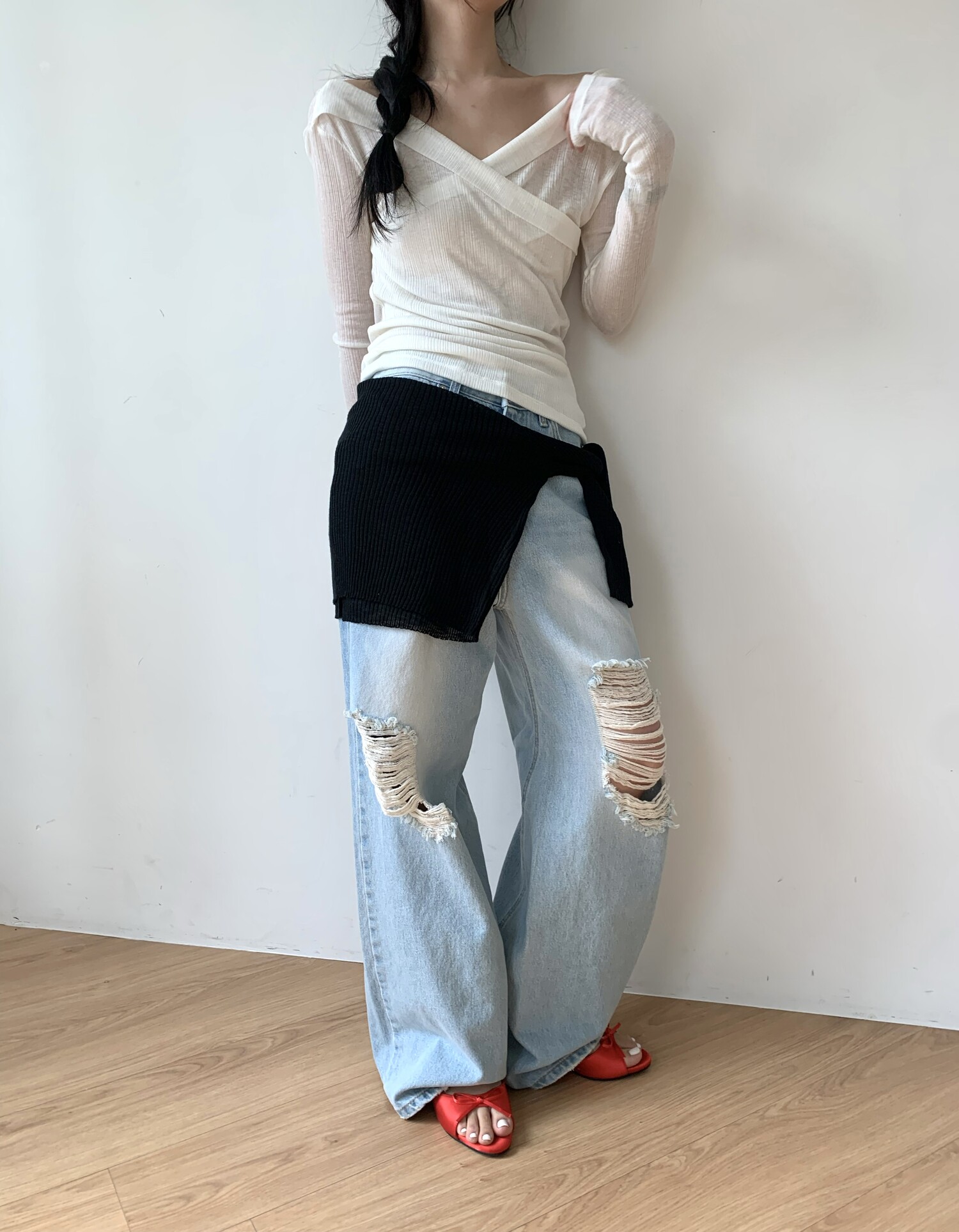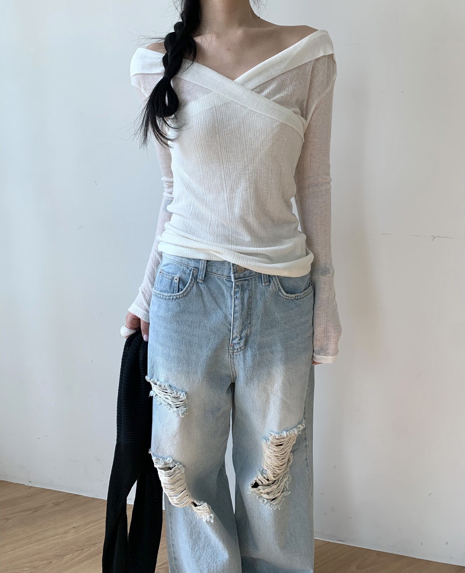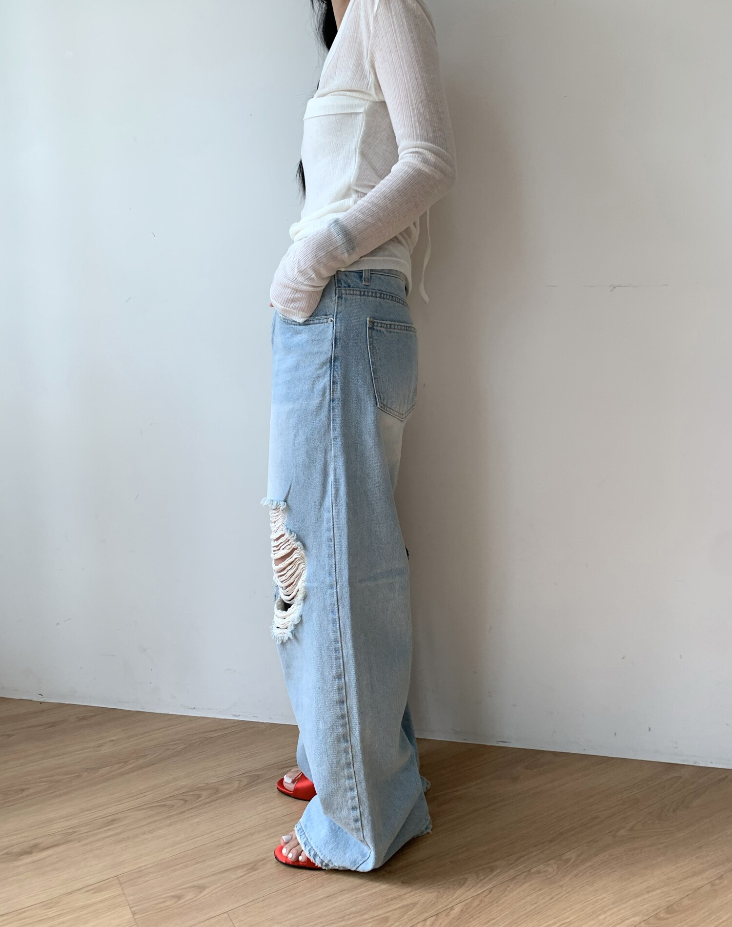 Distressed wide jean-2color