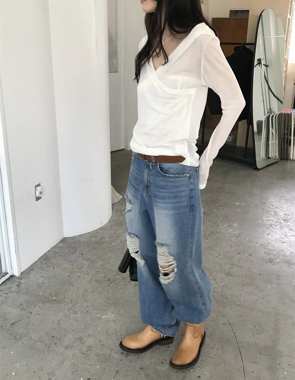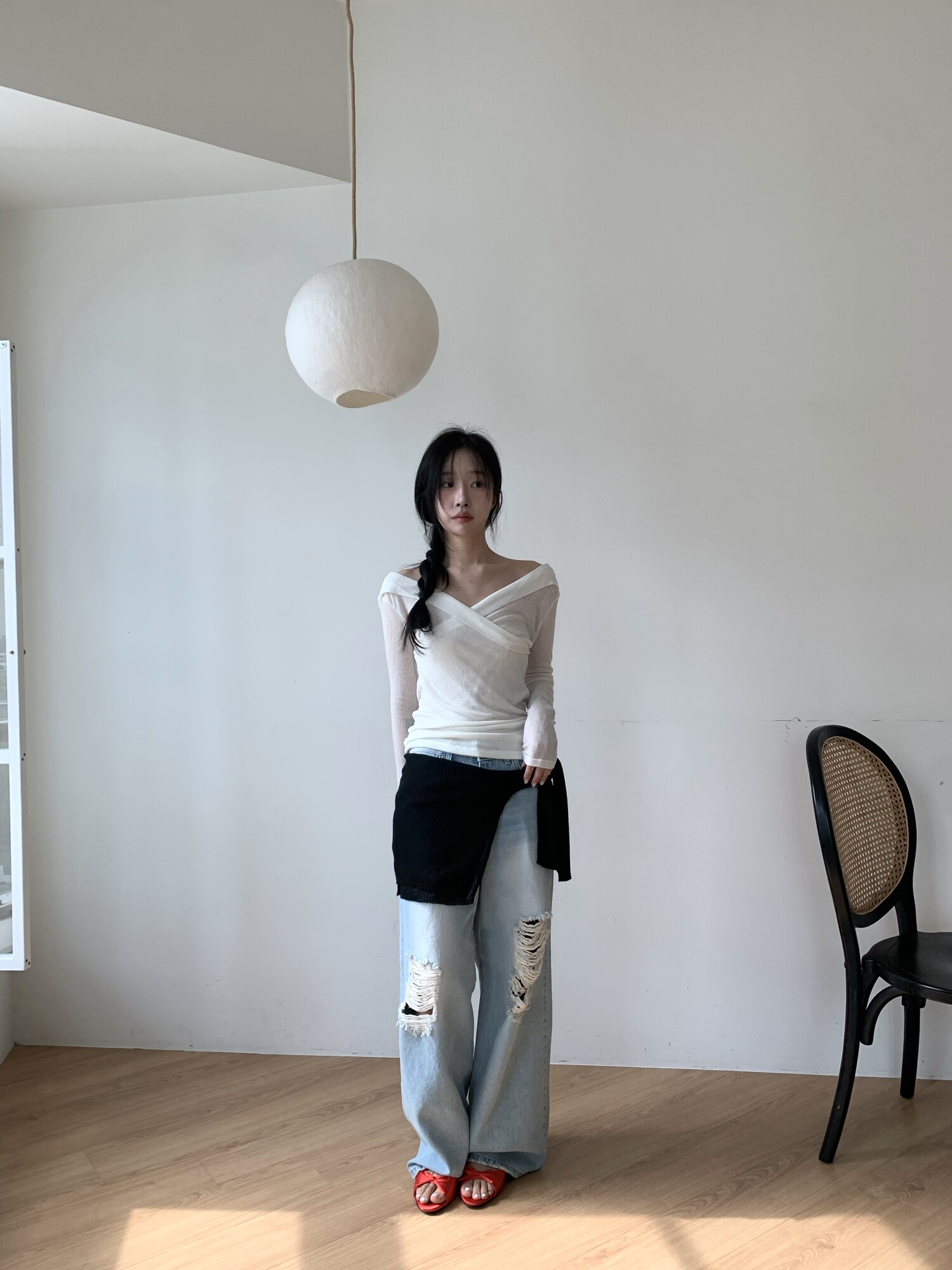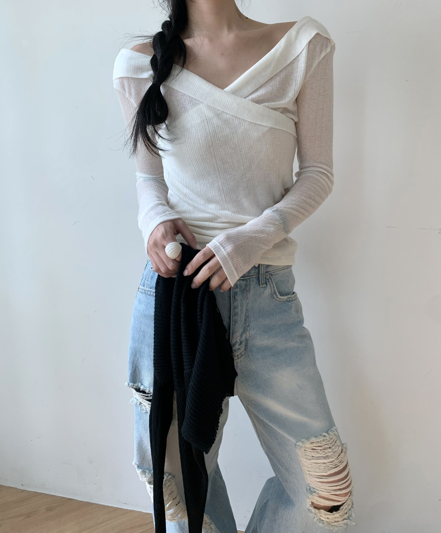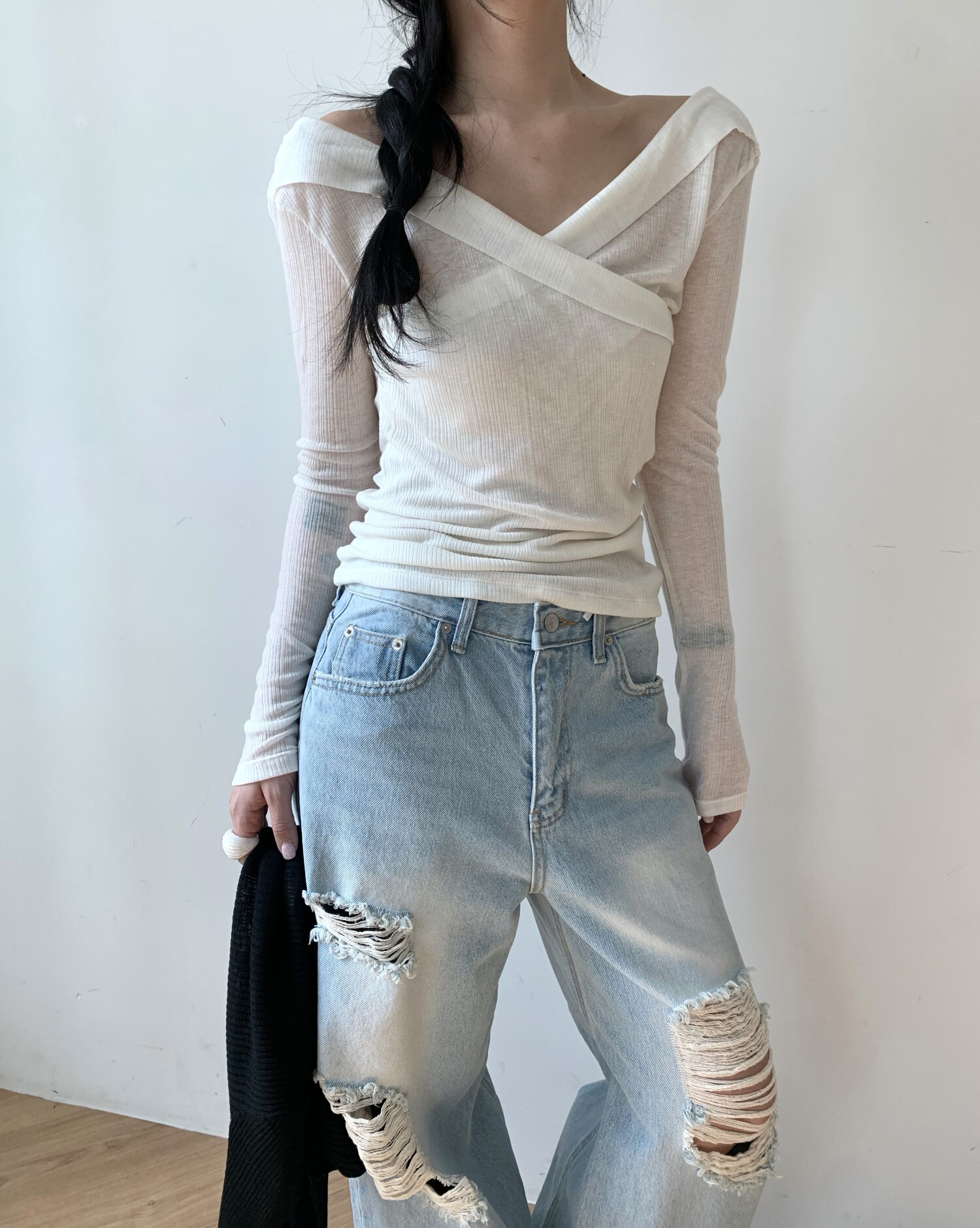 Distressed wide jean-2color
