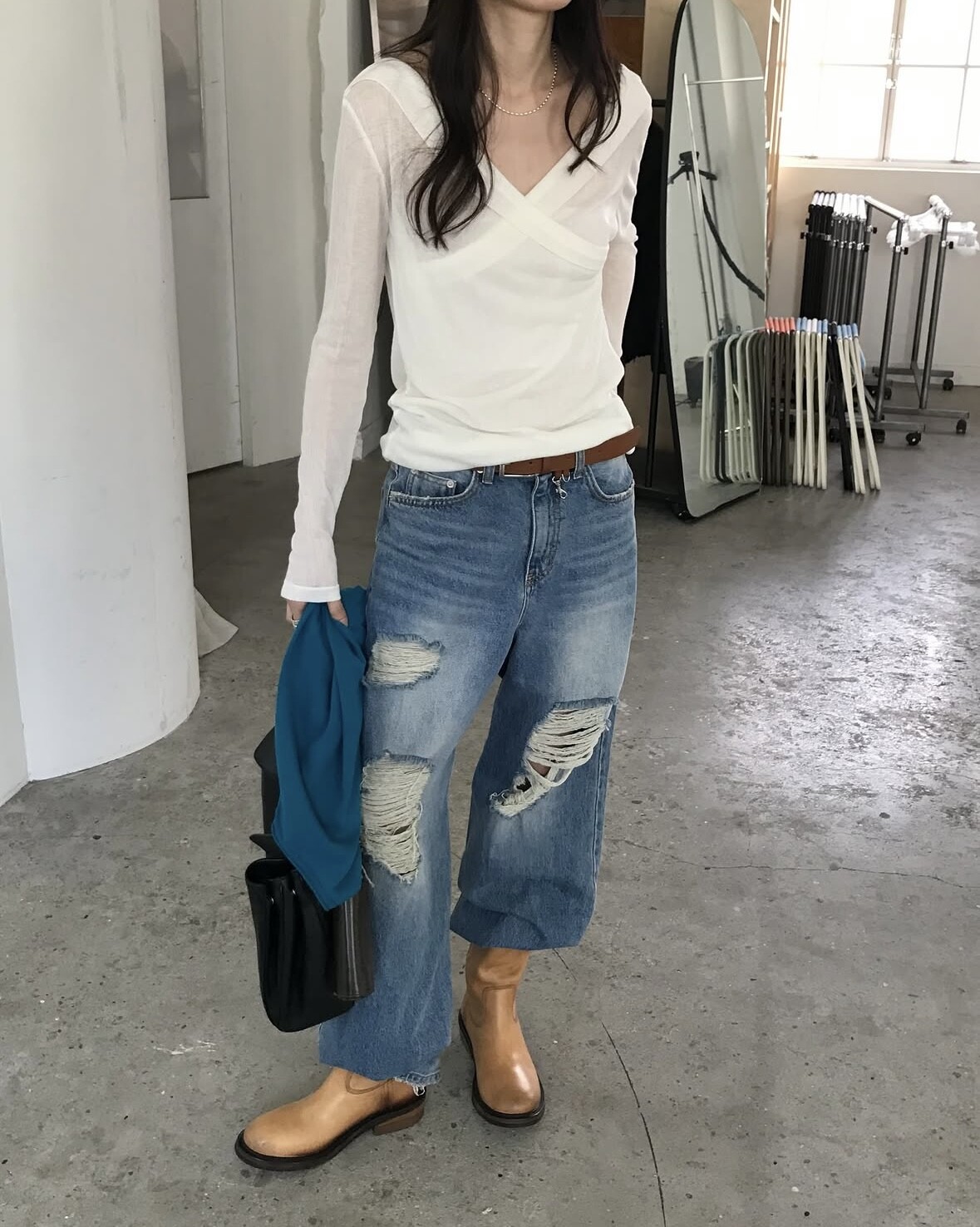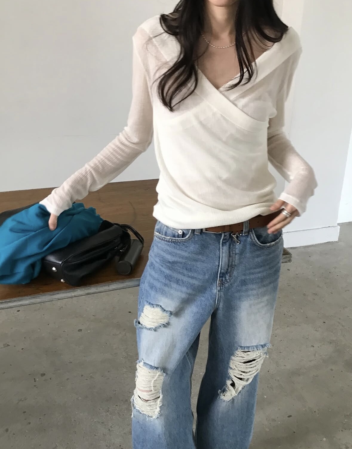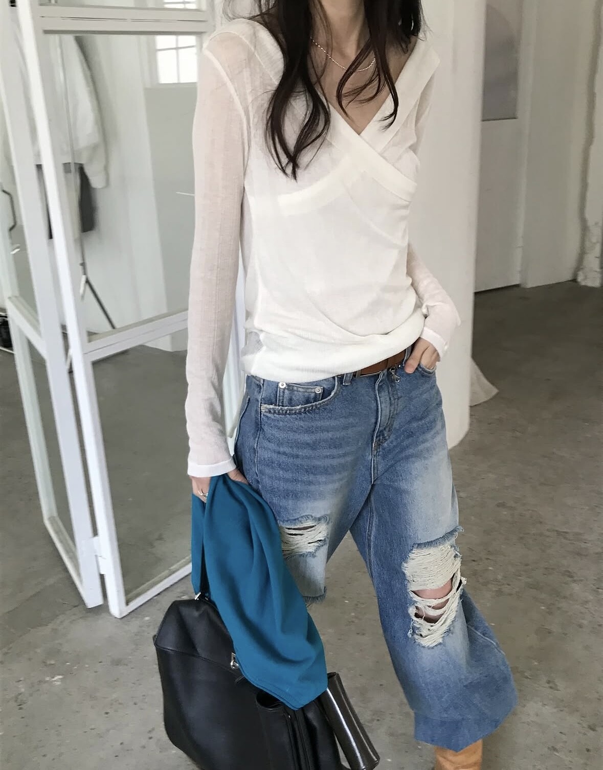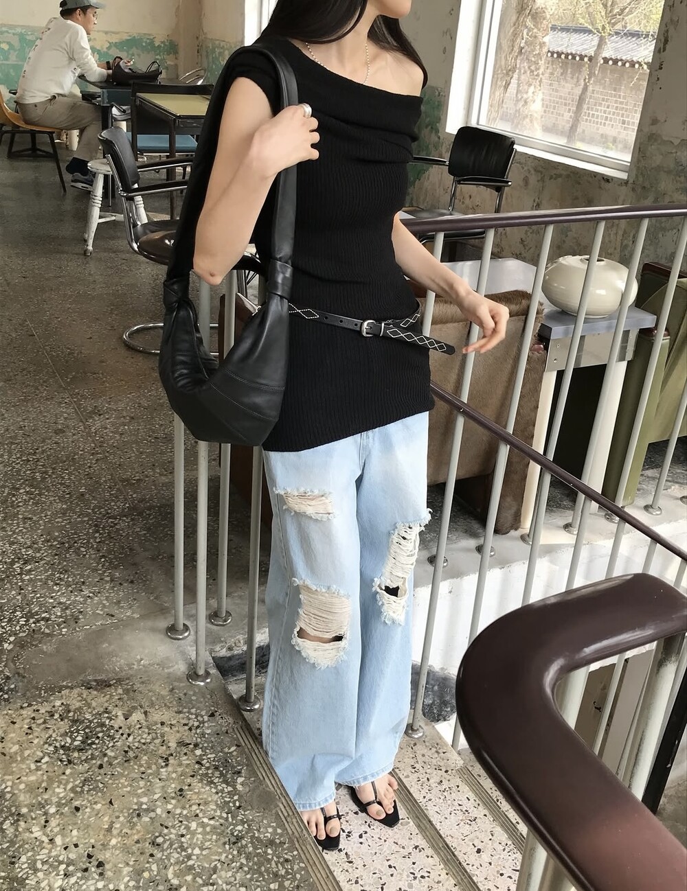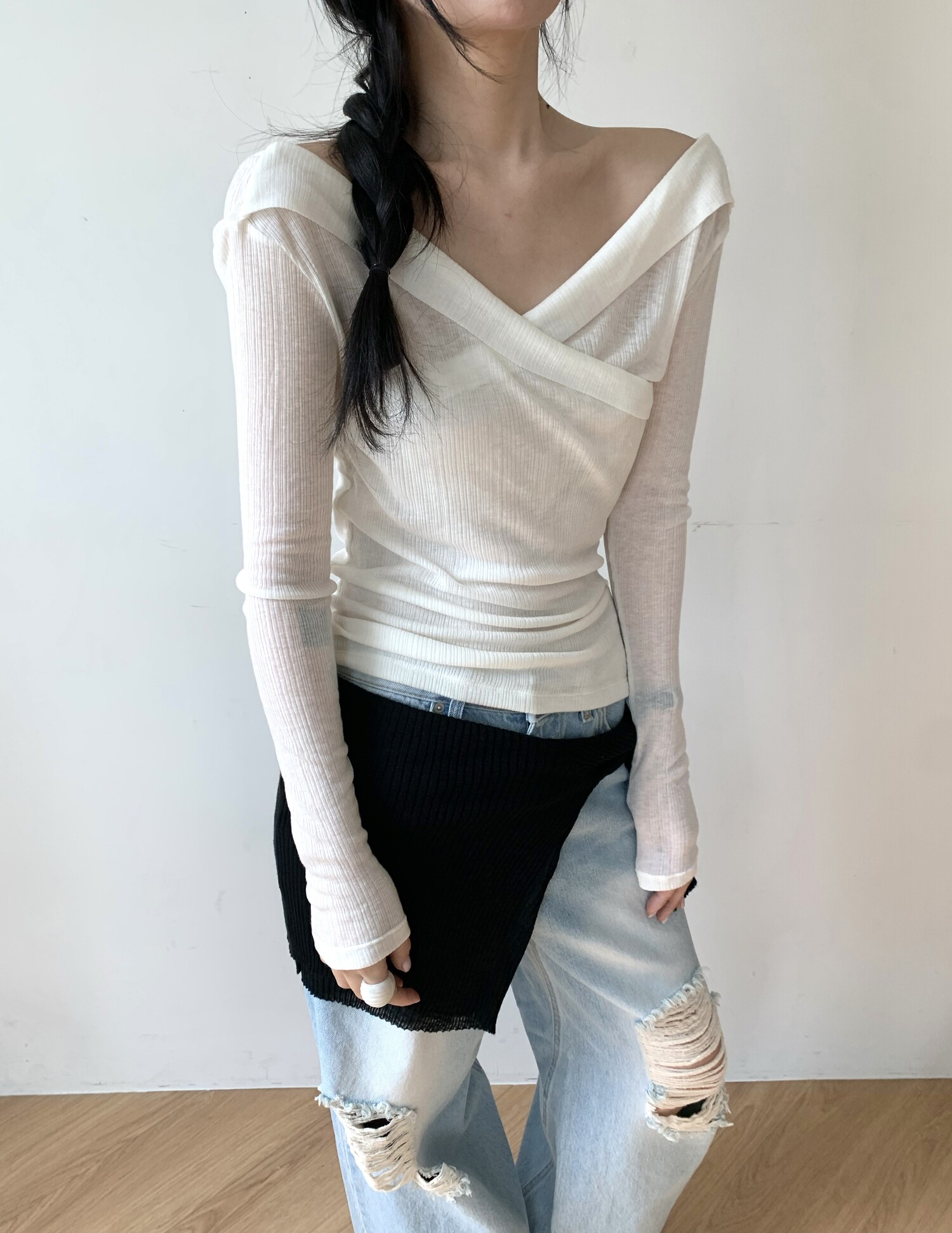 Distressed wide jean-2color