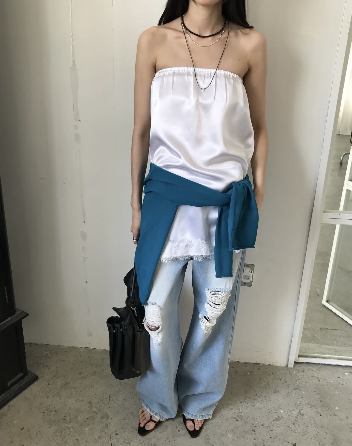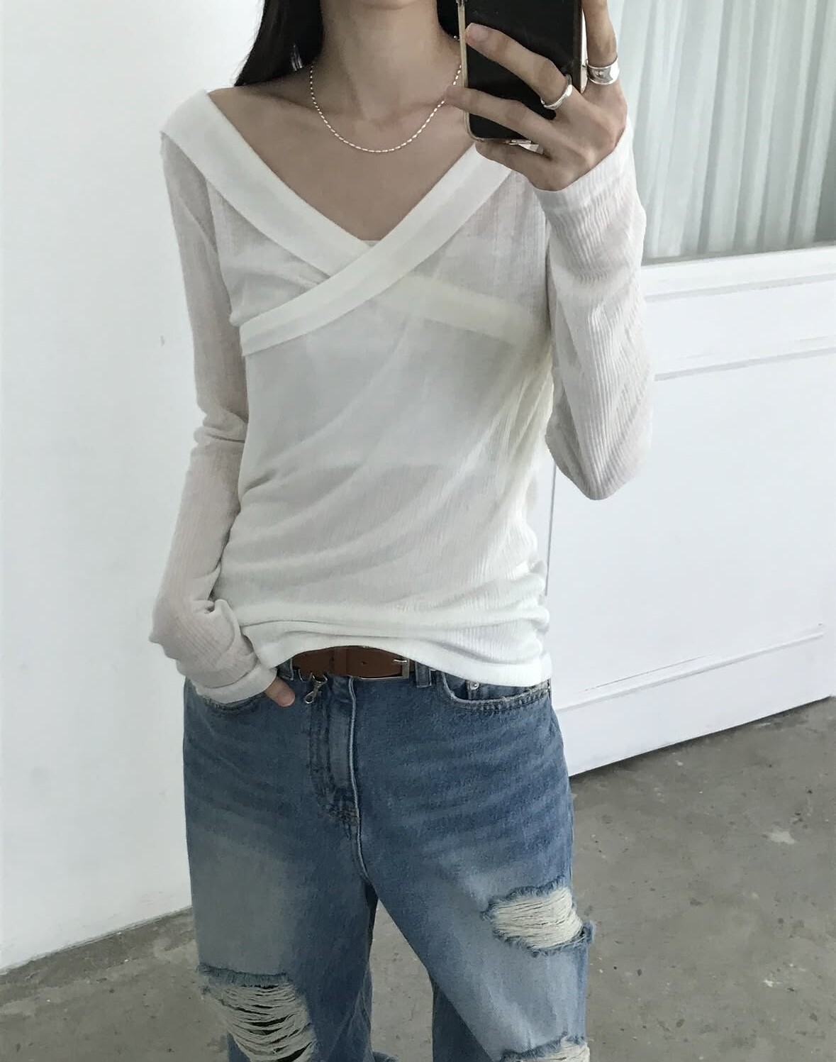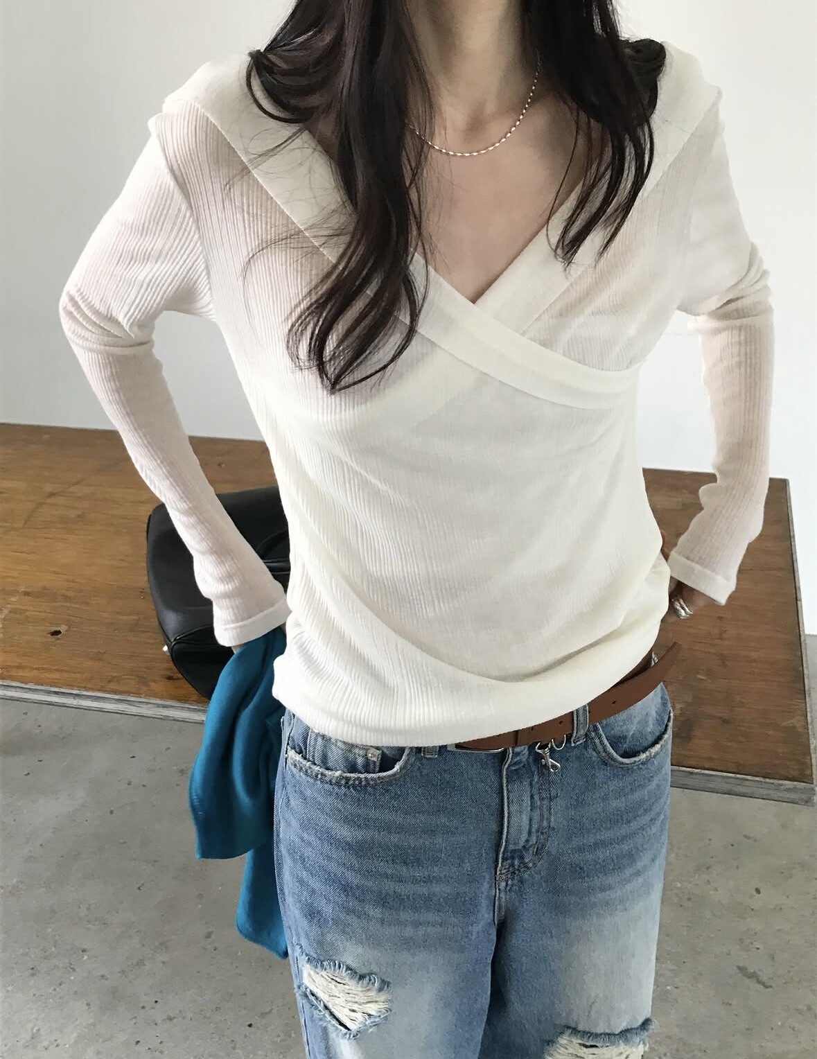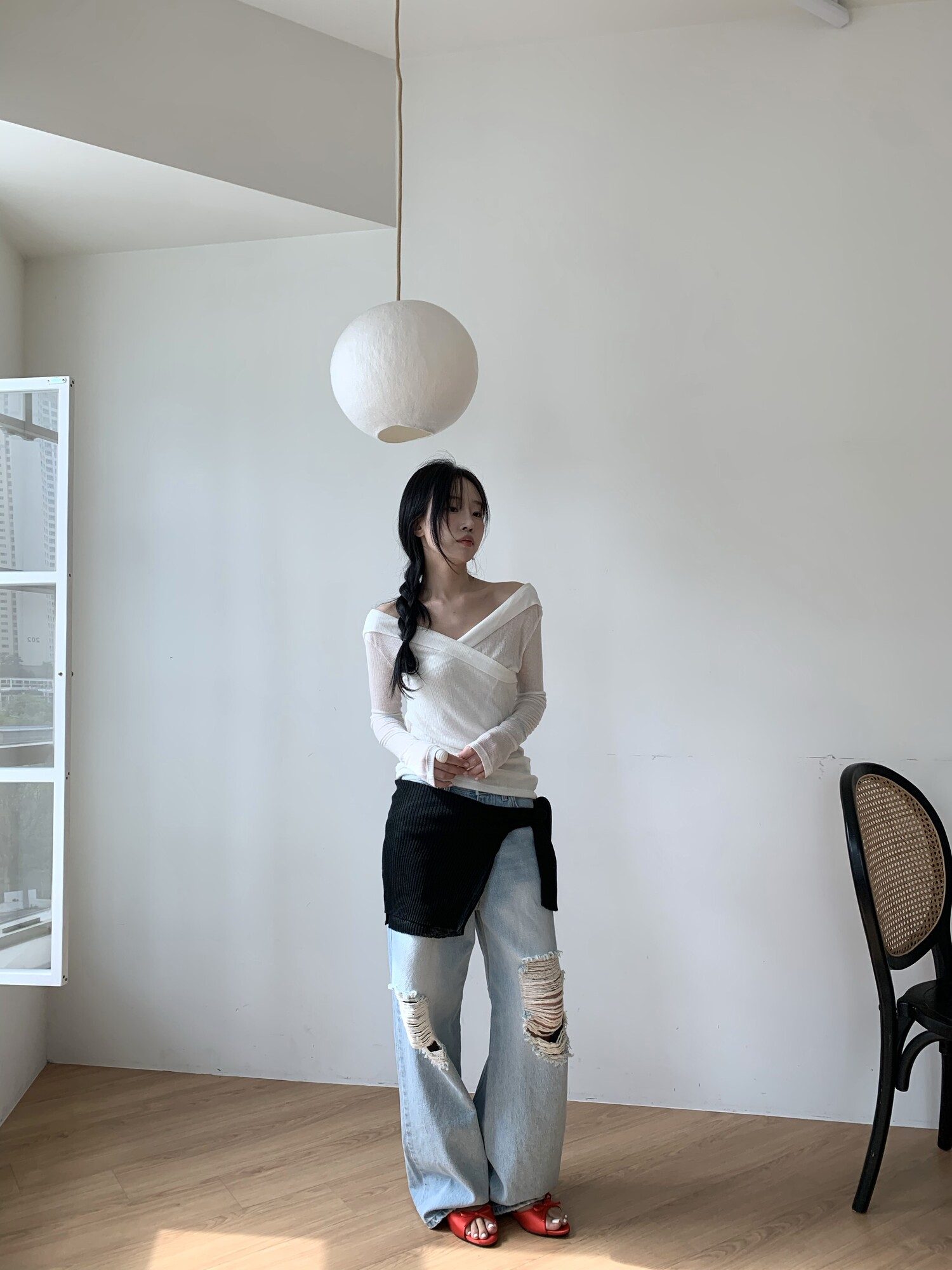 Distressed wide jean-2color