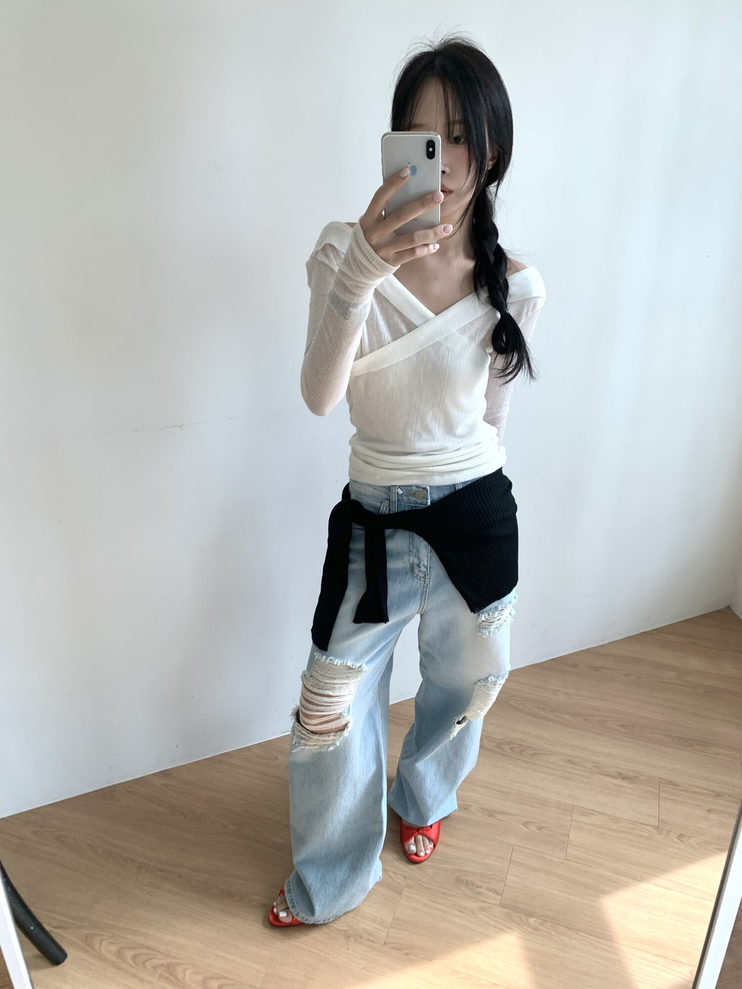 162cm / 허리 28 (상의 s, 하의m 힙과 허벅지가 큰편) / 신발 240mm