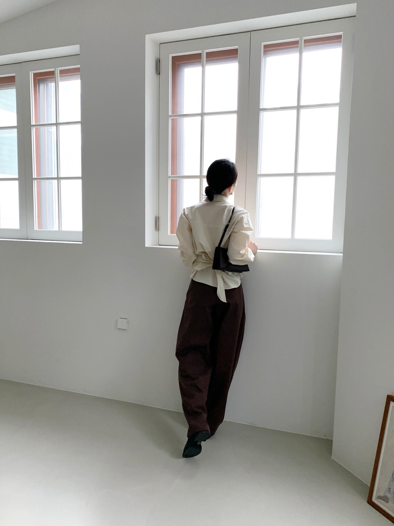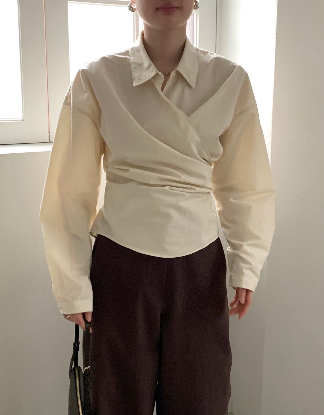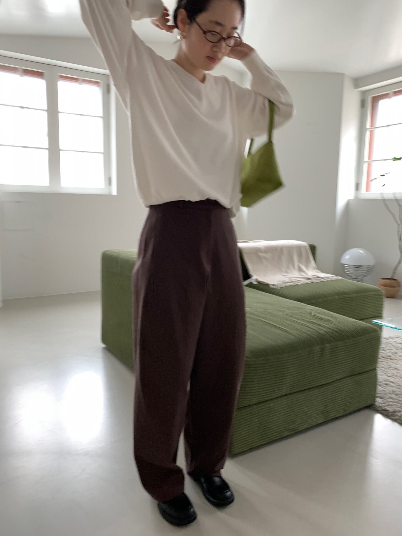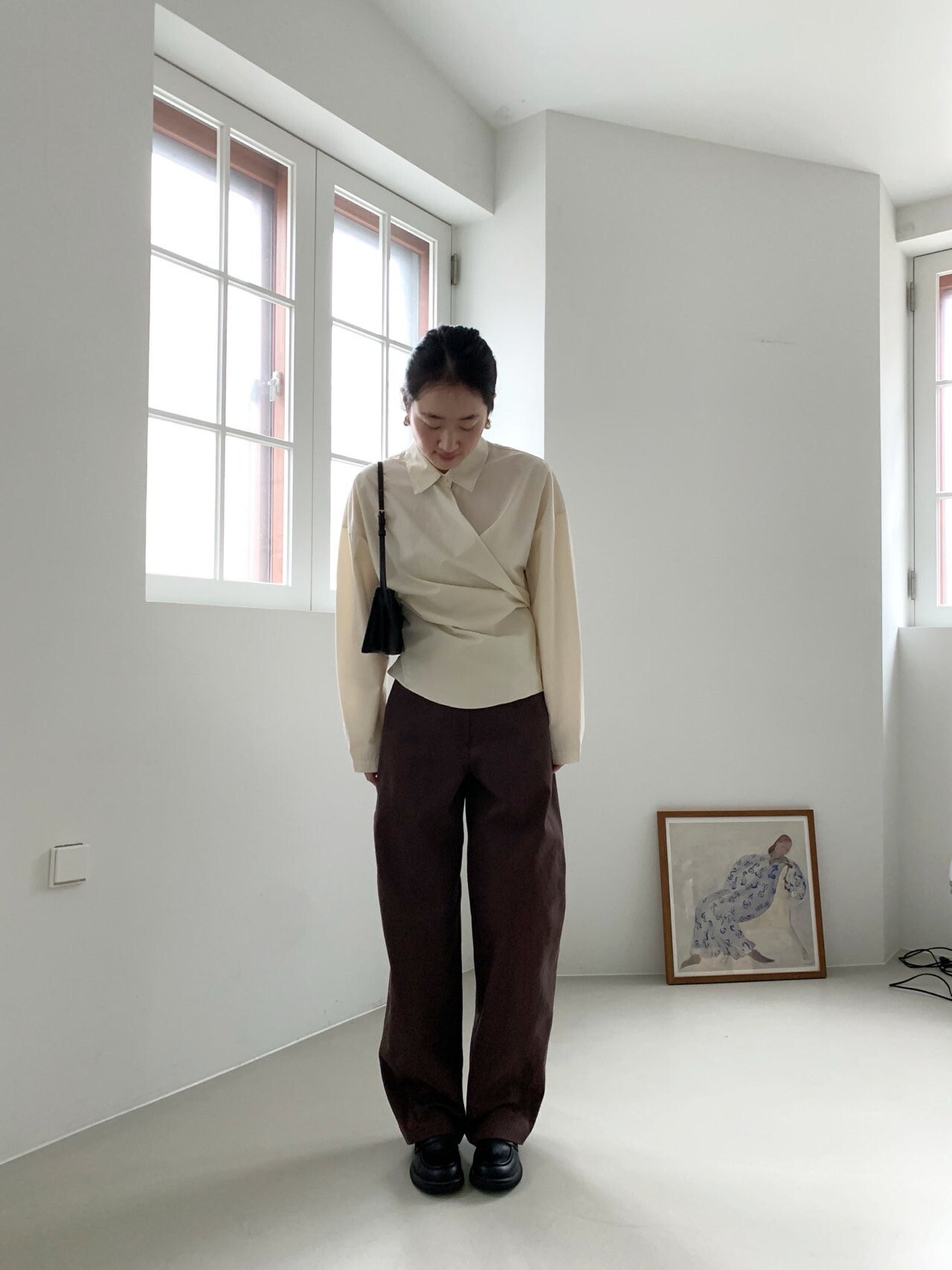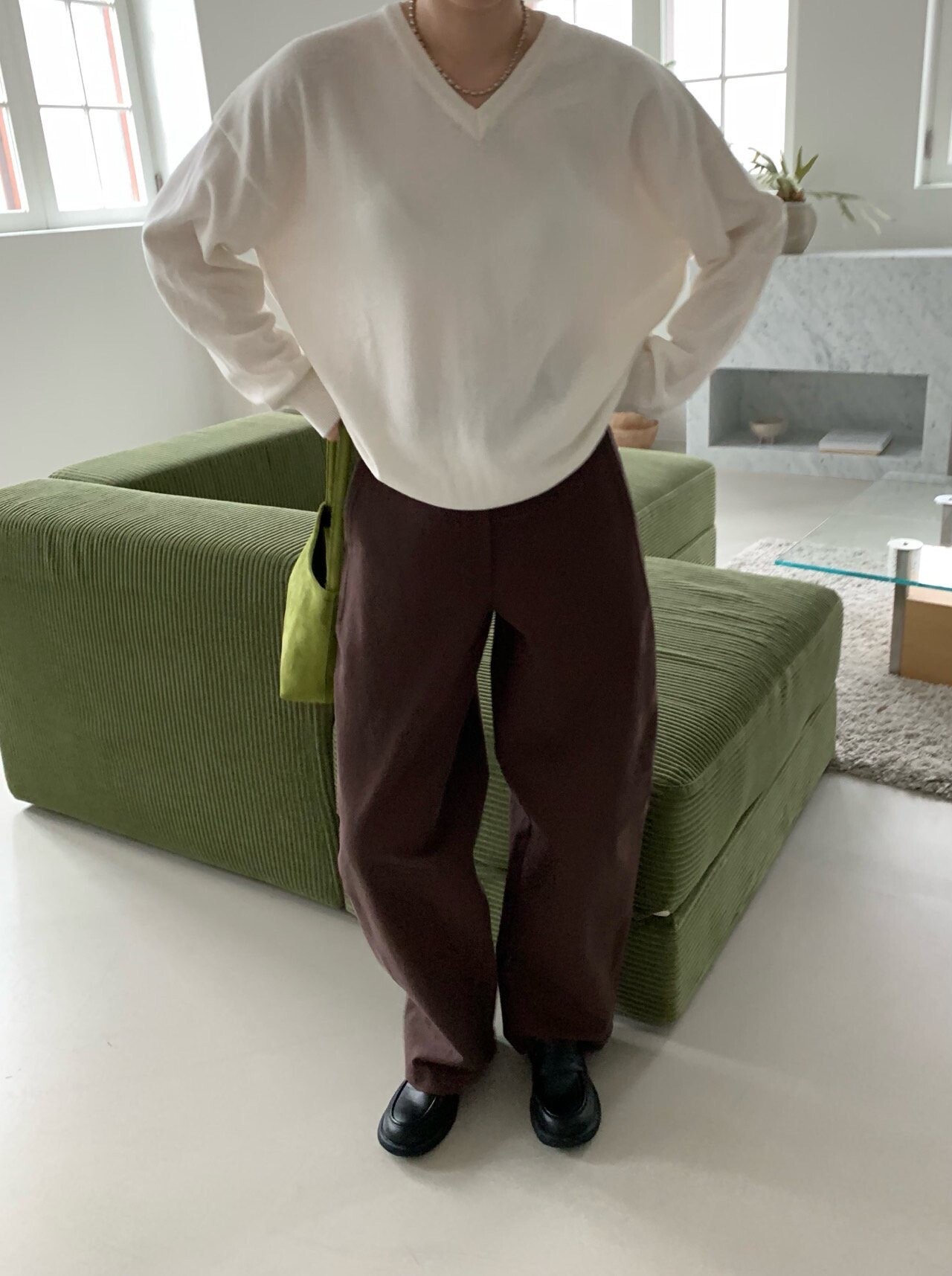 -전체적으로 와이드한 핏으로 중성적이면서도 세련된 무드를 연출