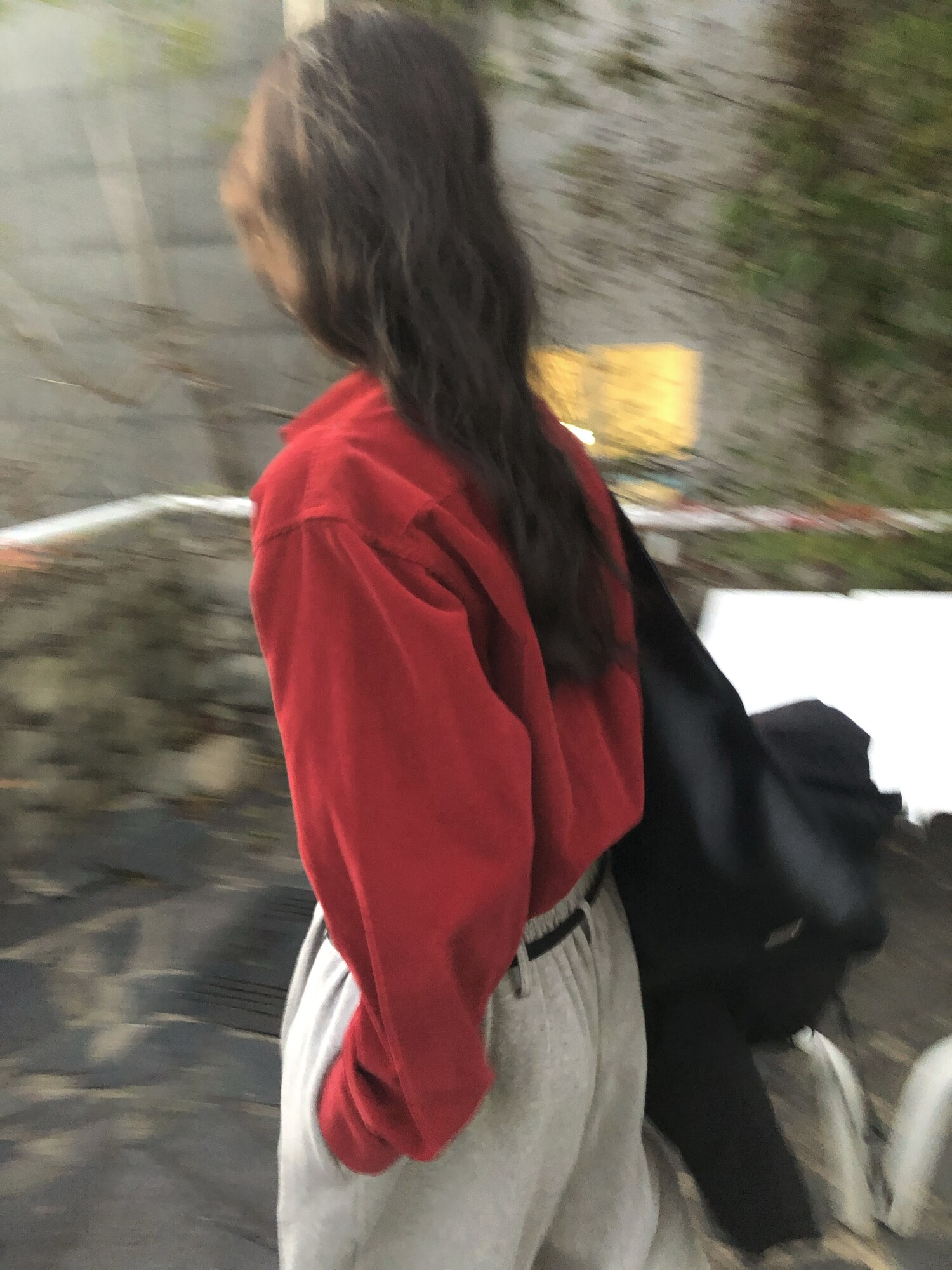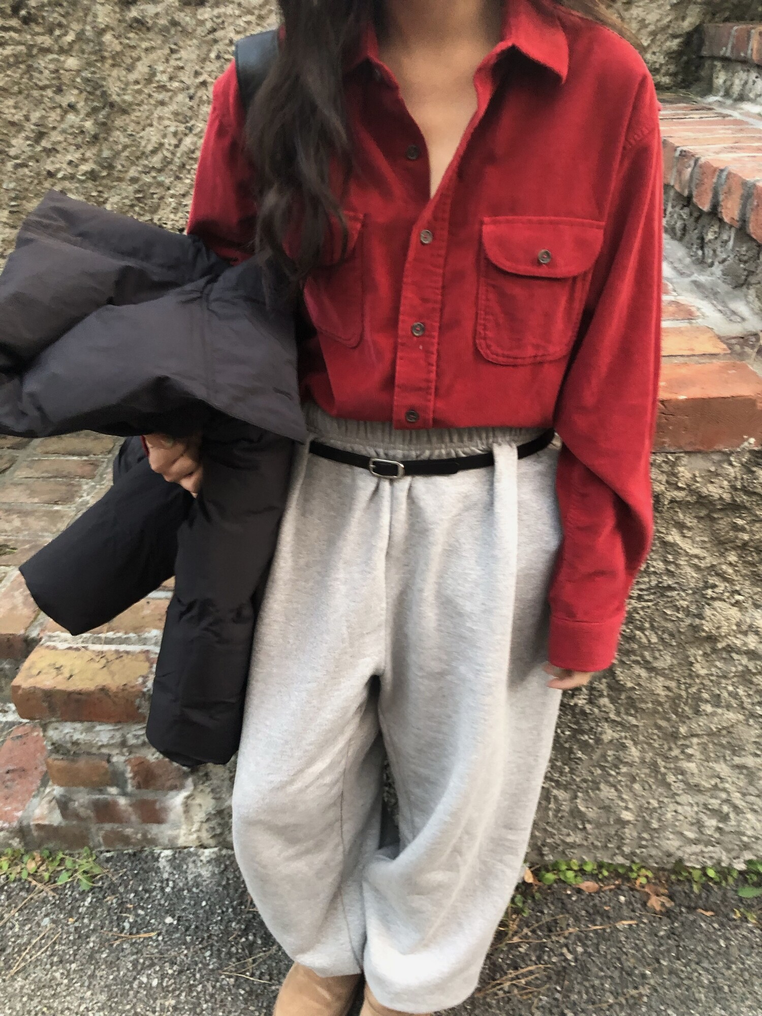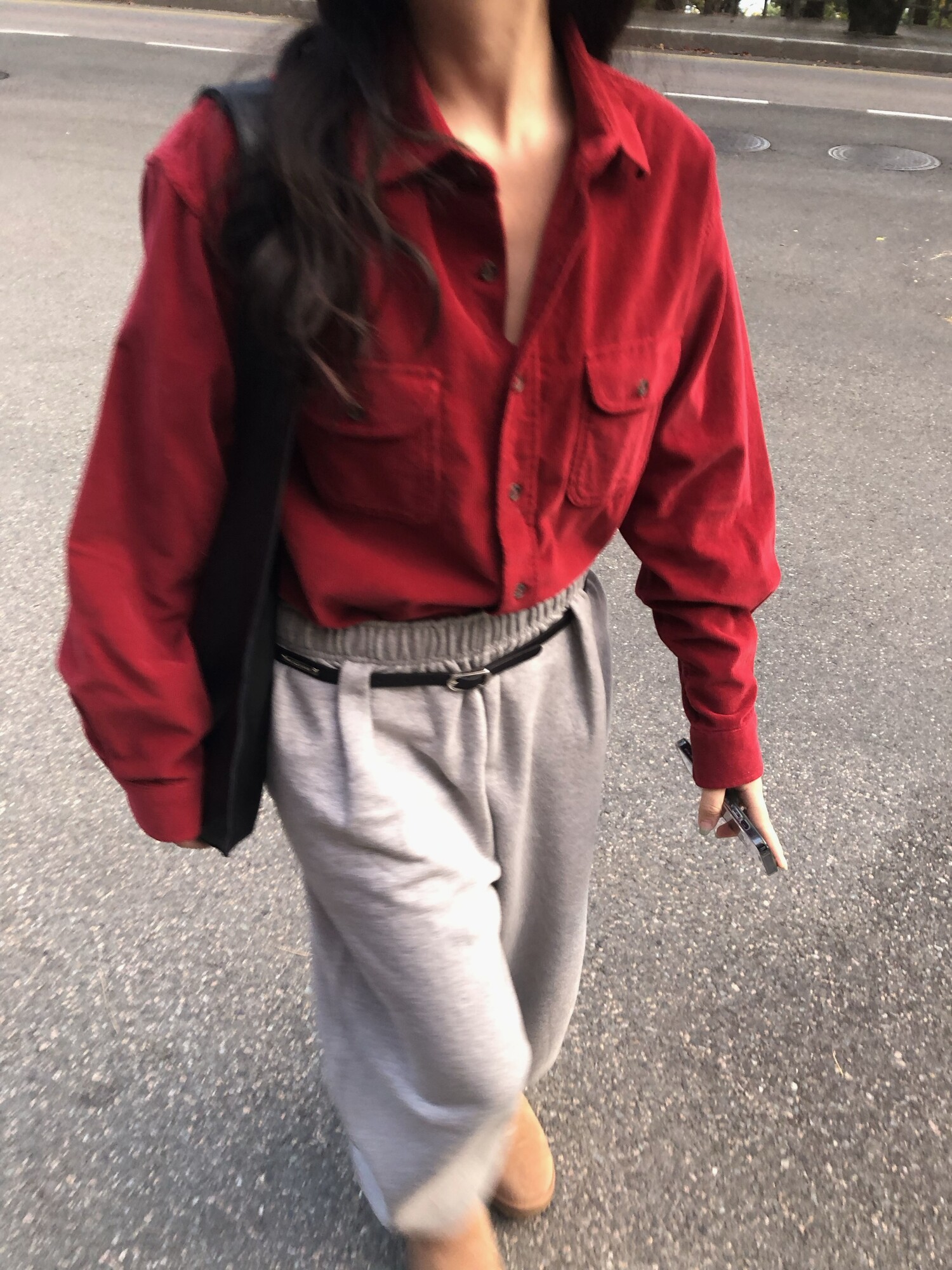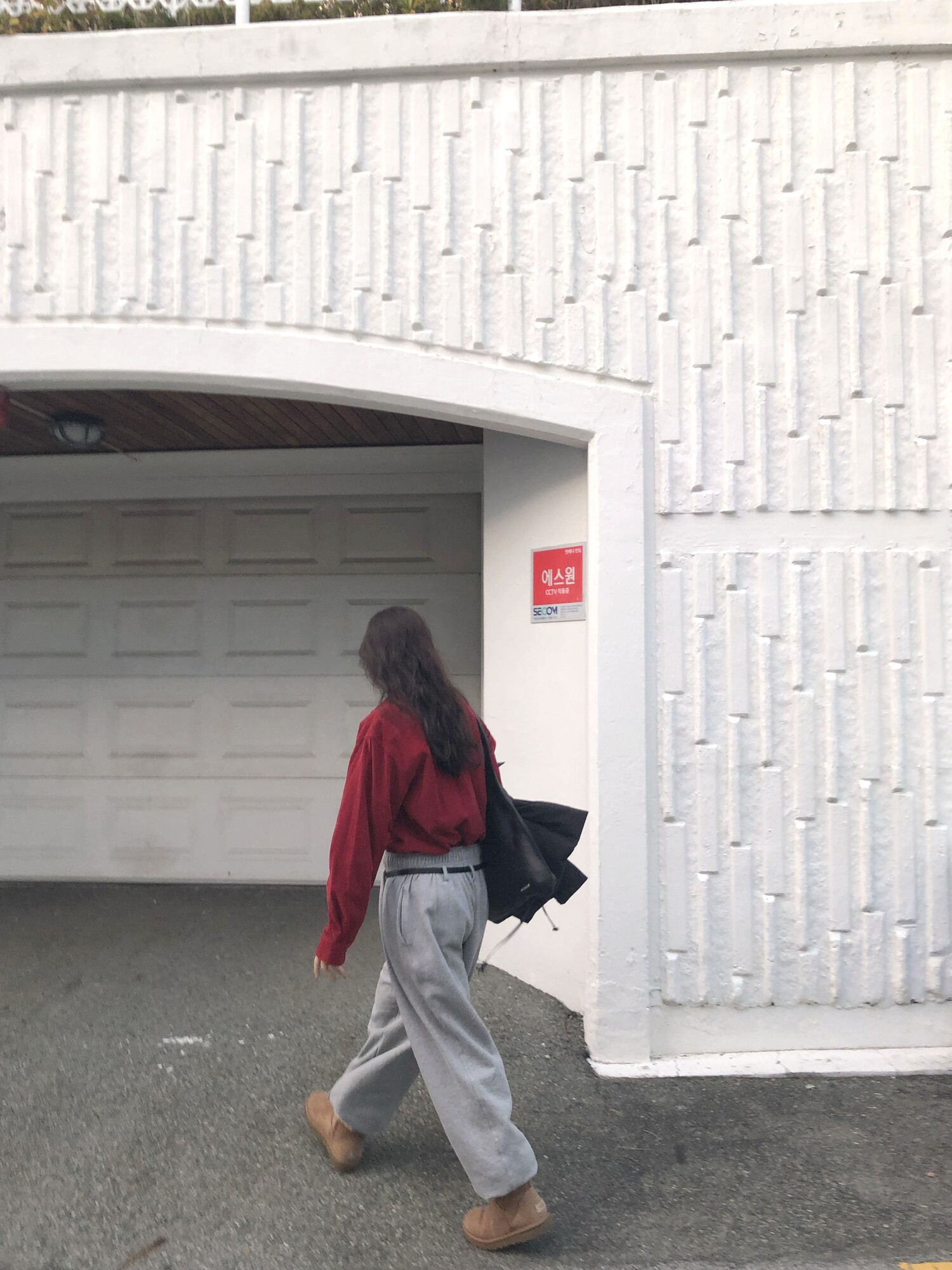 red 착용-촬영컷이 실제색상보다 밝게 나왔으며 살짝 톤 다운된 정석레드입니다.