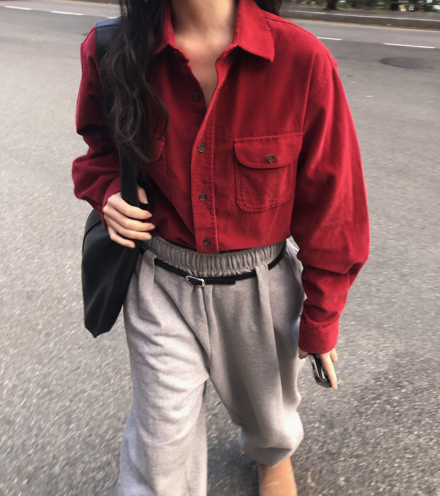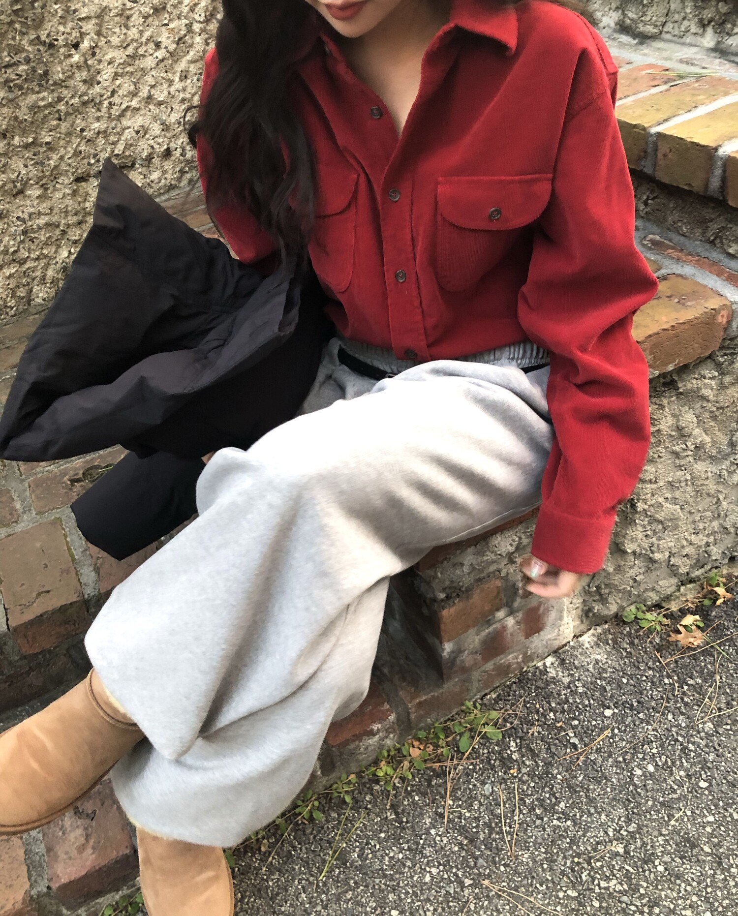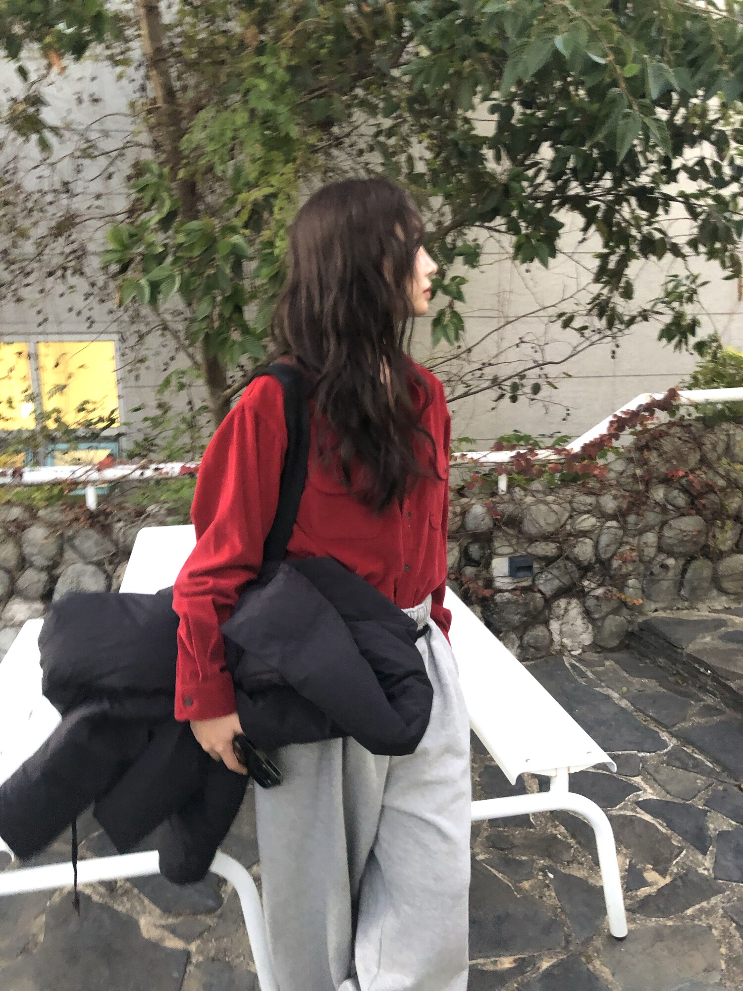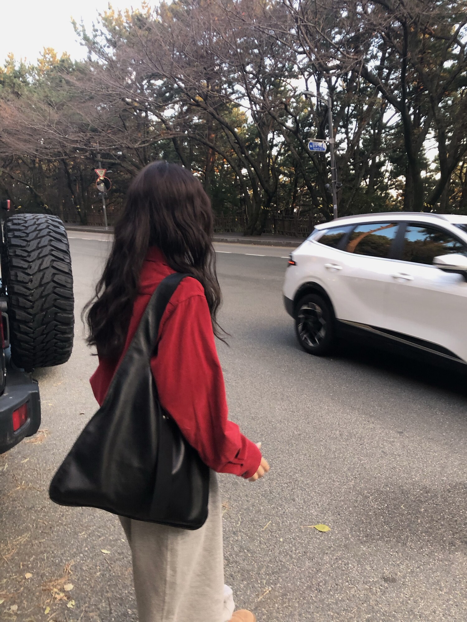 red 착용-촬영컷이 실제색상보다 밝게 나왔으며 살짝 톤 다운된 정석레드입니다.