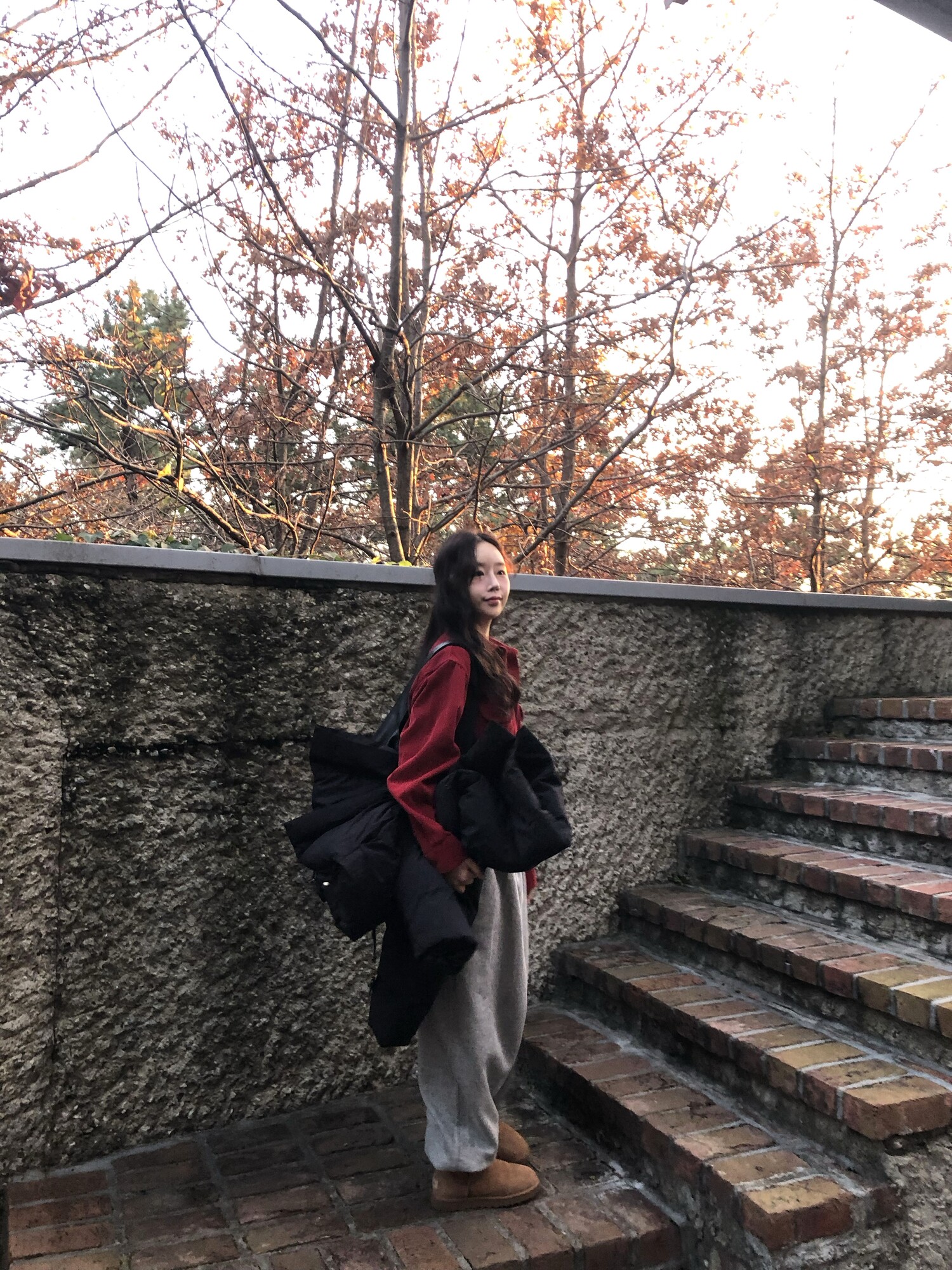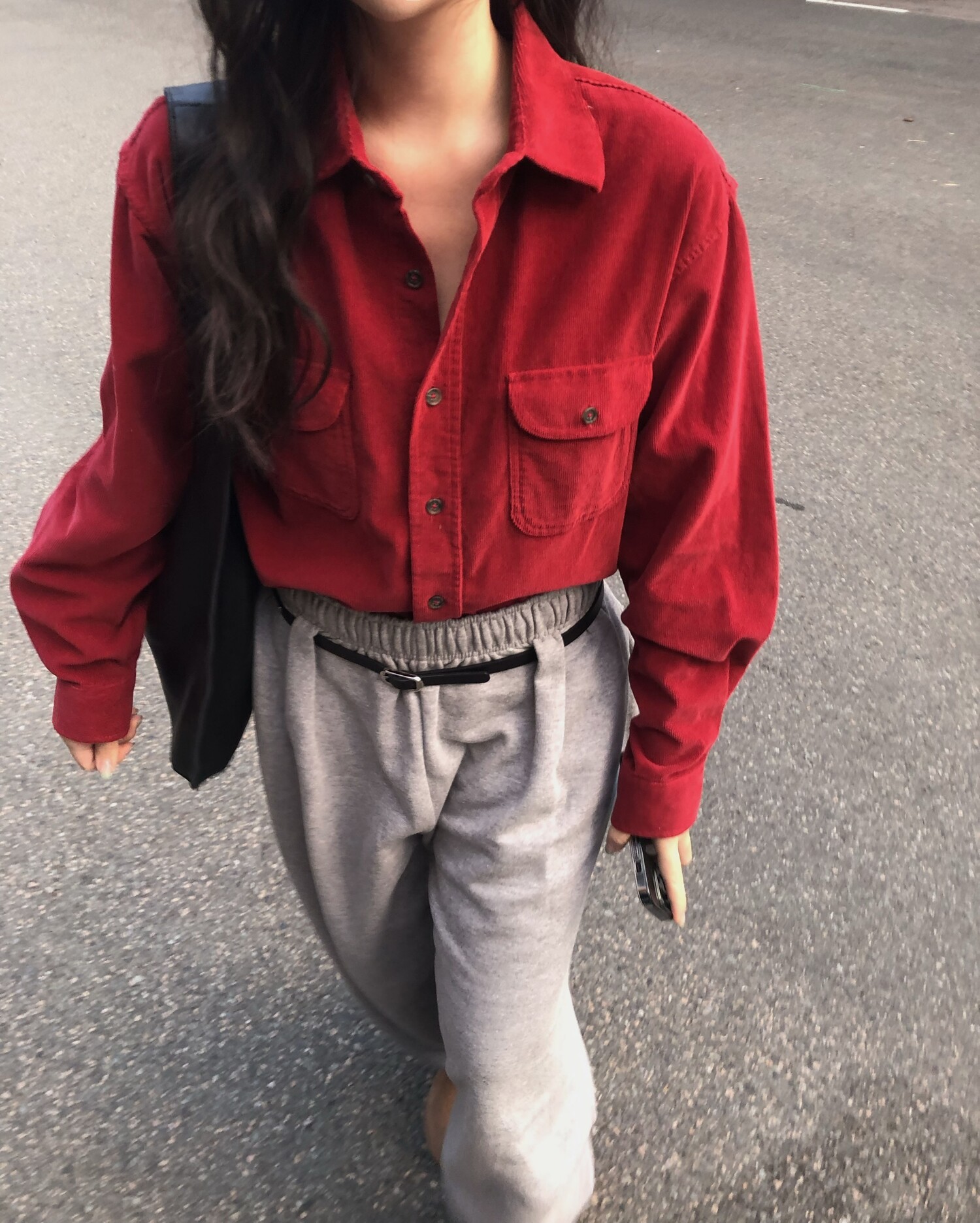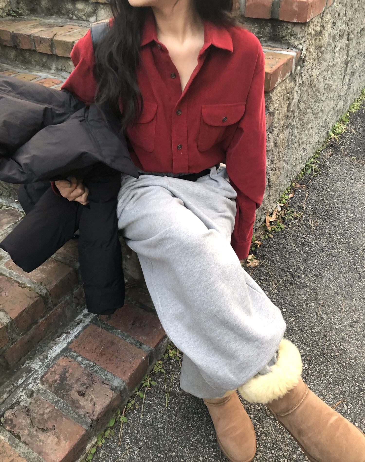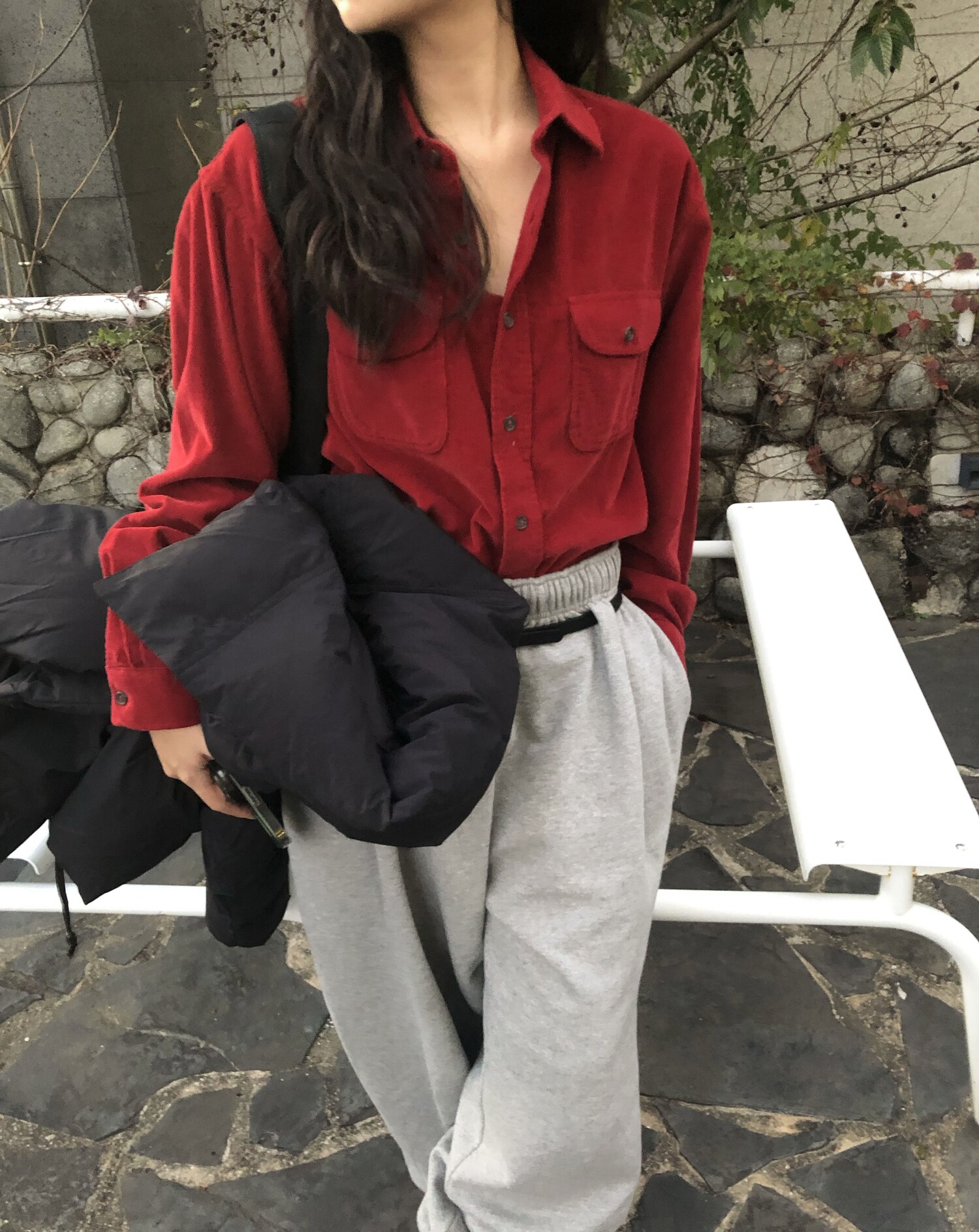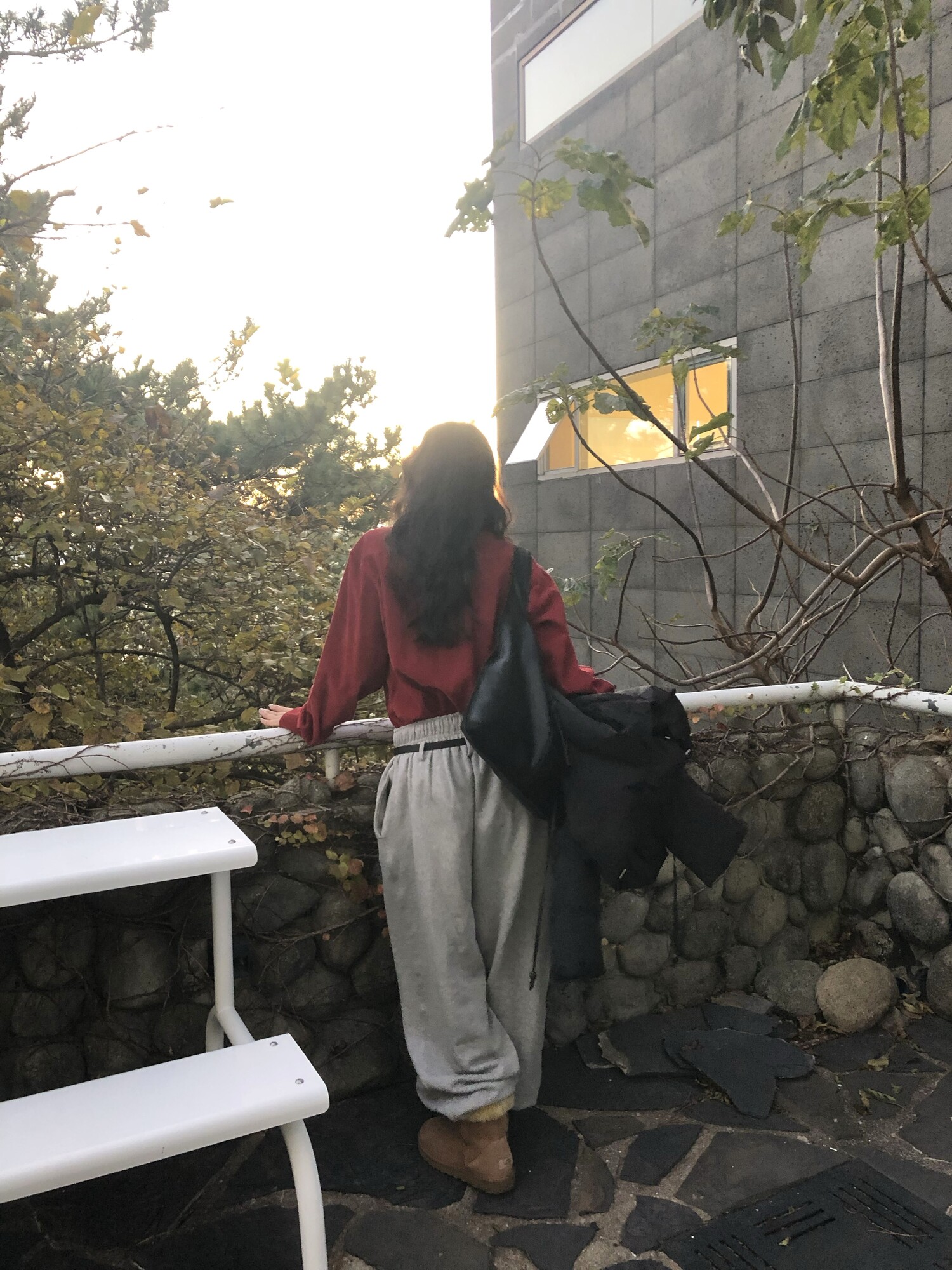 red 착용-촬영컷이 실제색상보다 밝게 나왔으며 살짝 톤 다운된 정석레드입니다.