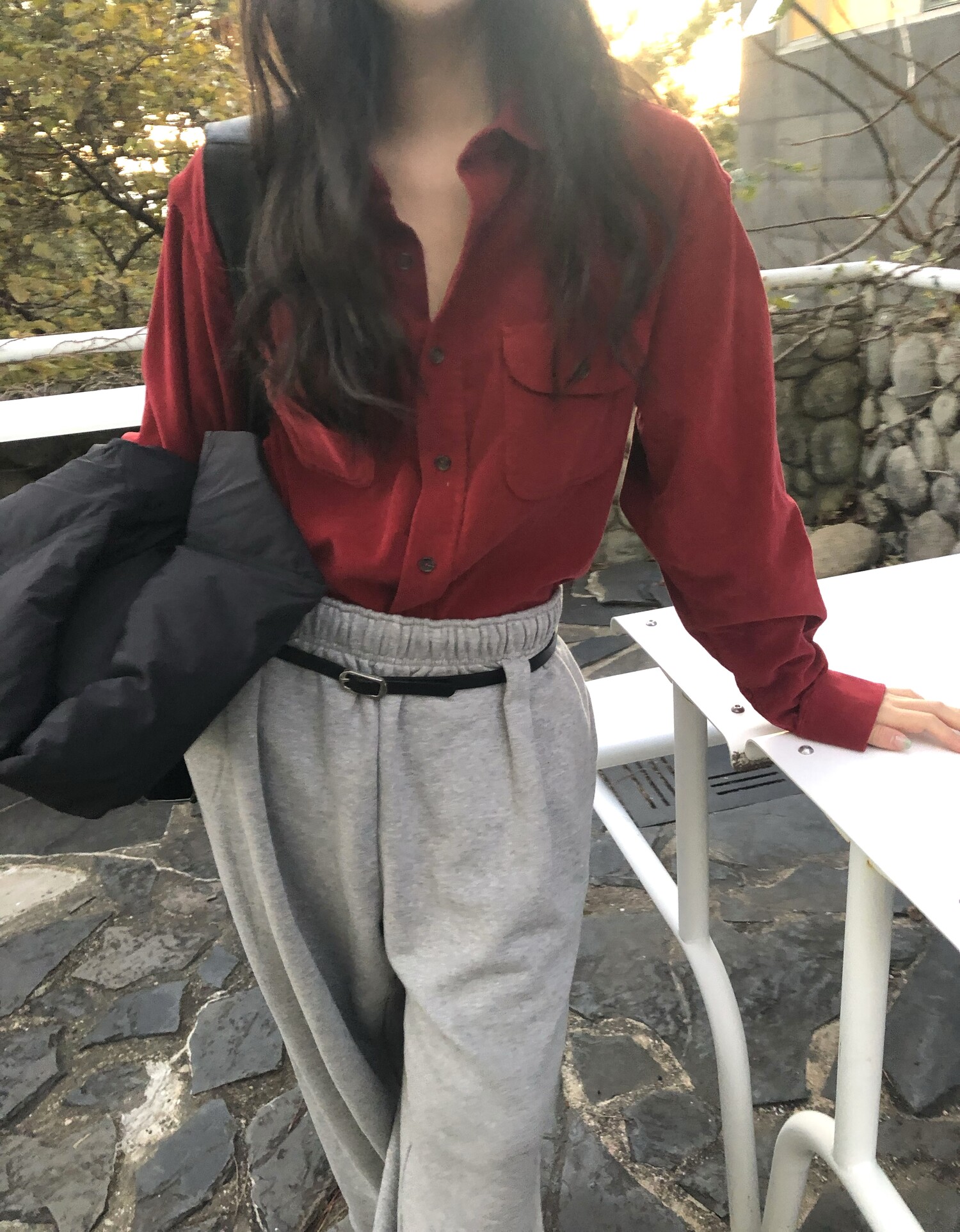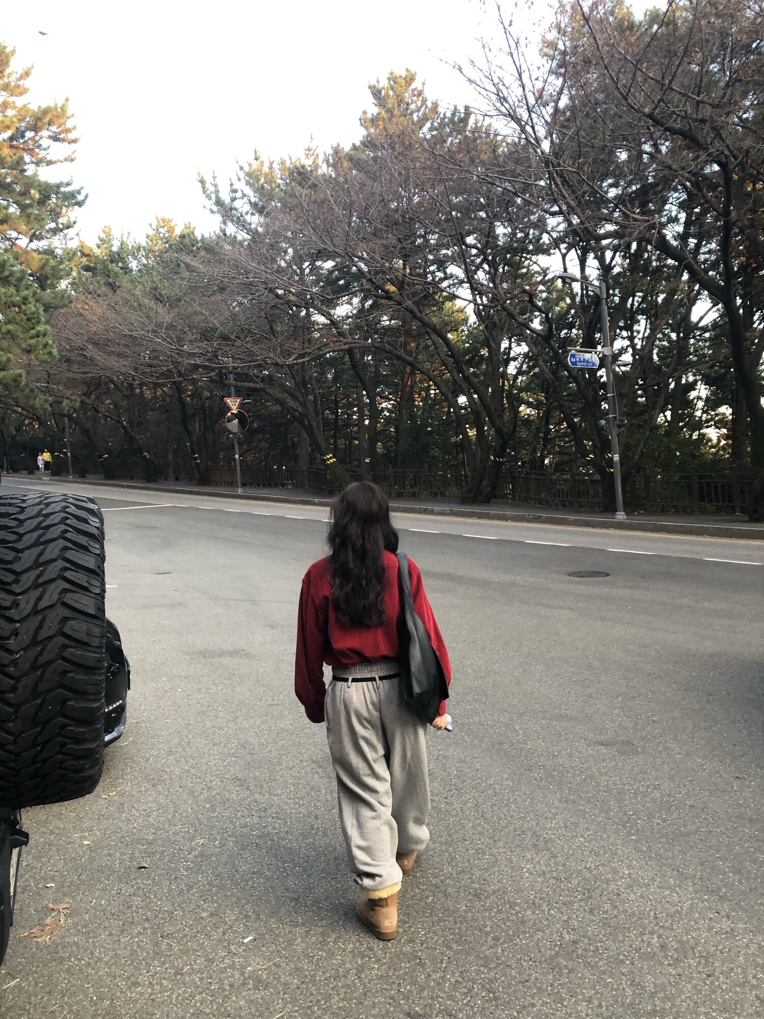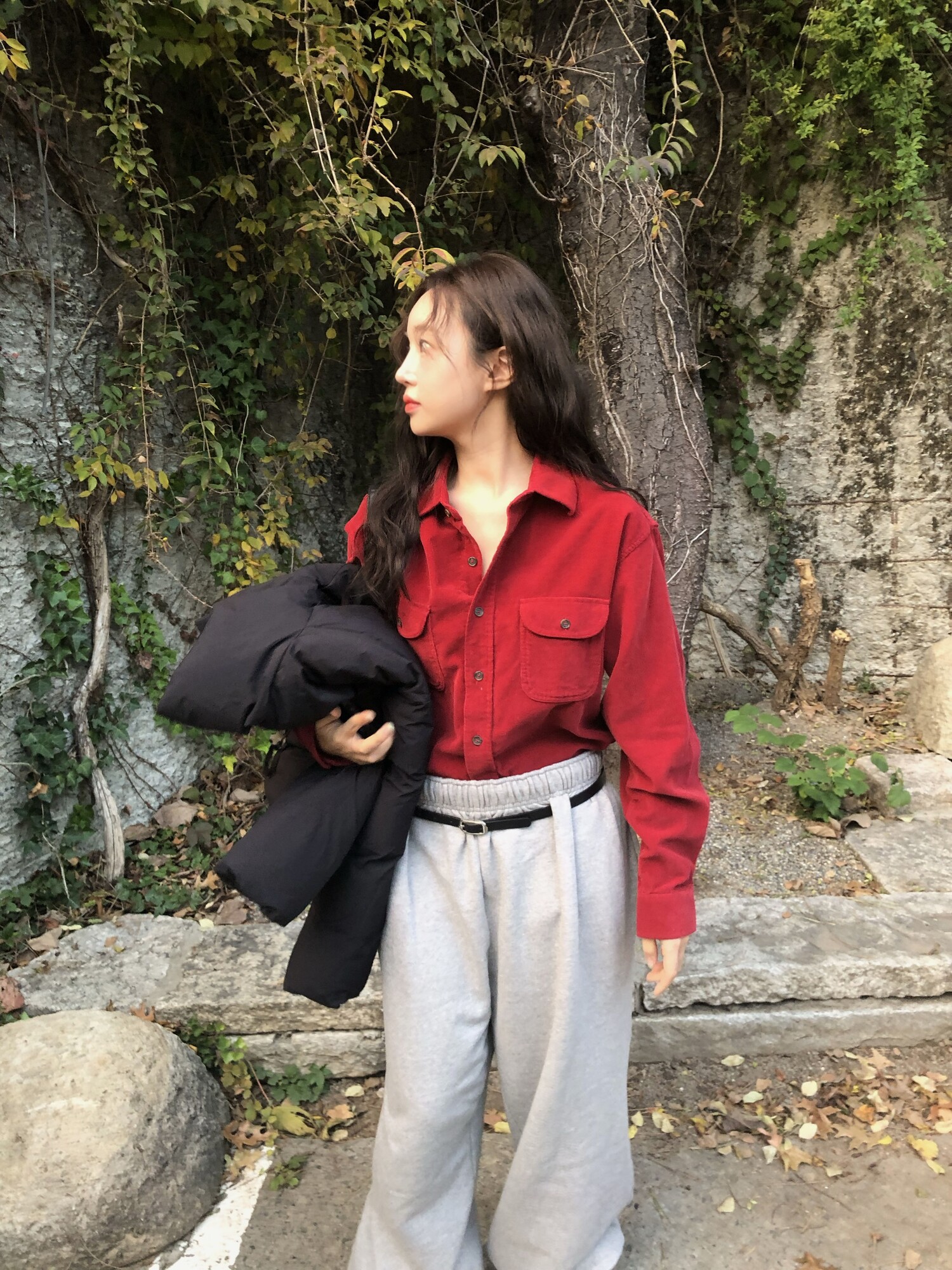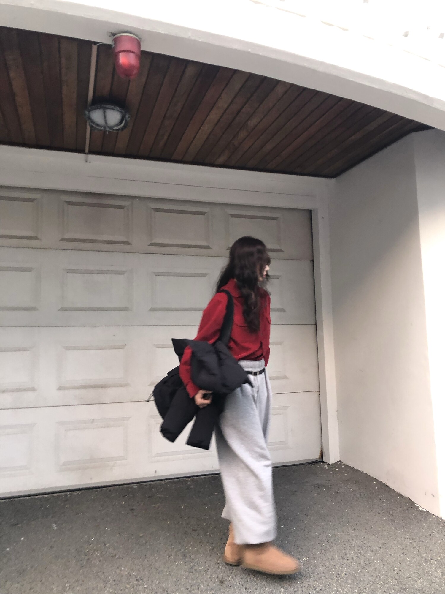 red 착용-촬영컷이 실제색상보다 밝게 나왔으며 살짝 톤 다운된 정석레드입니다.