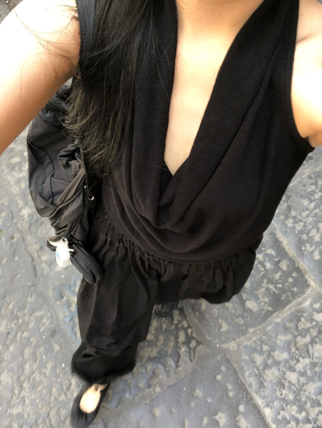어깨홀터넥/가슴단면36/총장56/밑단28/홀터넥부터 바스트파임깊이약26