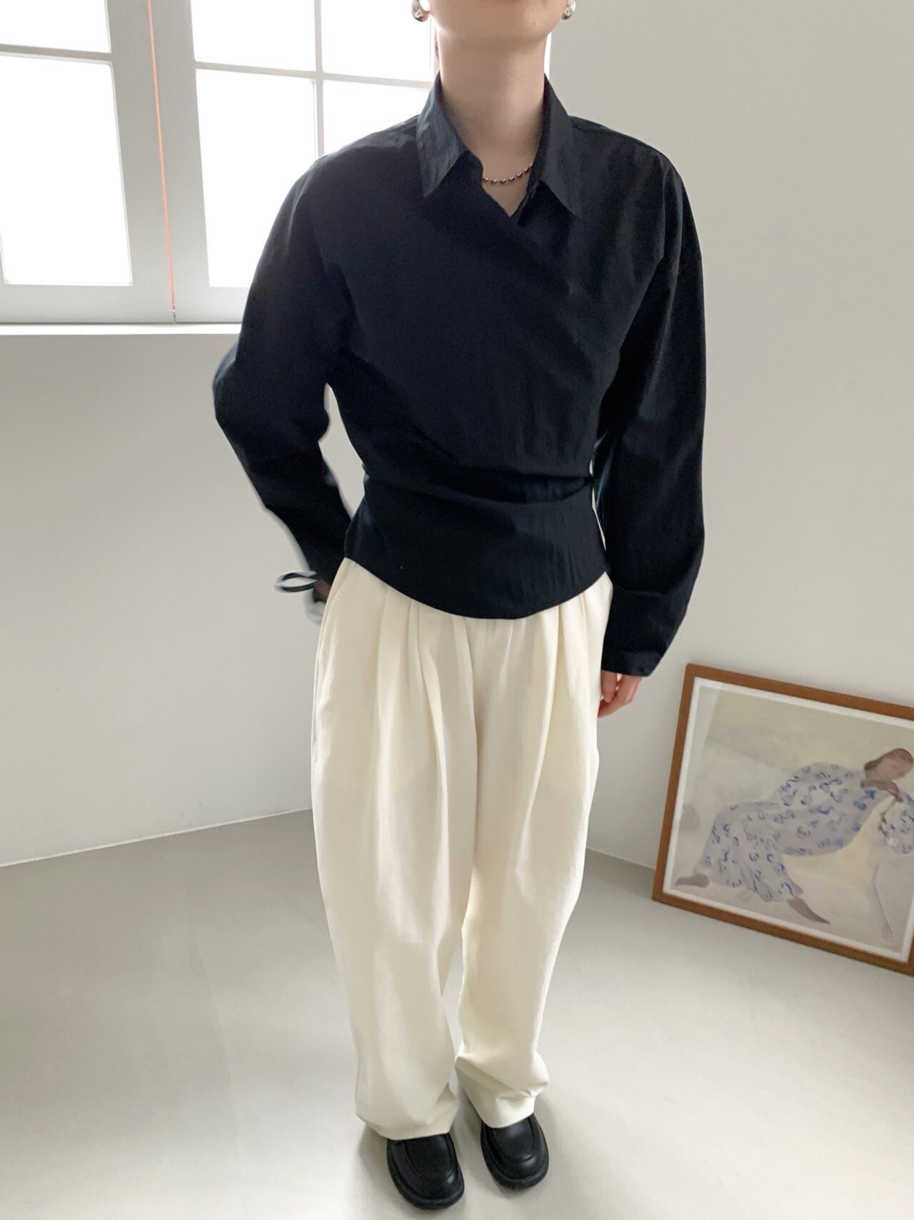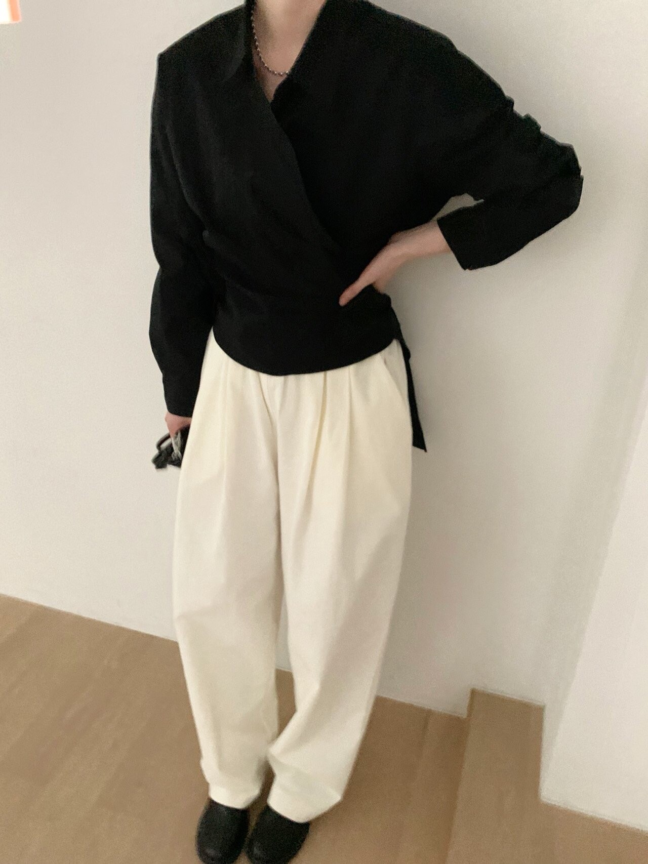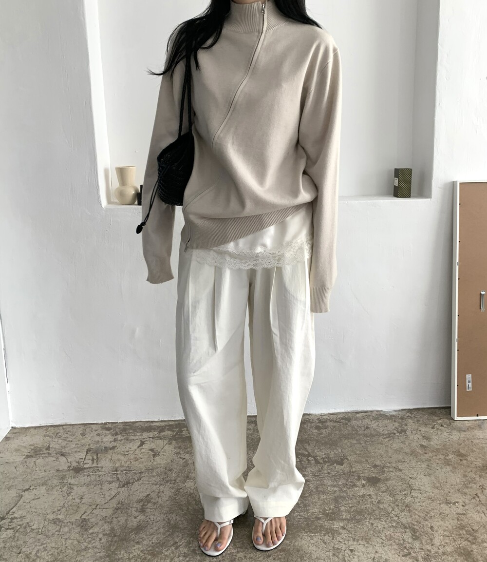 -오버핏 와이드한 핀턱 밴딩팬츠로 낙낙한 핏이 멋스런 아이템이에요.