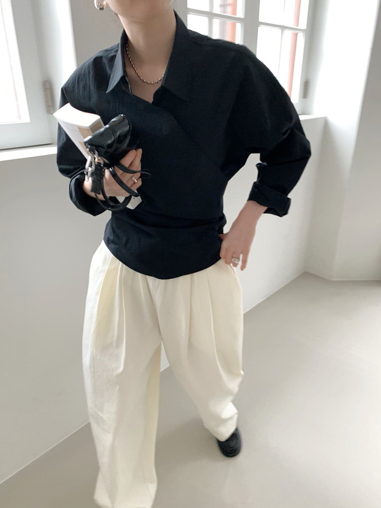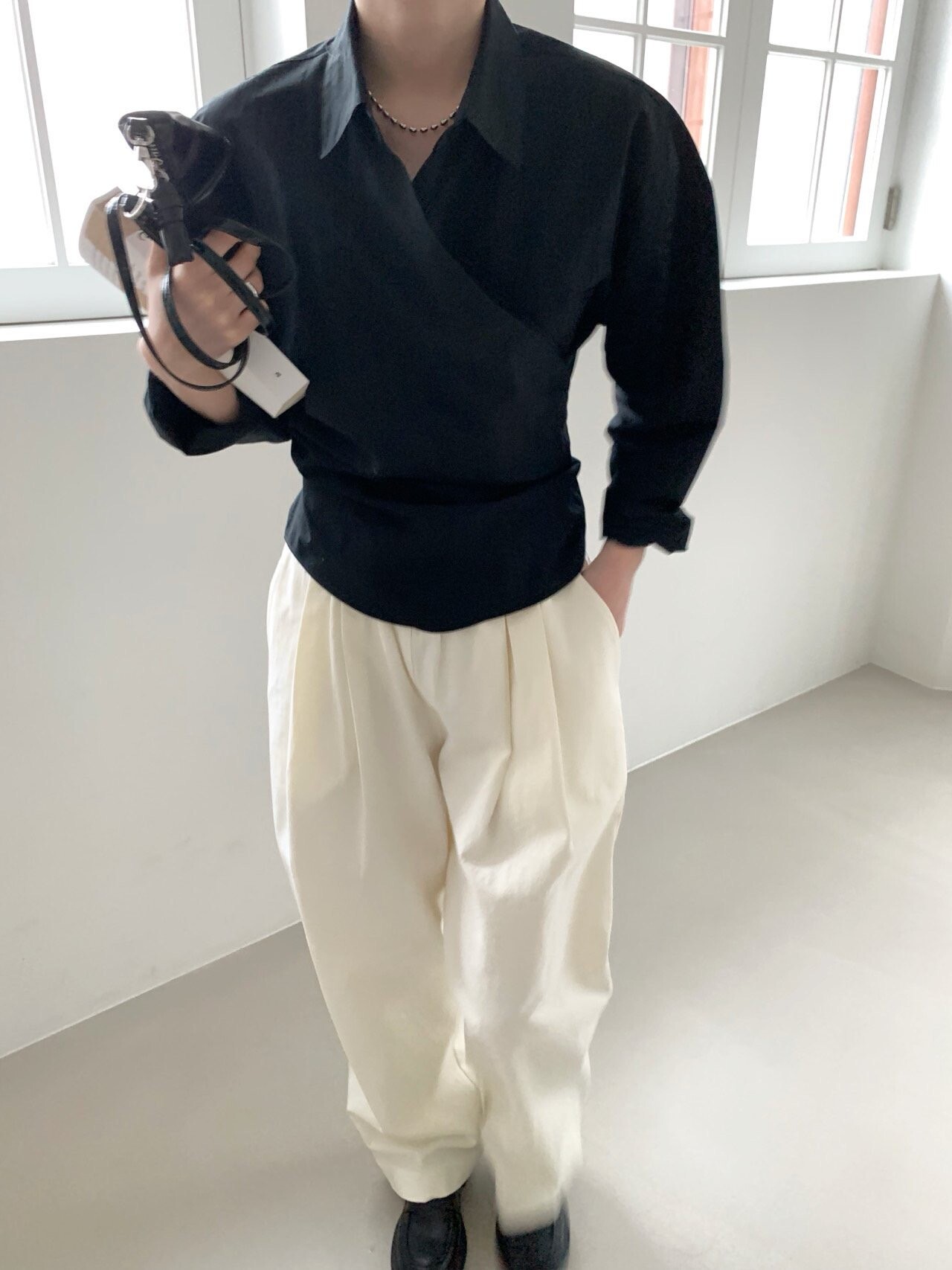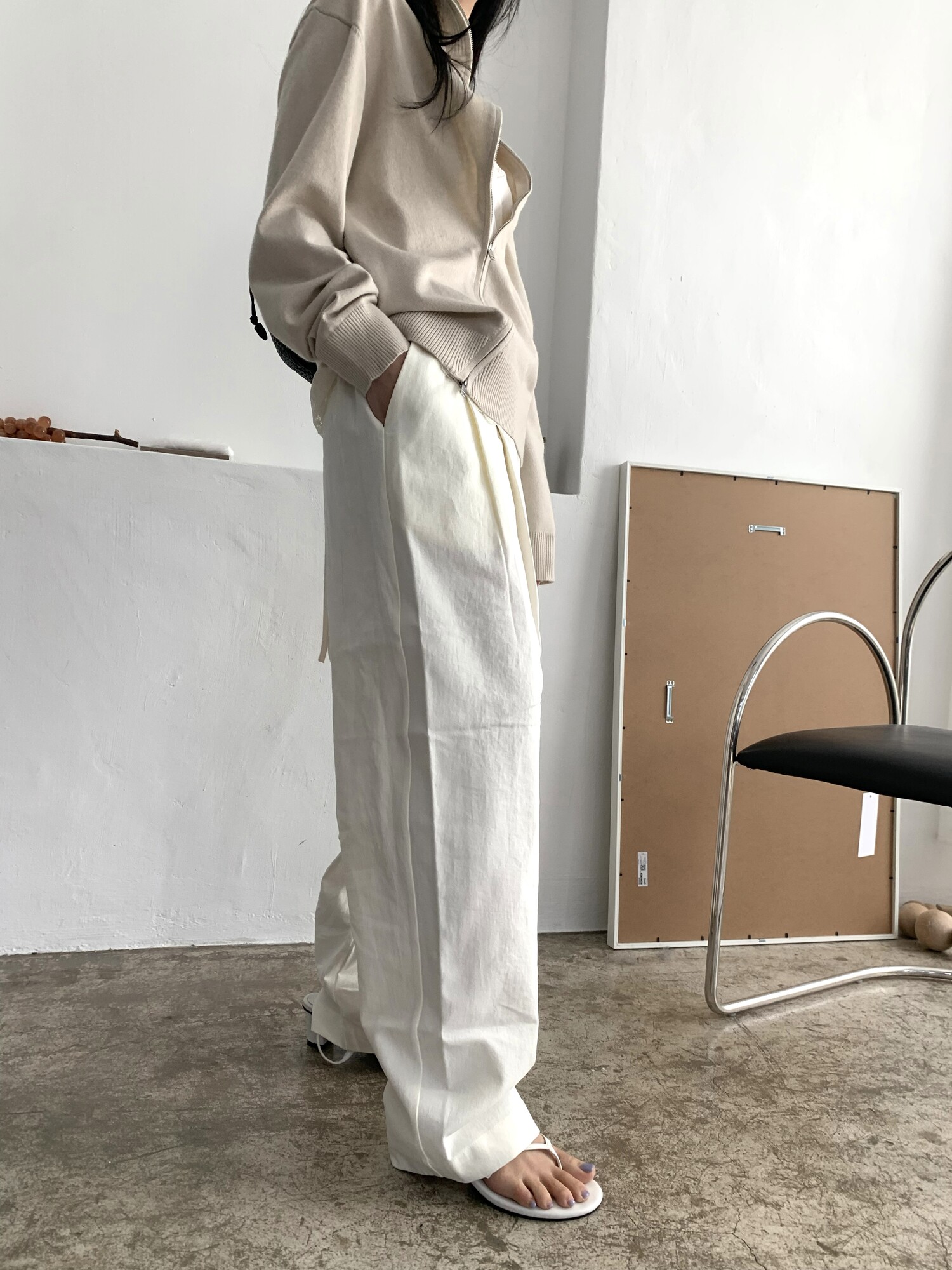 -오버핏 와이드한 핀턱 밴딩팬츠로 낙낙한 핏이 멋스런 아이템이에요.