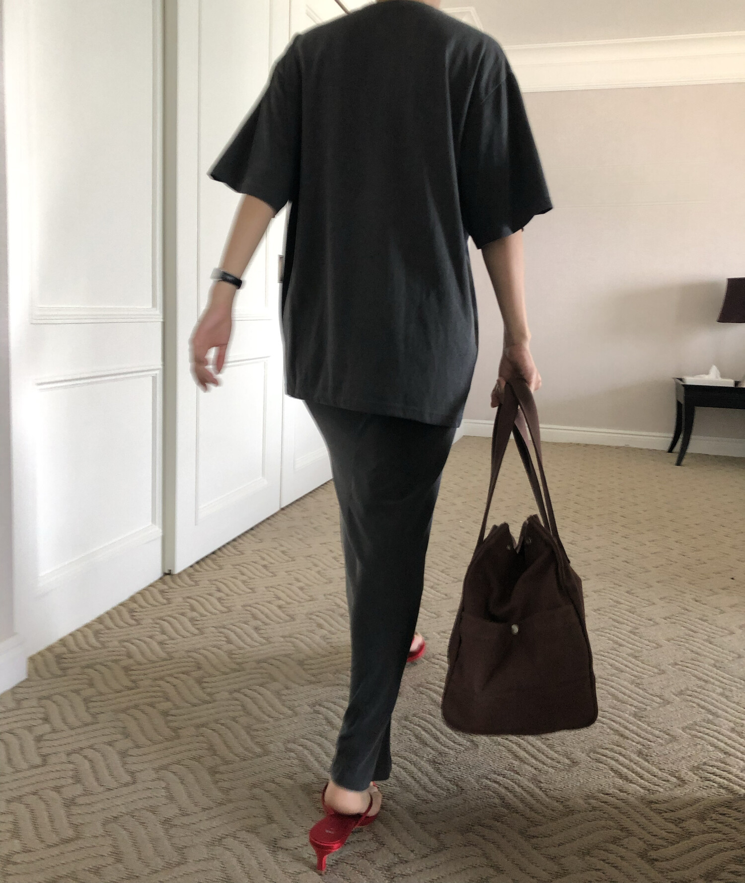 brown 착용-실제 색상과 가깝습니다. 살짝 물 빠진 듯 빈티지스런 색상입니다.