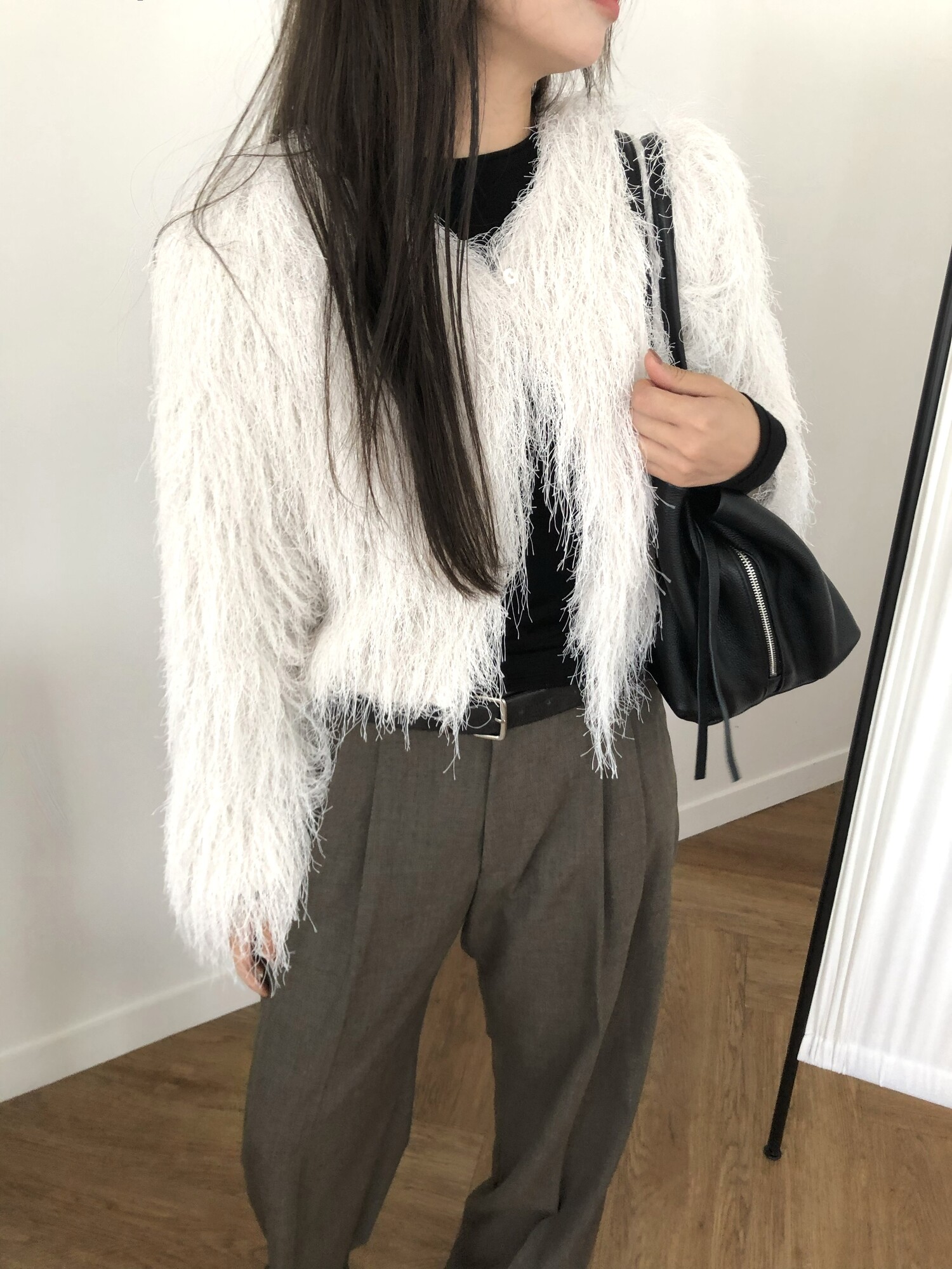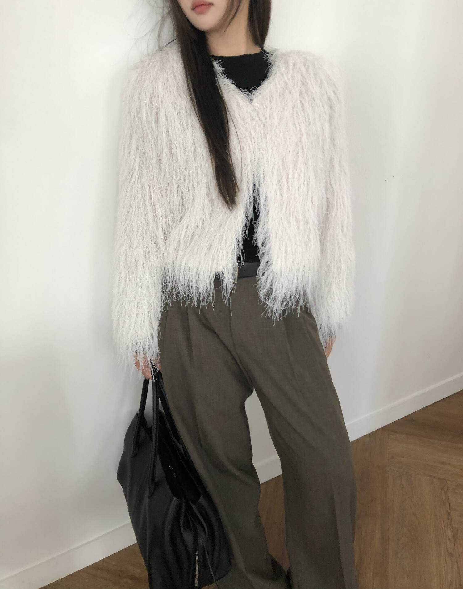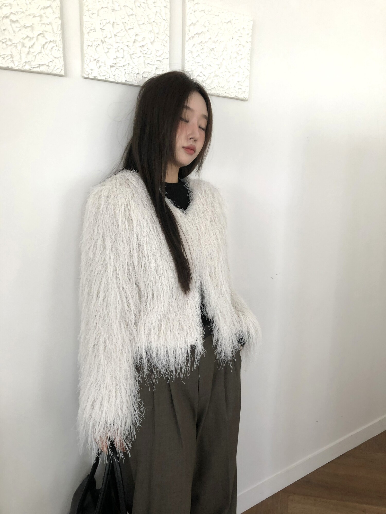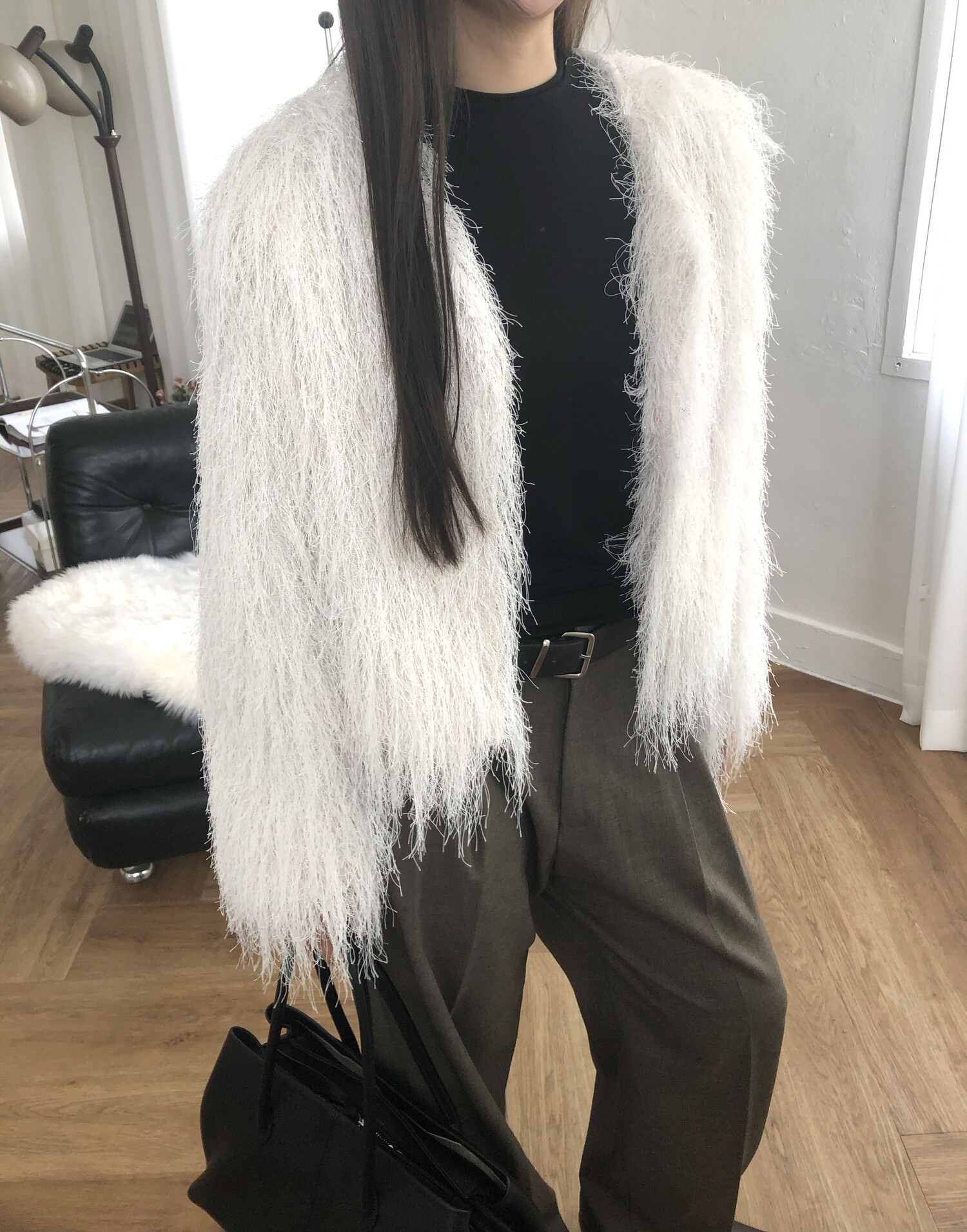 글리터 프린지가 혼합되어 과하지 않게 쉬머한 무드를 선사해주며 특별한 날에도 입기좋아 적극추천드려요.