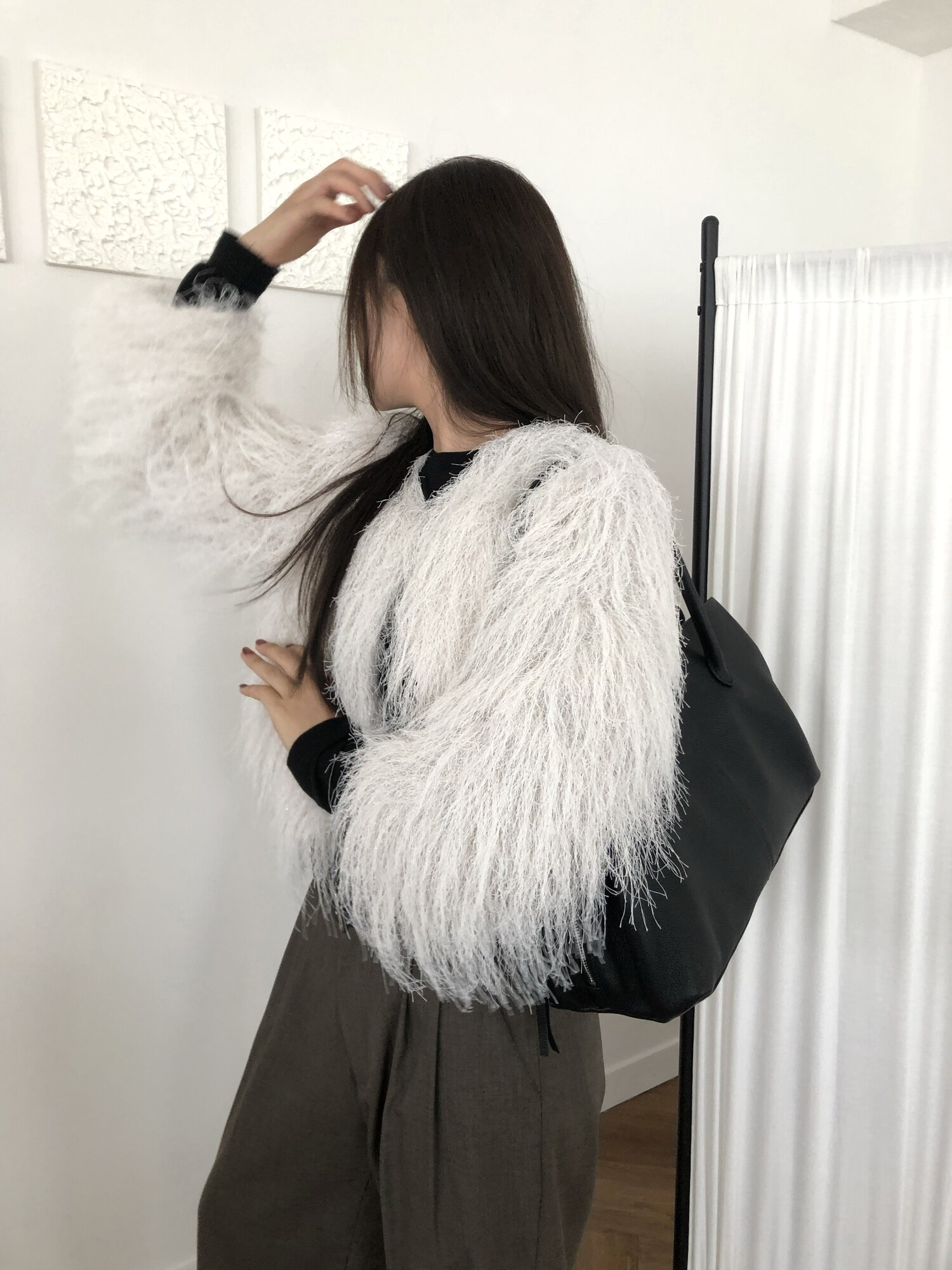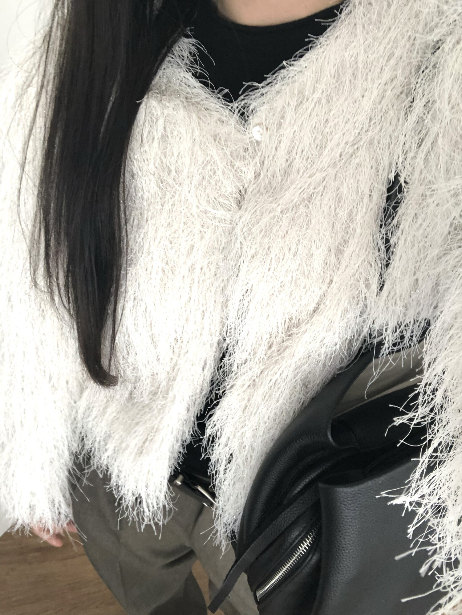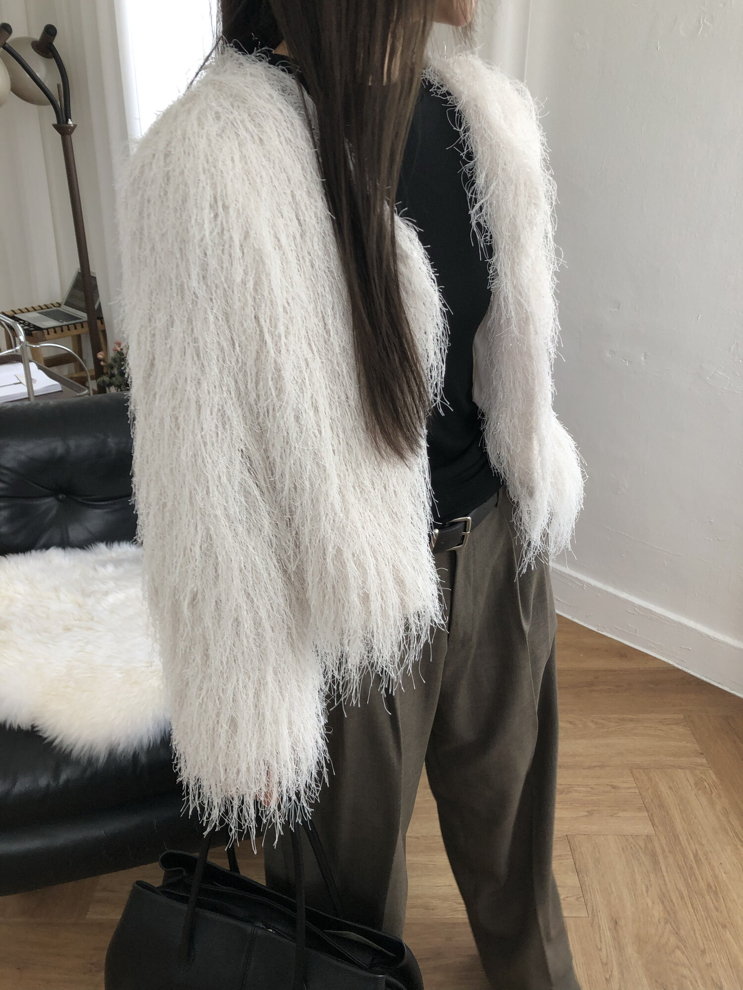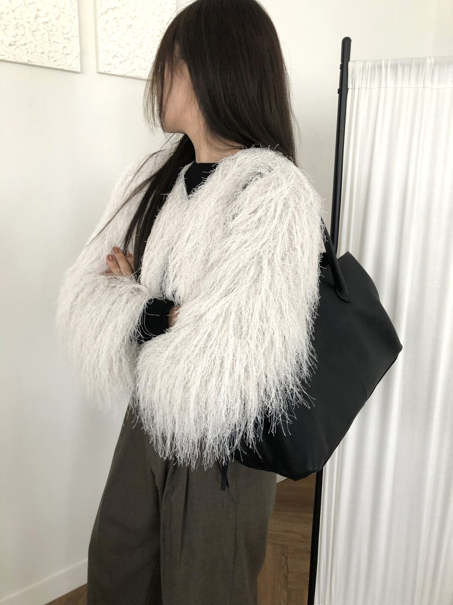 글리터 프린지가 혼합되어 과하지 않게 쉬머한 무드를 선사해주며 특별한 날에도 입기좋아 적극추천드려요.
