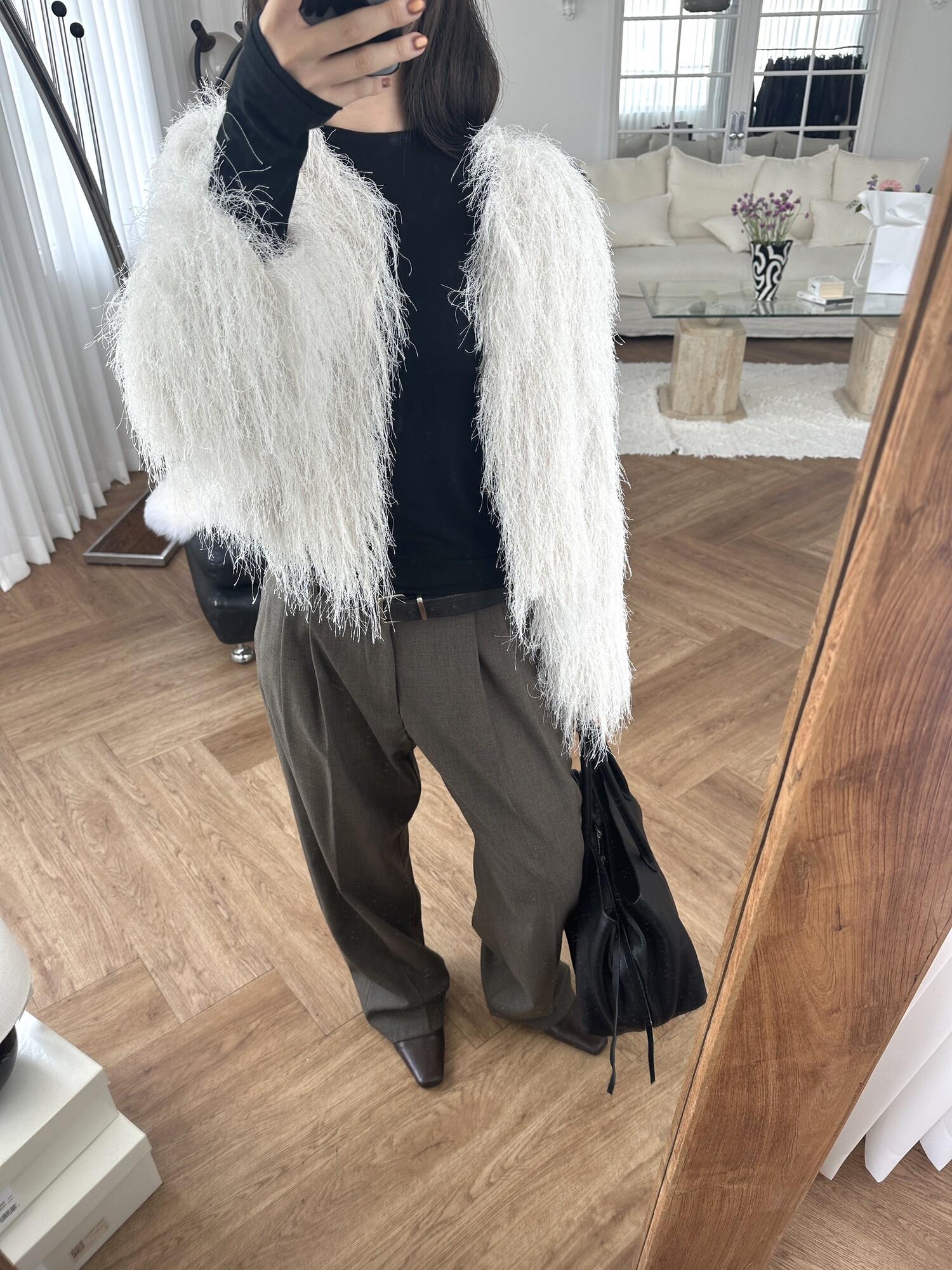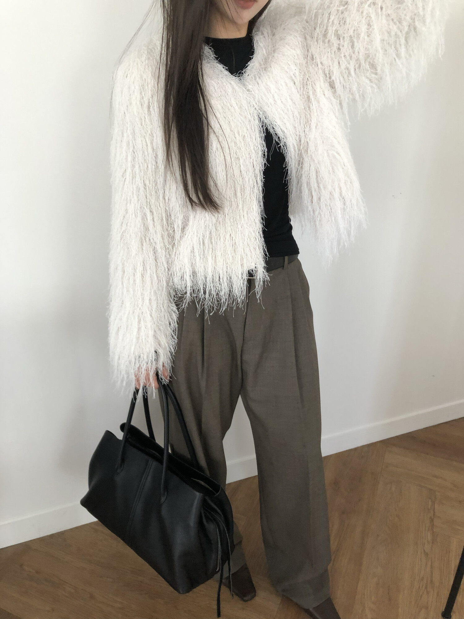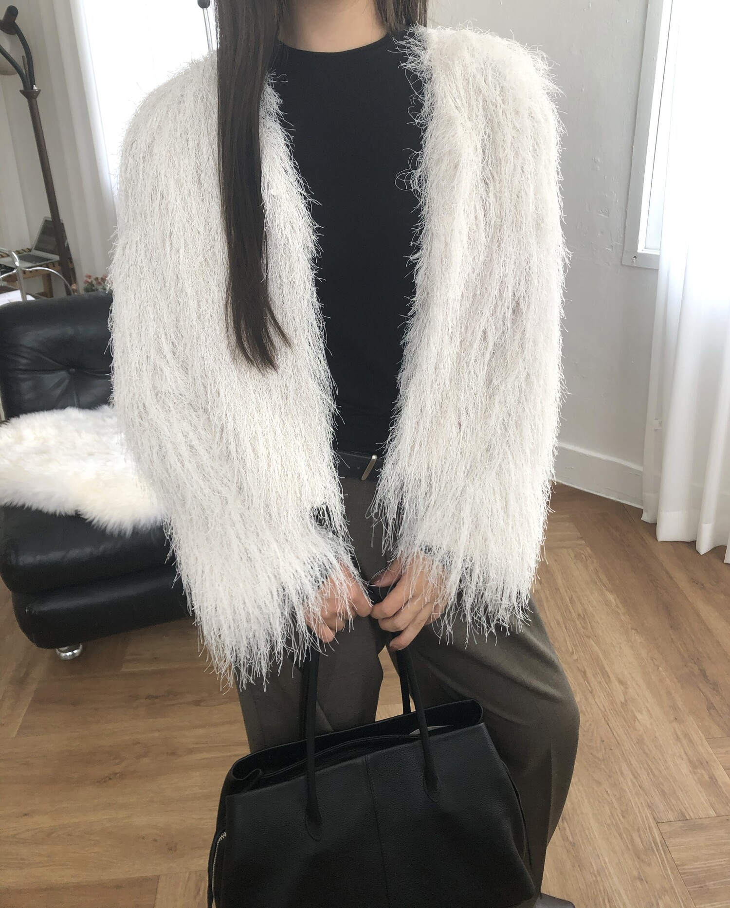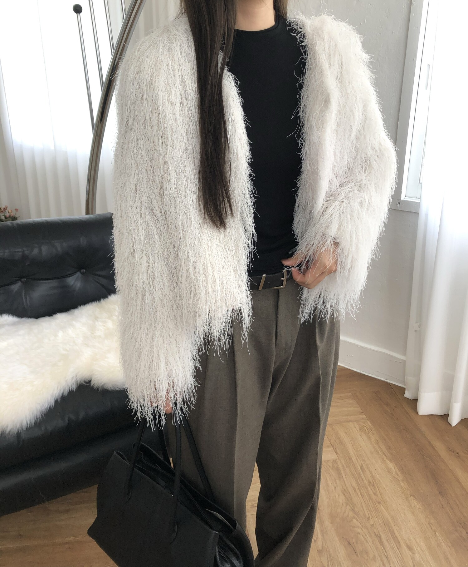 글리터 프린지가 혼합되어 과하지 않게 쉬머한 무드를 선사해주며 특별한 날에도 입기좋아 적극추천드려요.