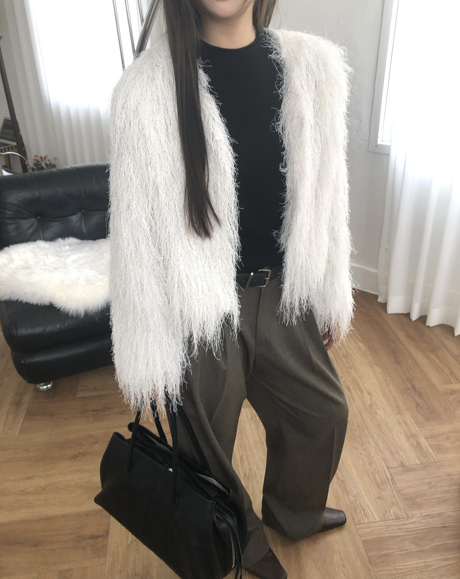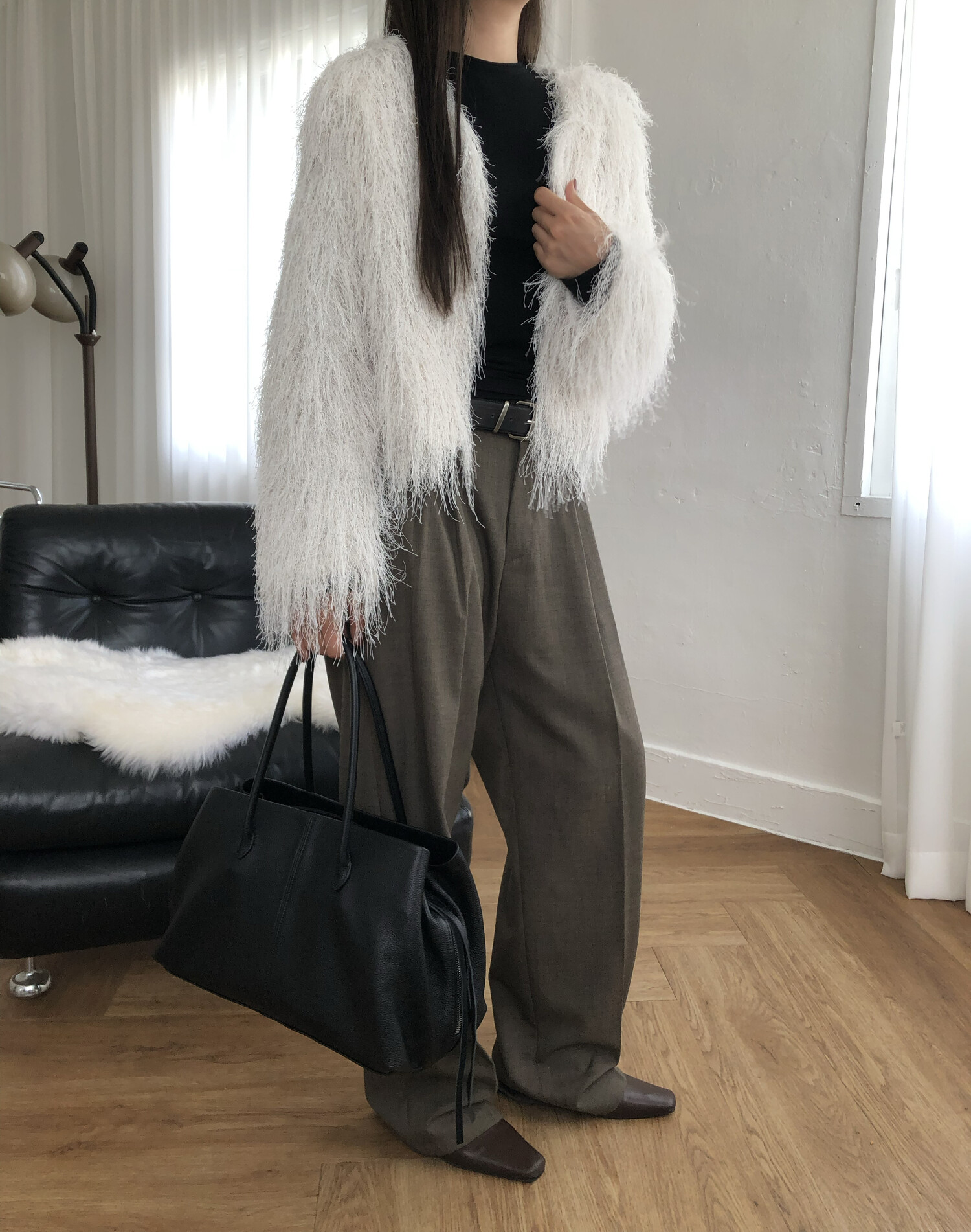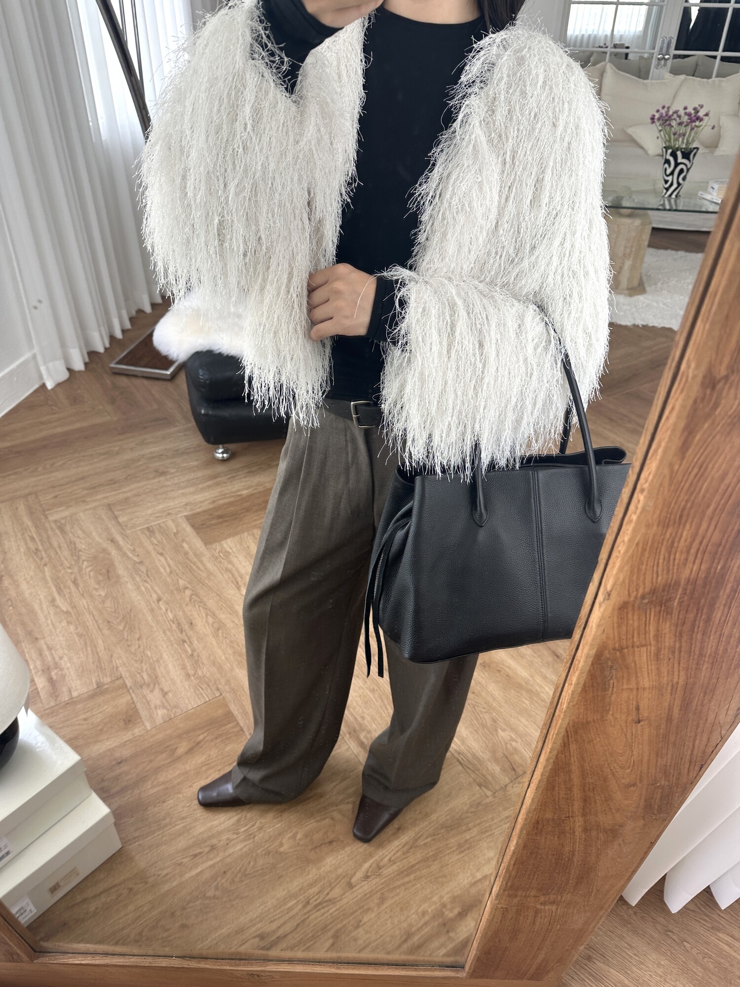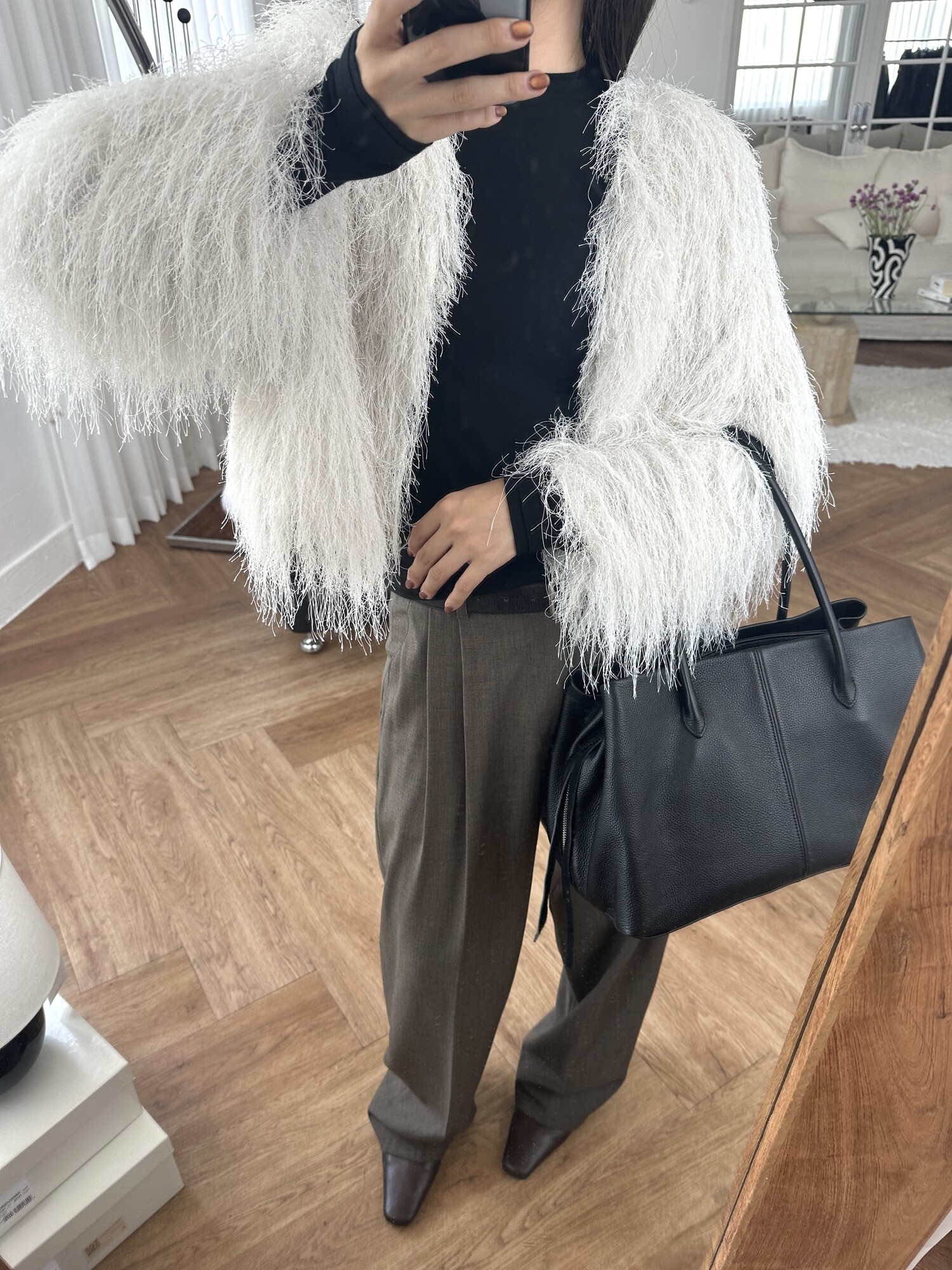 글리터 프린지가 혼합되어 과하지 않게 쉬머한 무드를 선사해주며 특별한 날에도 입기좋아 적극추천드려요.