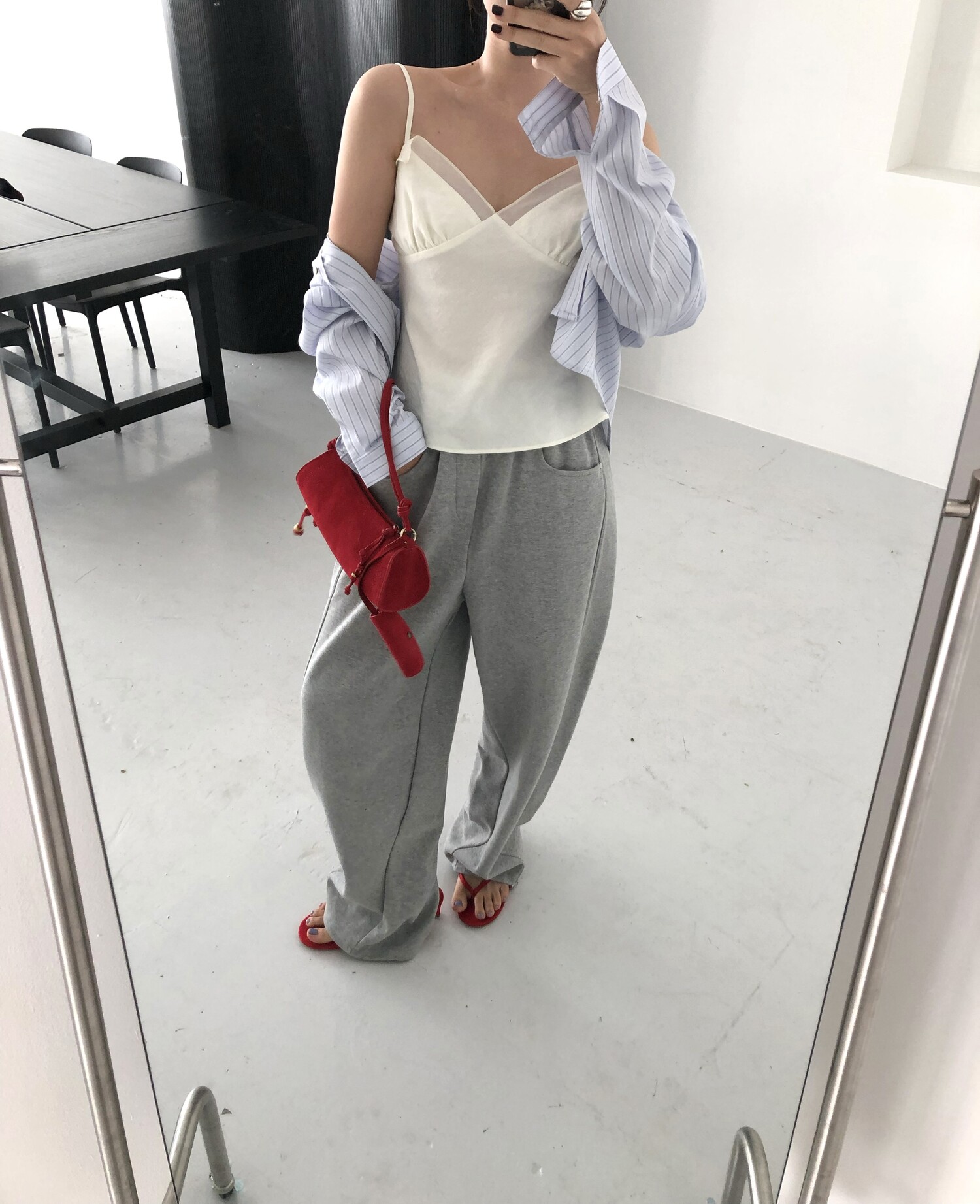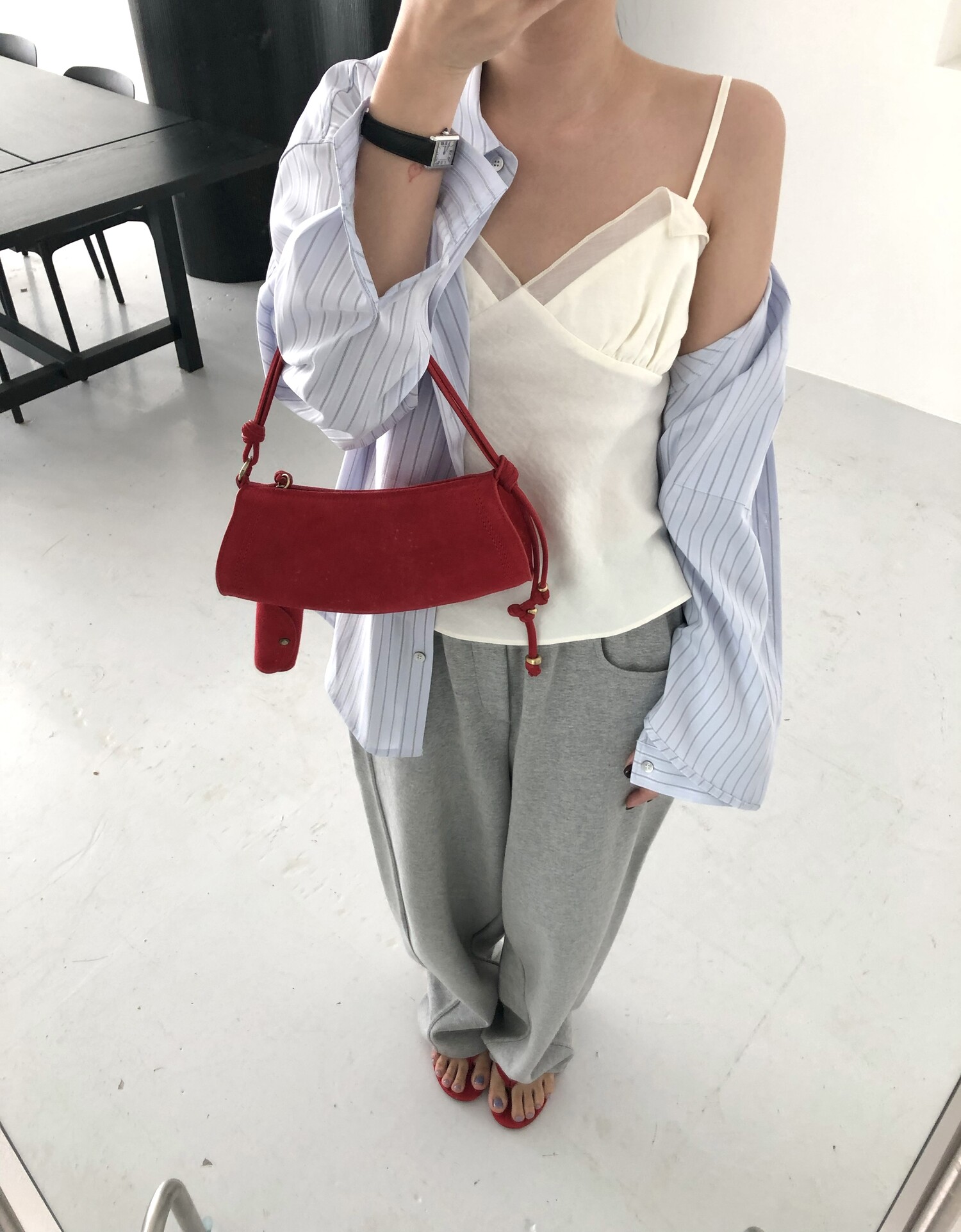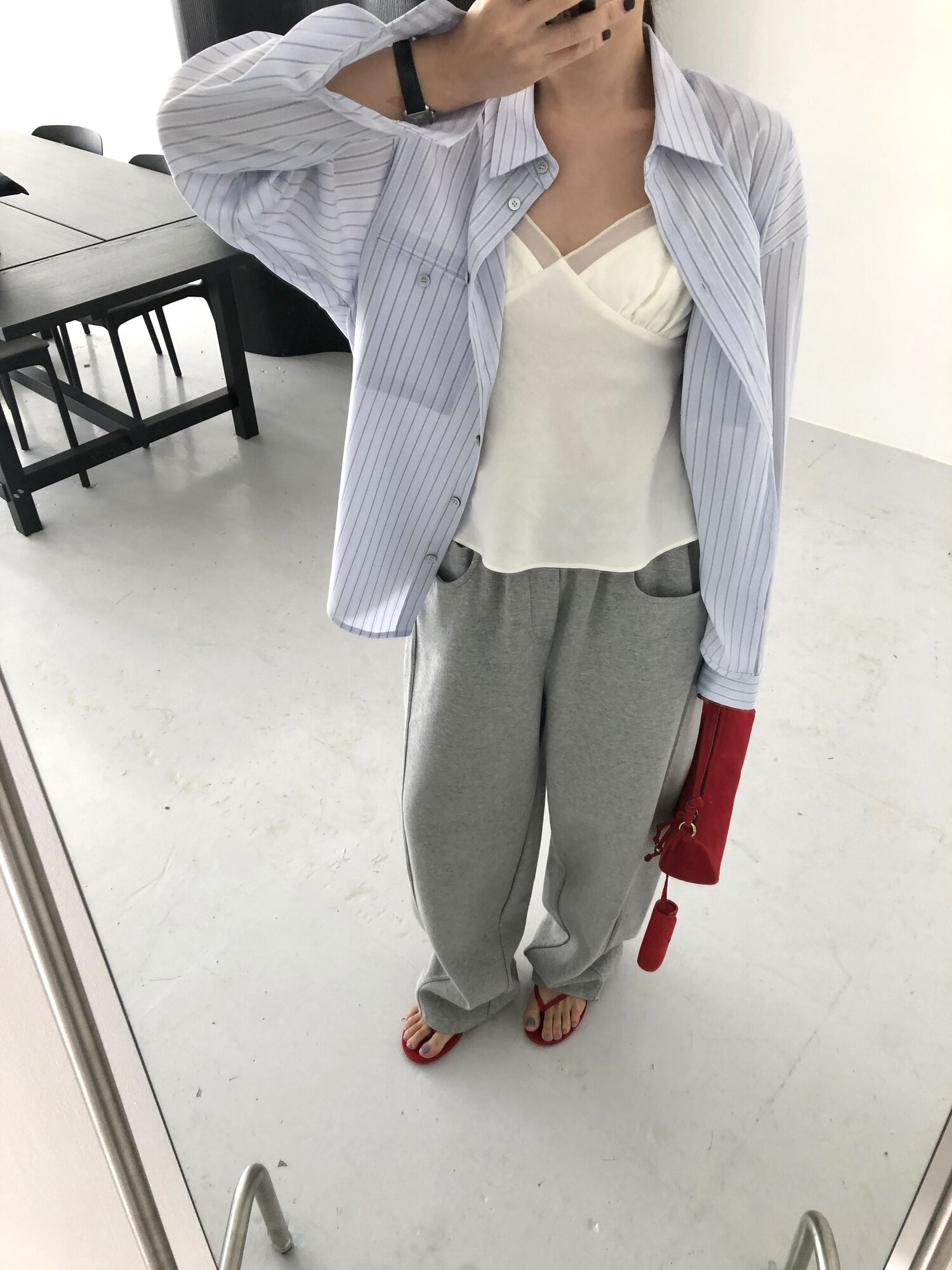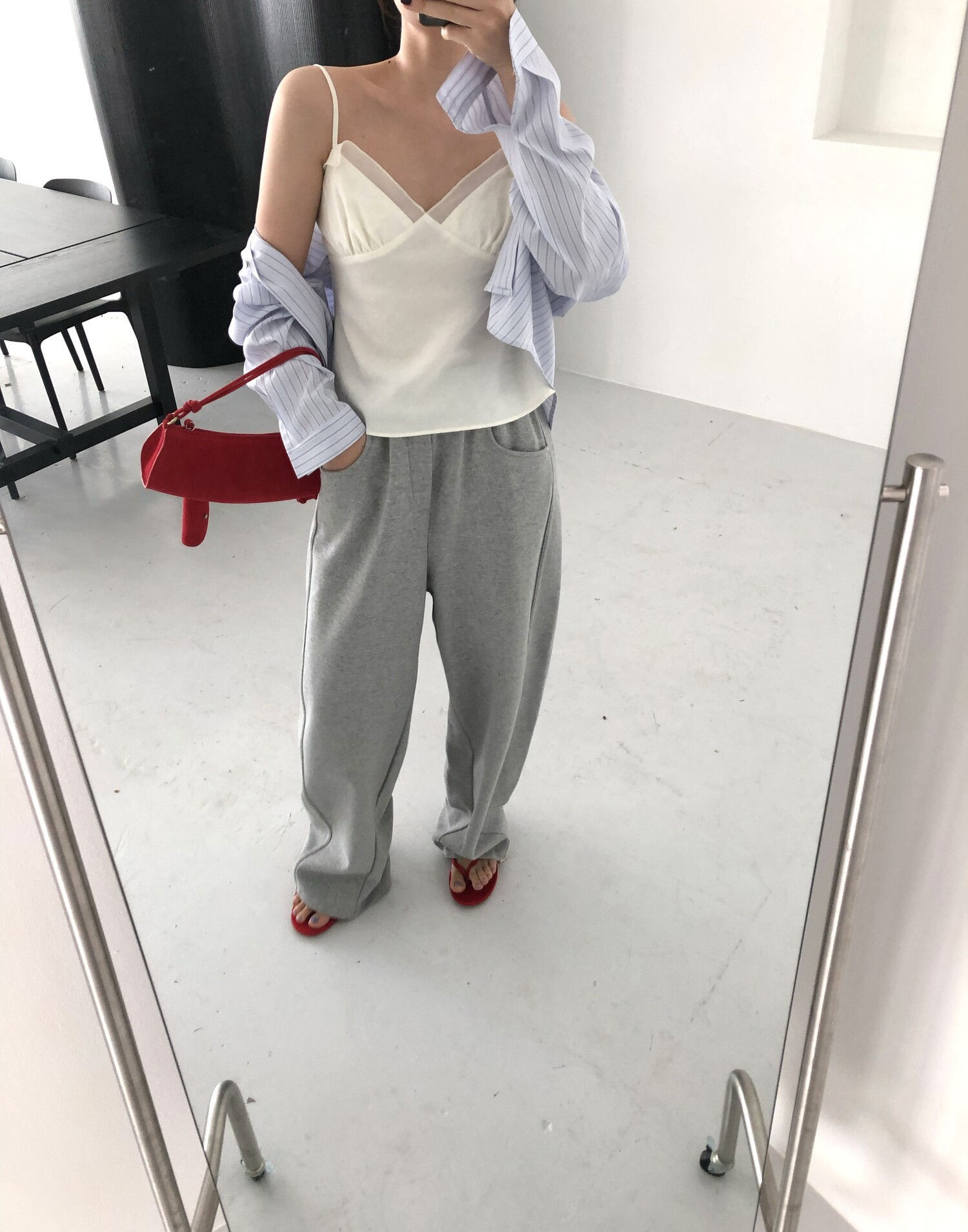 162cm / 허리 28 (상의 s, 하의m 힙과 허벅지가 큰편) / 신발 240mm