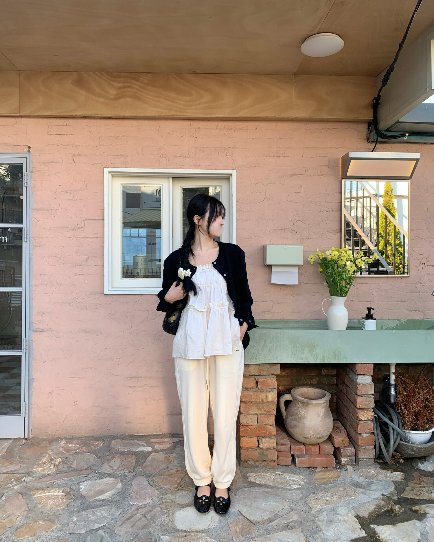 허리밴딩34/힙49/밑위34/허벅지31/총장95/밑단밴딩16