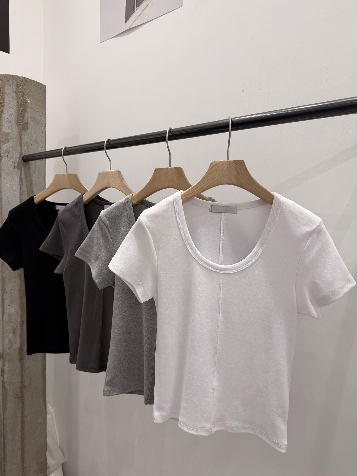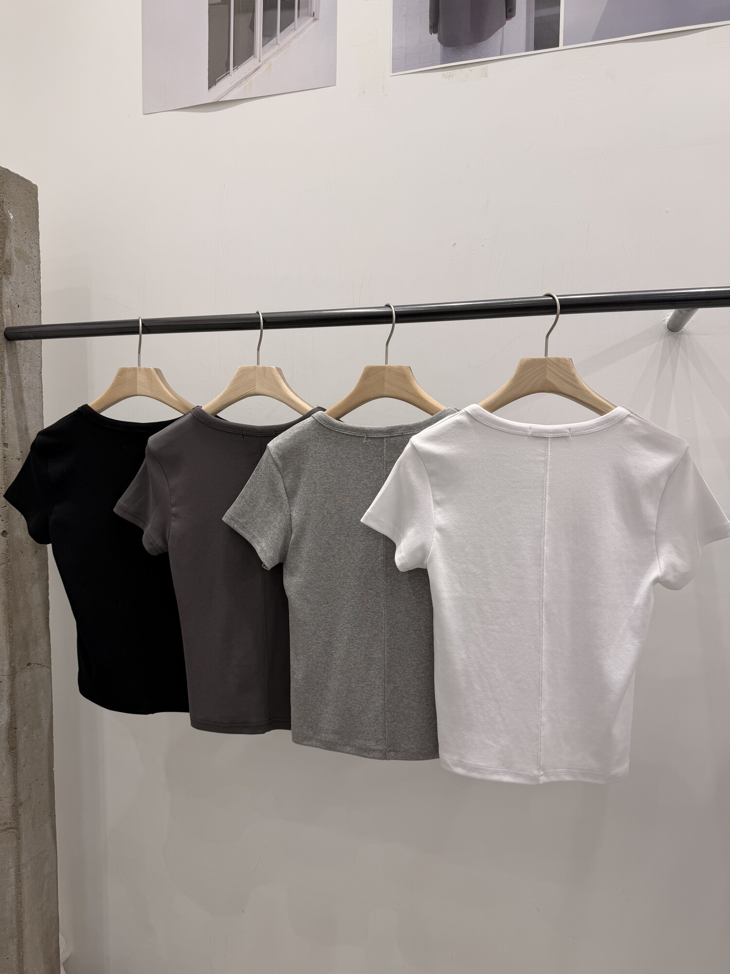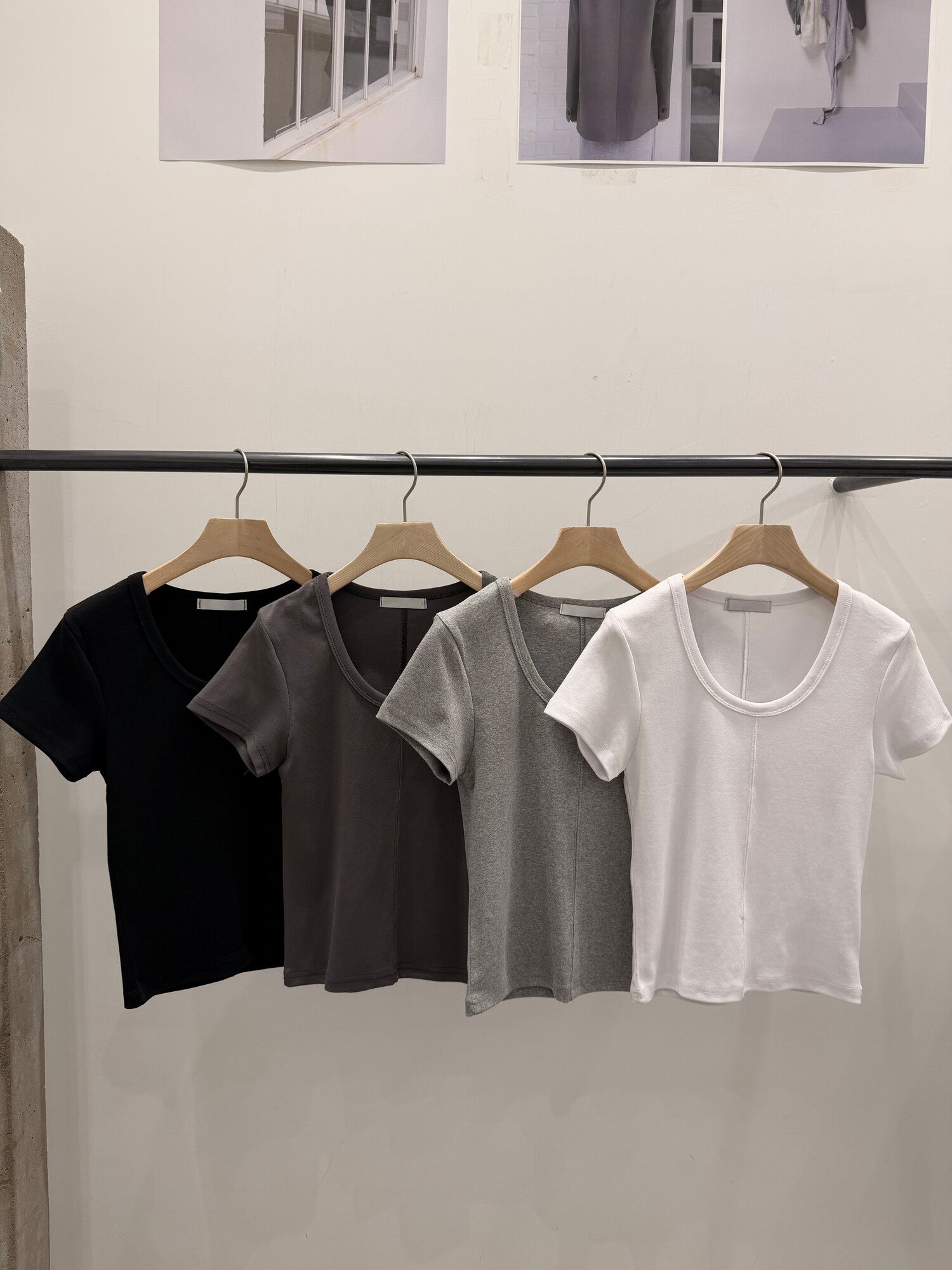 Lined round crop t-4color