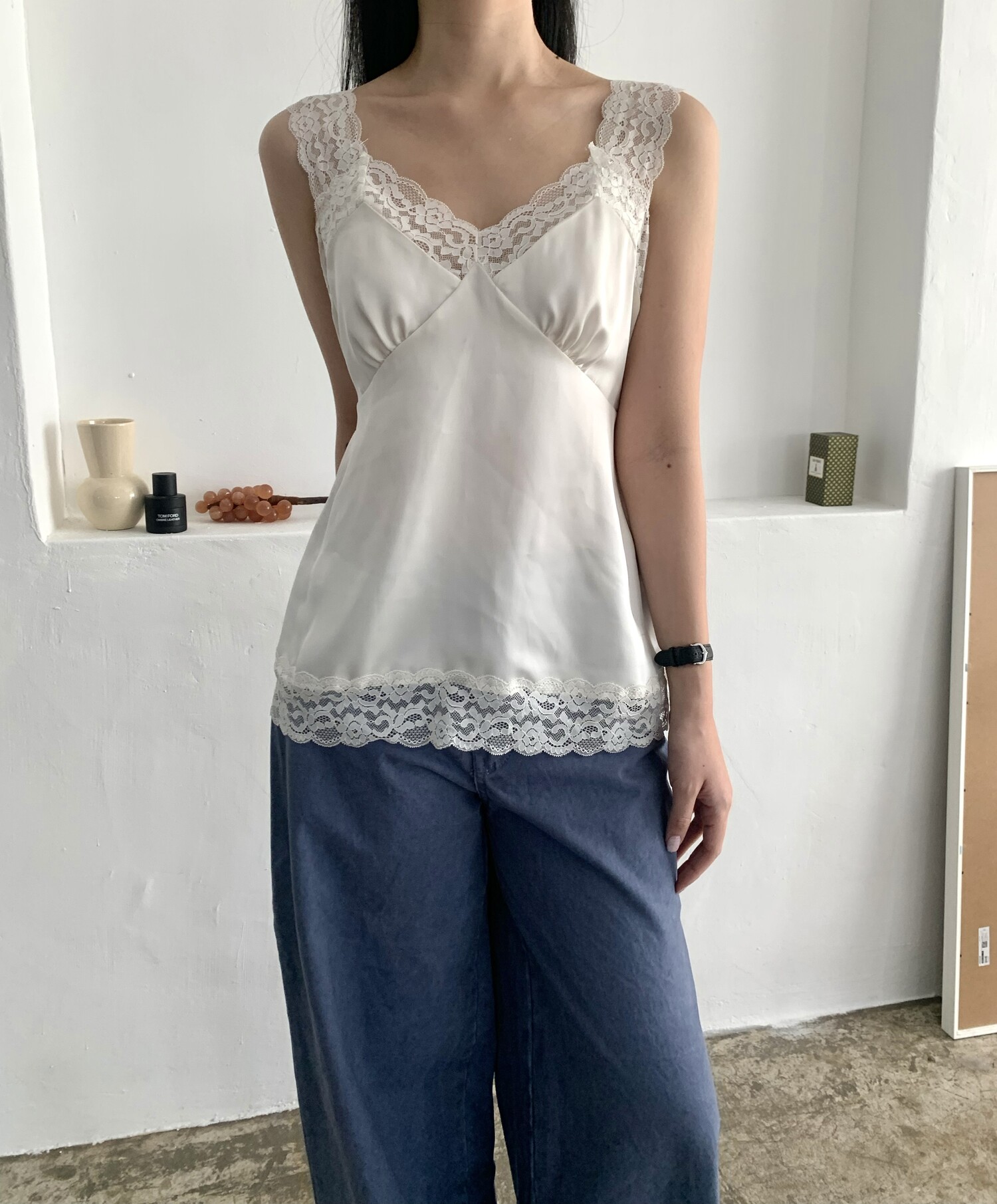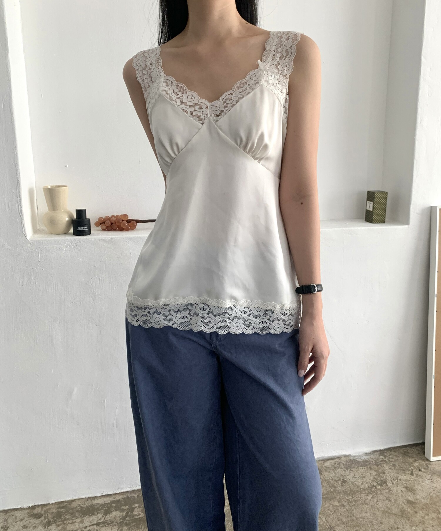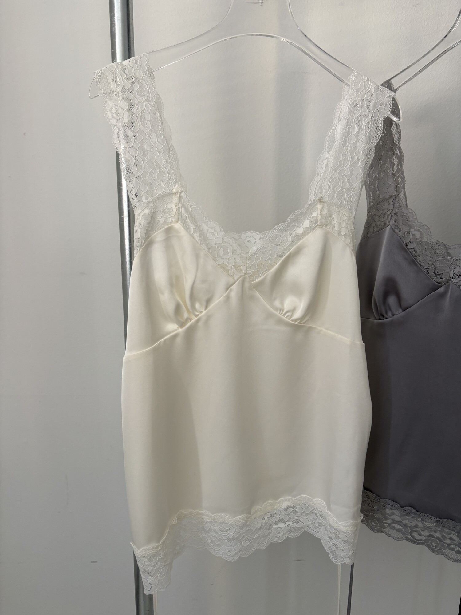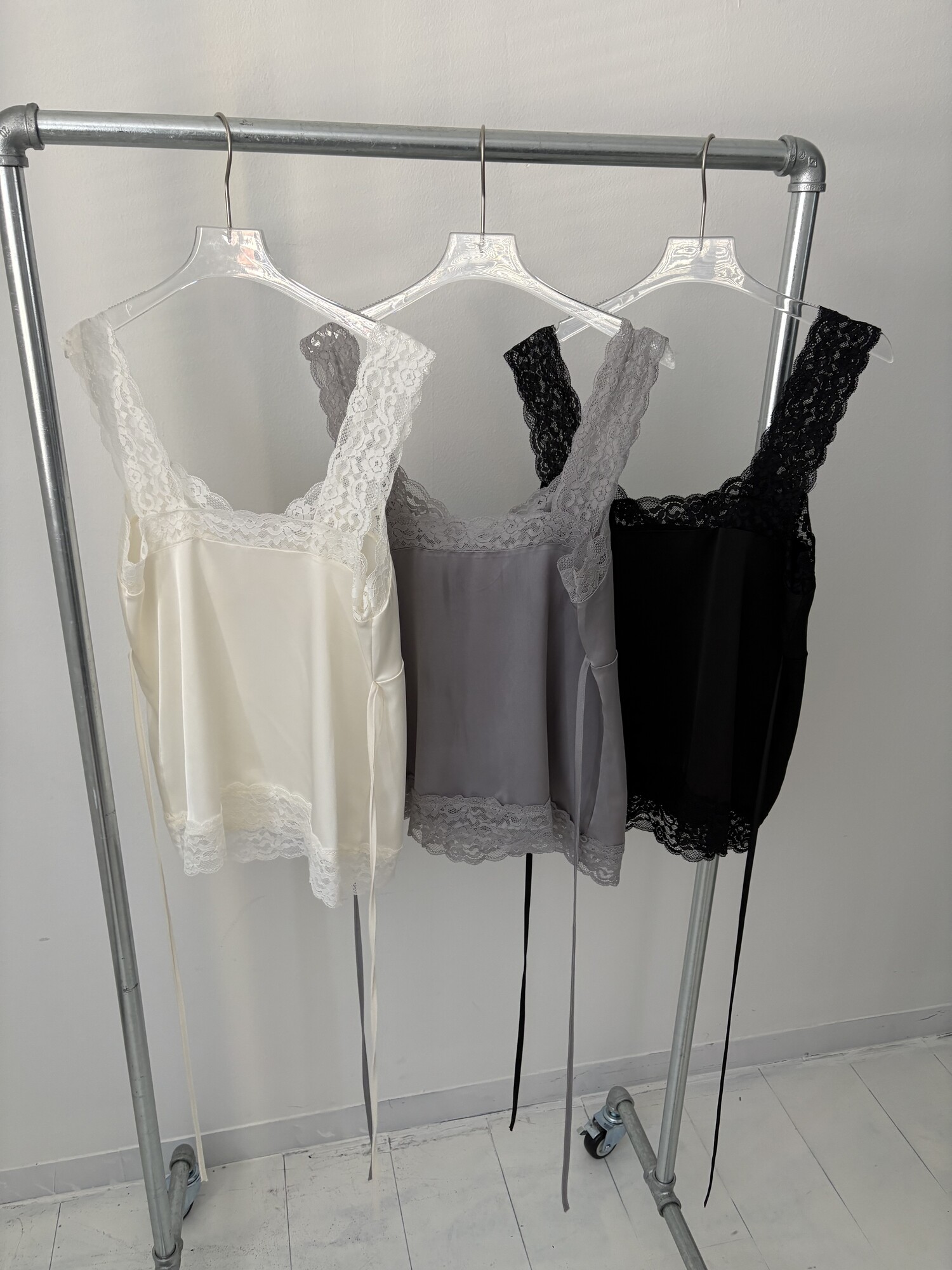 -은은한 광택감이 고급스런 새틴 소재의 레이스 나시에요, 요즘 한참 인기있는 머스트템이죠 ㅎㅎ