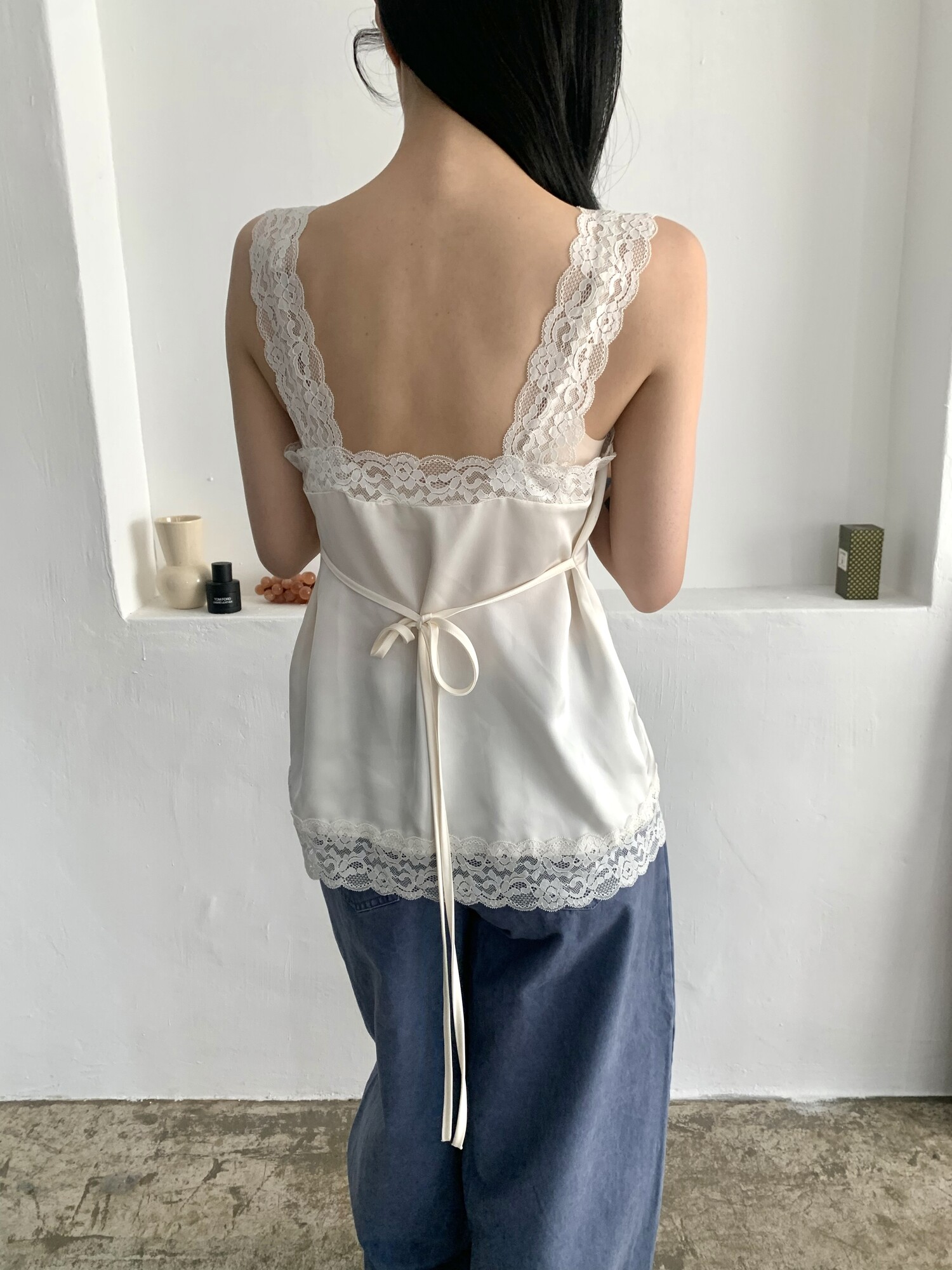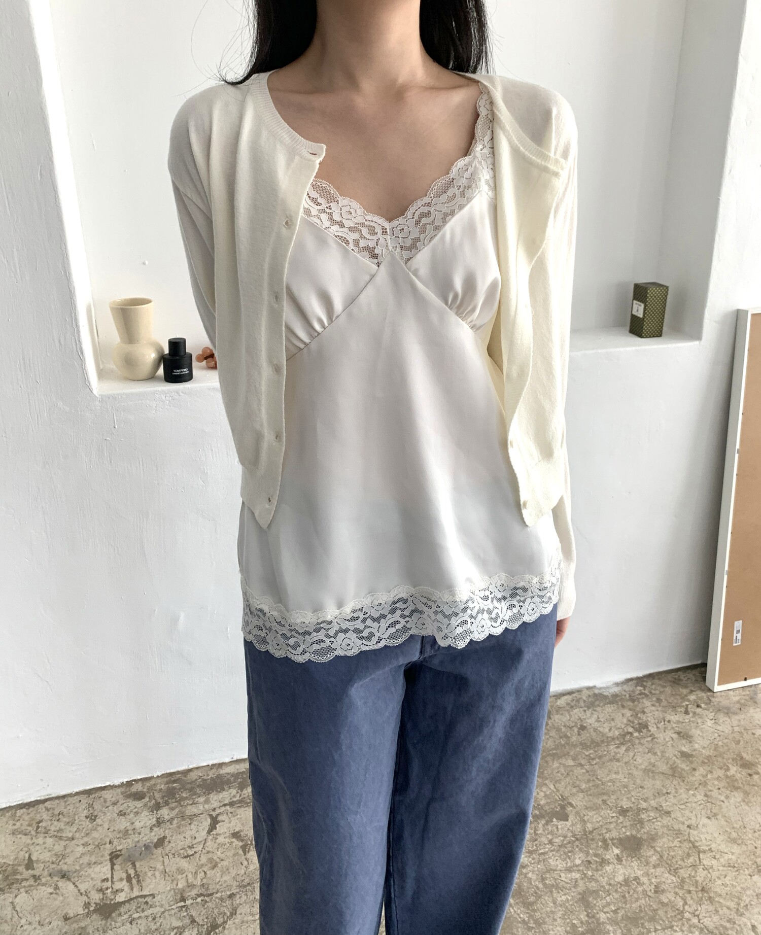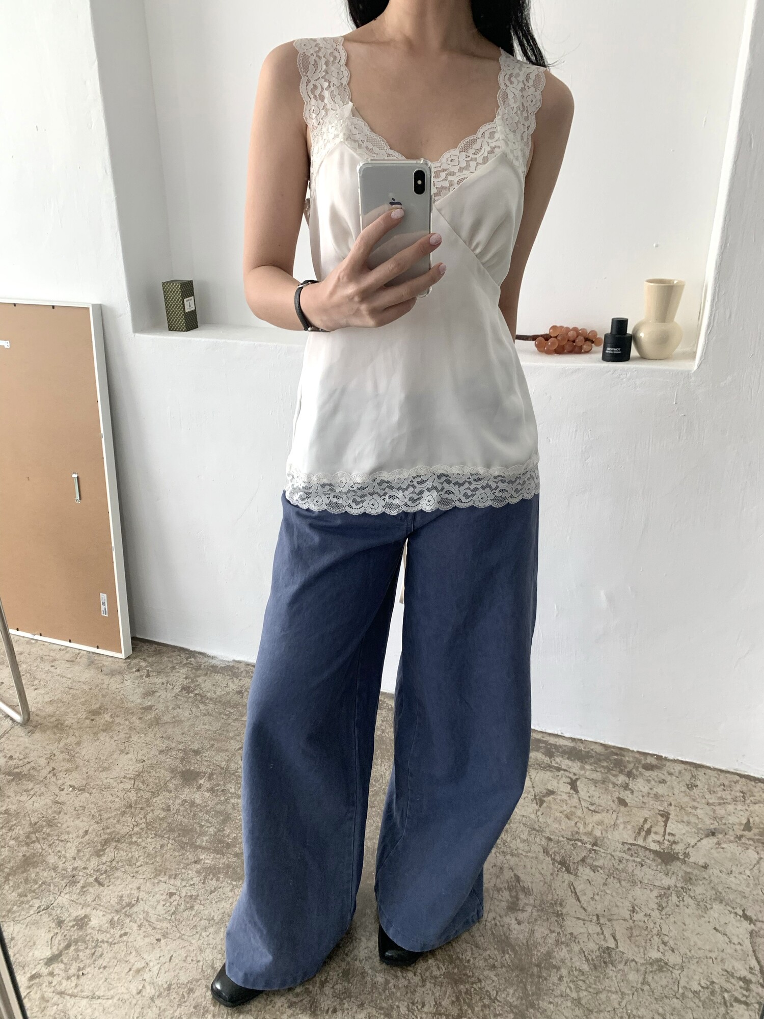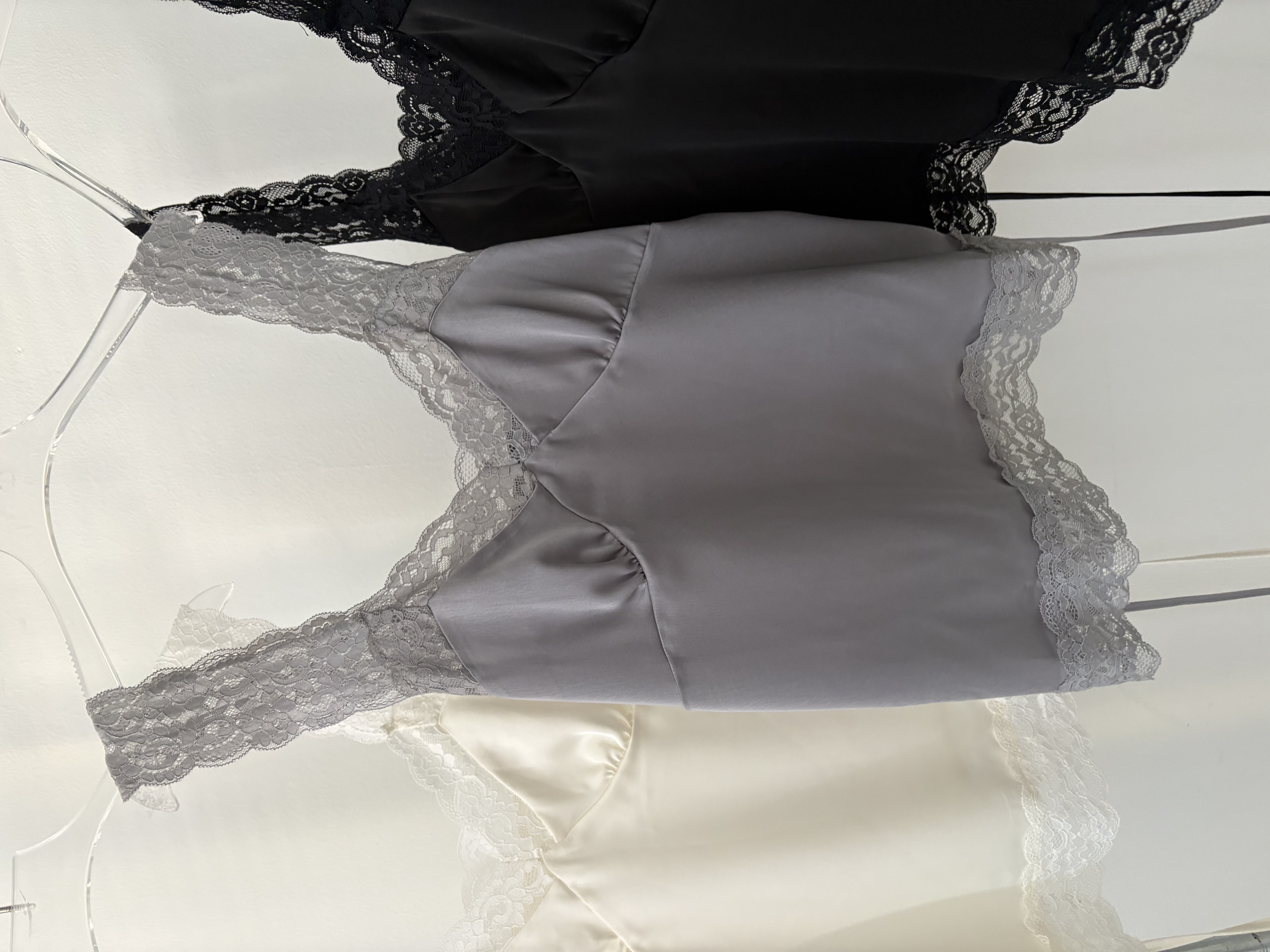 -은은한 광택감이 고급스런 새틴 소재의 레이스 나시에요, 요즘 한참 인기있는 머스트템이죠 ㅎㅎ