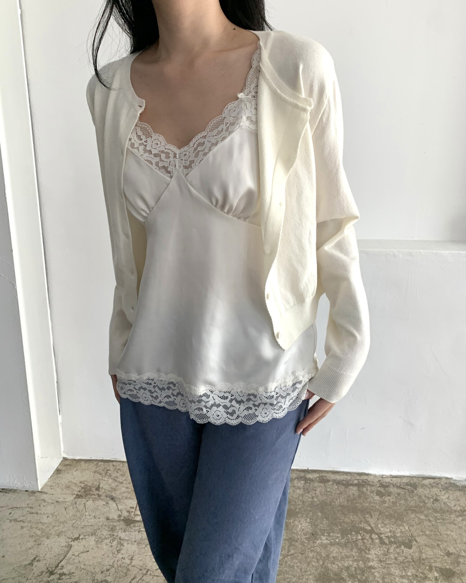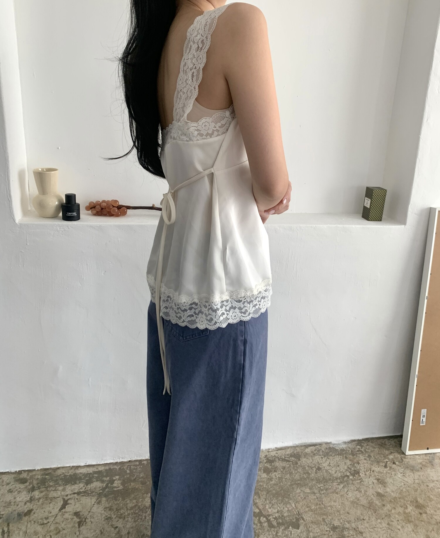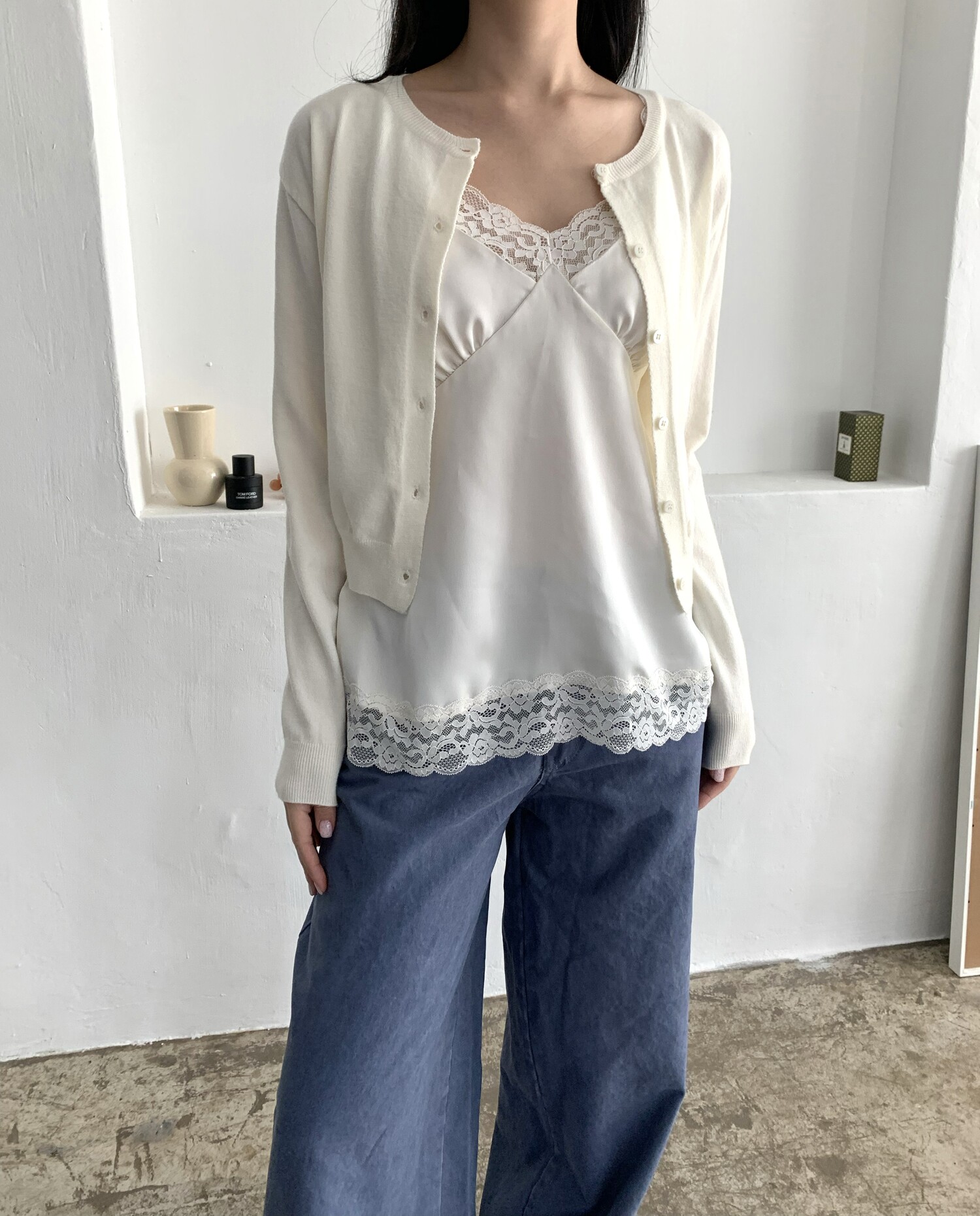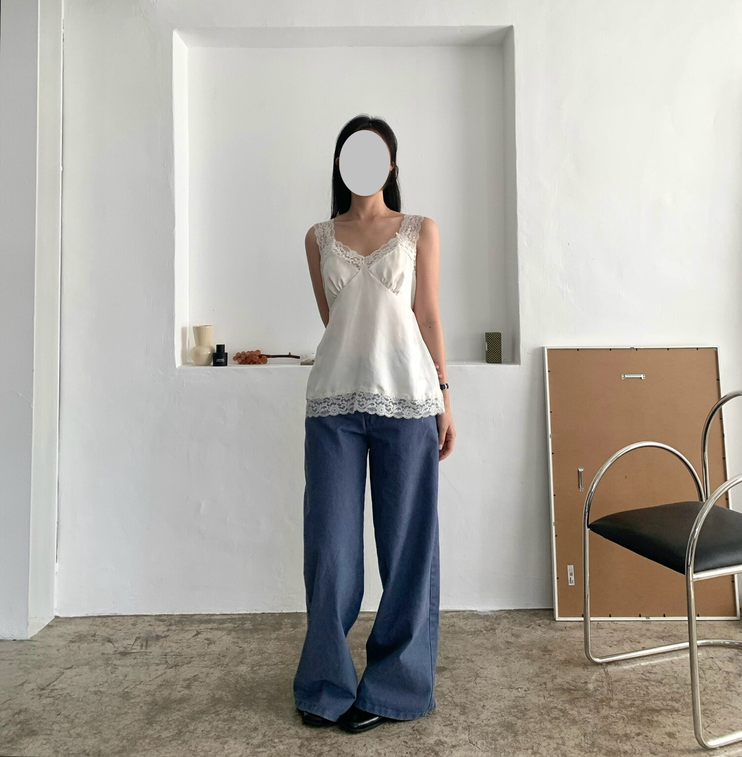-은은한 광택감이 고급스런 새틴 소재의 레이스 나시에요, 요즘 한참 인기있는 머스트템이죠 ㅎㅎ