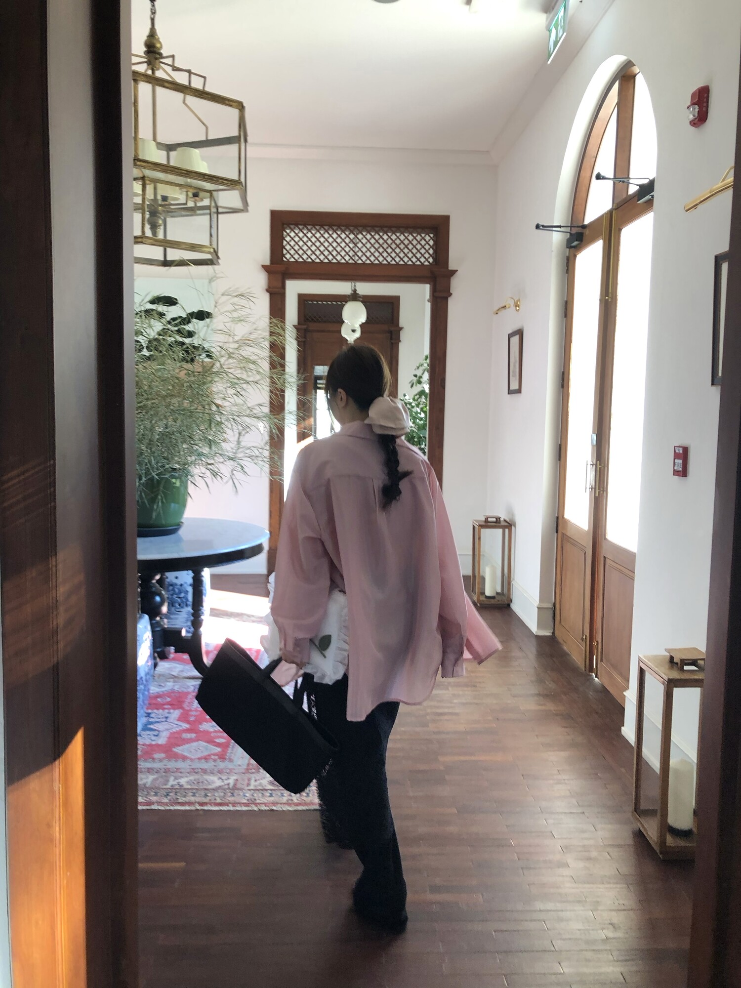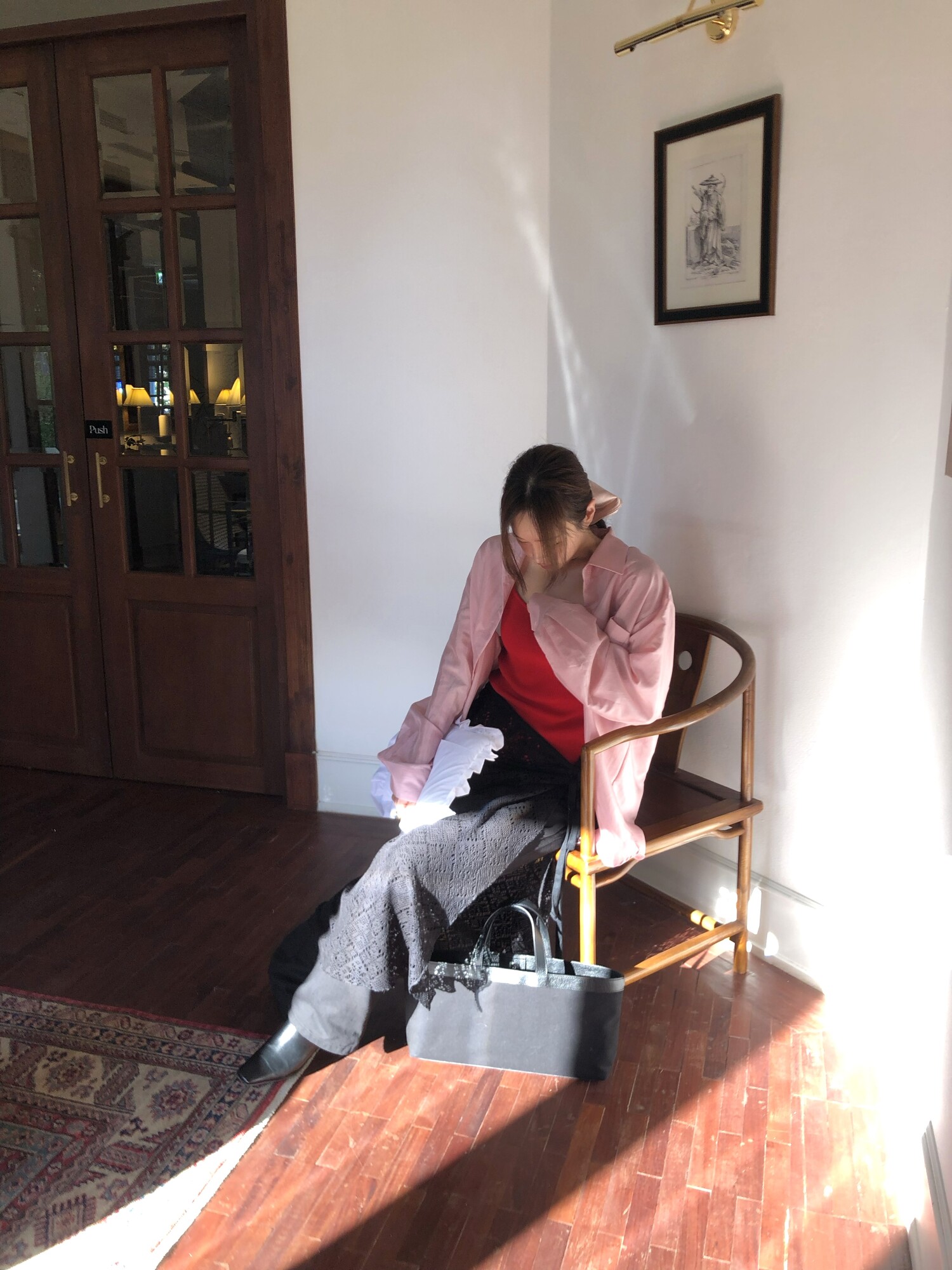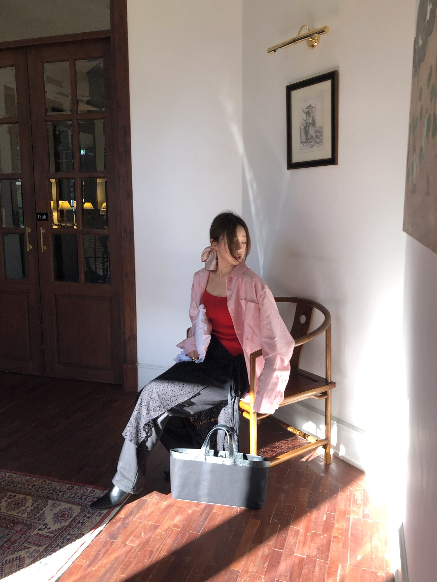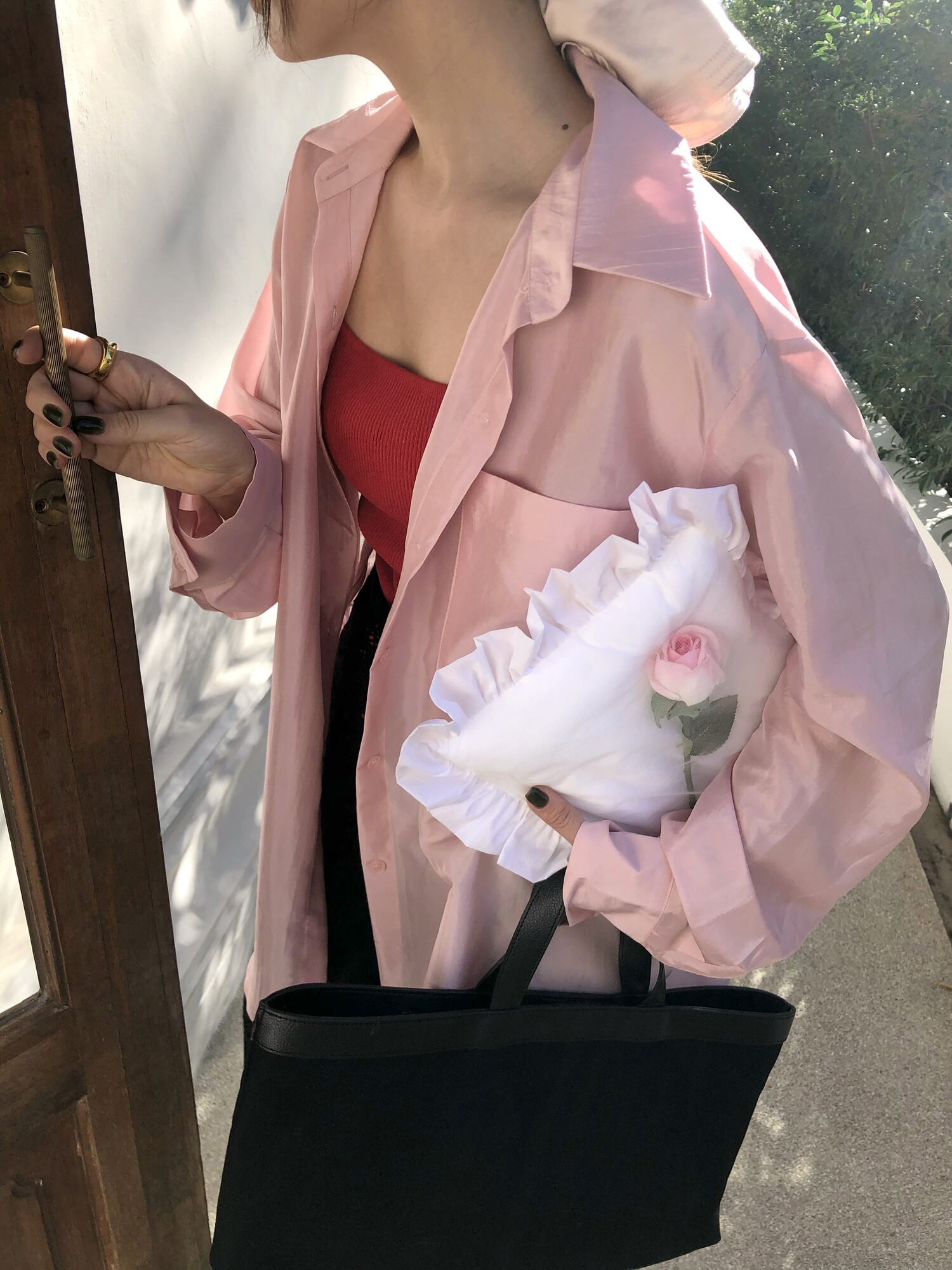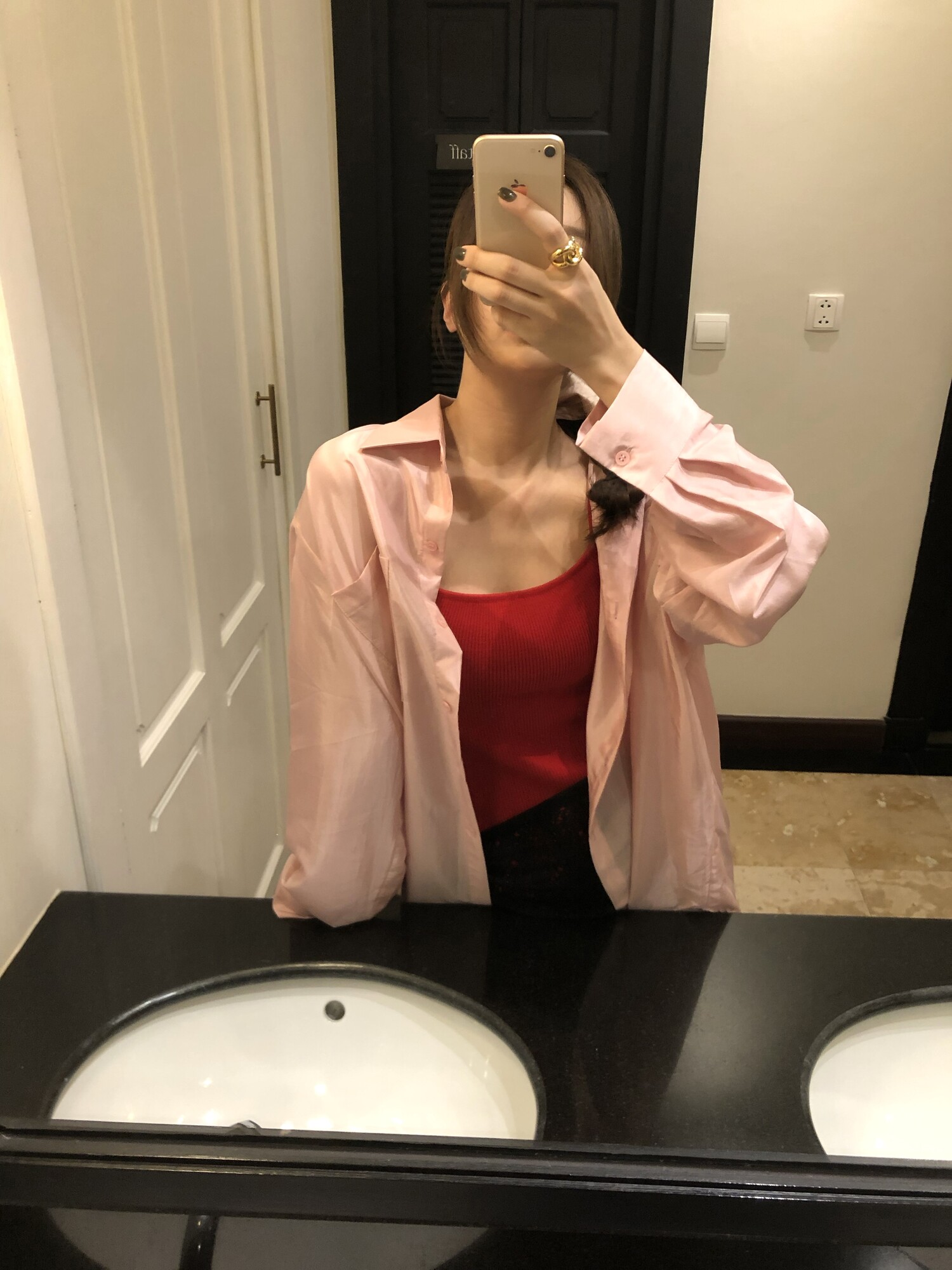 pink beige-실제컬러감과 가깝습니다. 코랄기 없는 셔츠 핑크와의 차이감 확인하시어 구매 부탁드립니다.