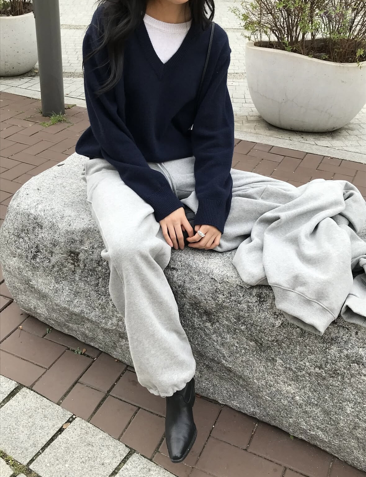 navy-레이어드 안쪽 니트 연소라 컬러에 가깝습니다.