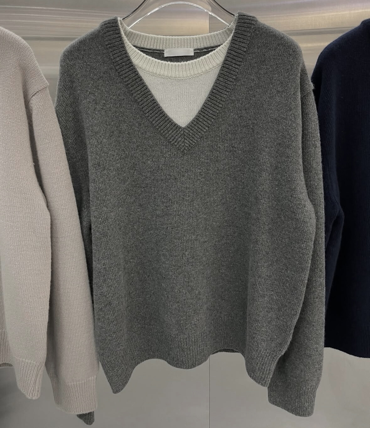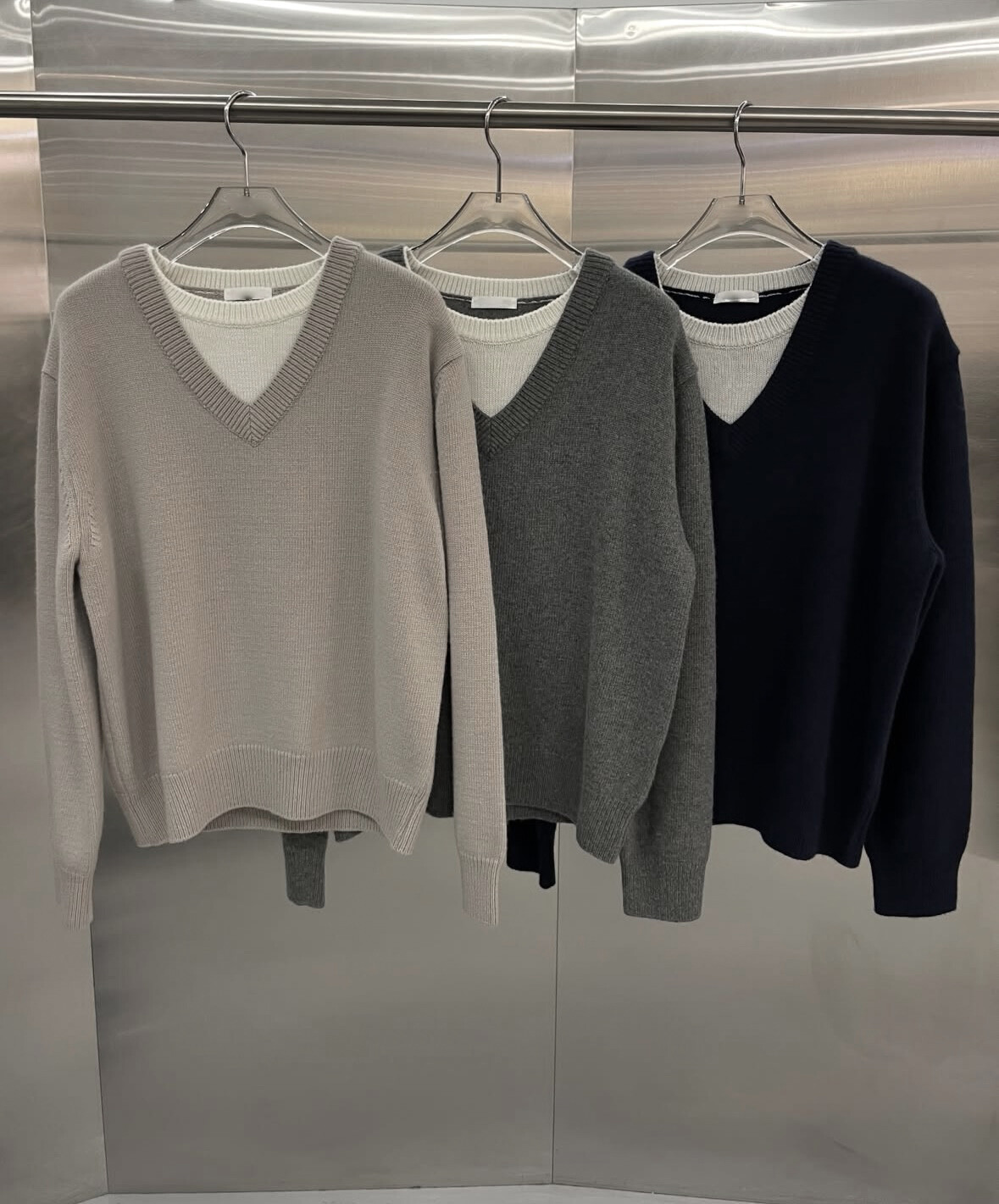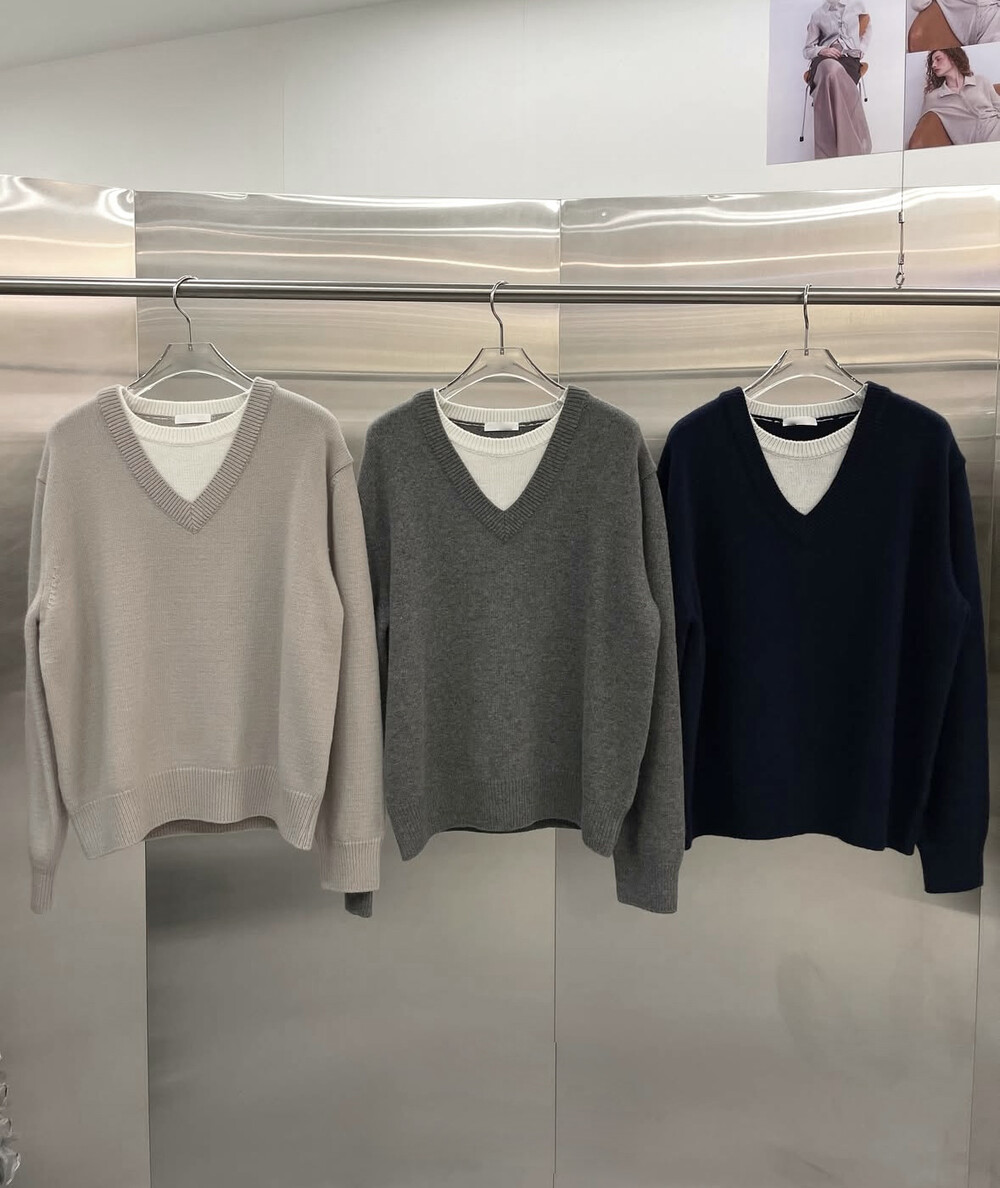 Lambswool v layered knit-3color