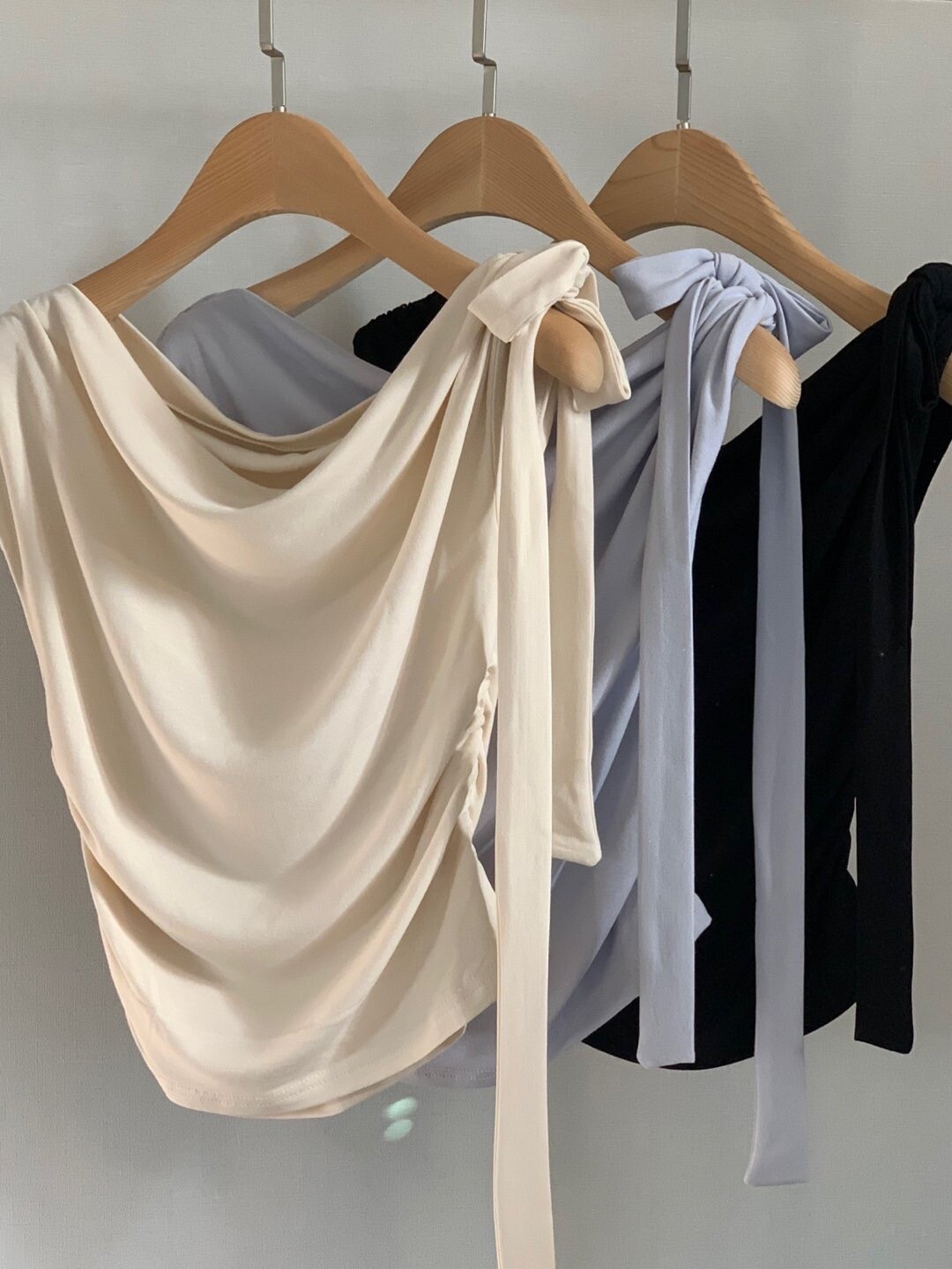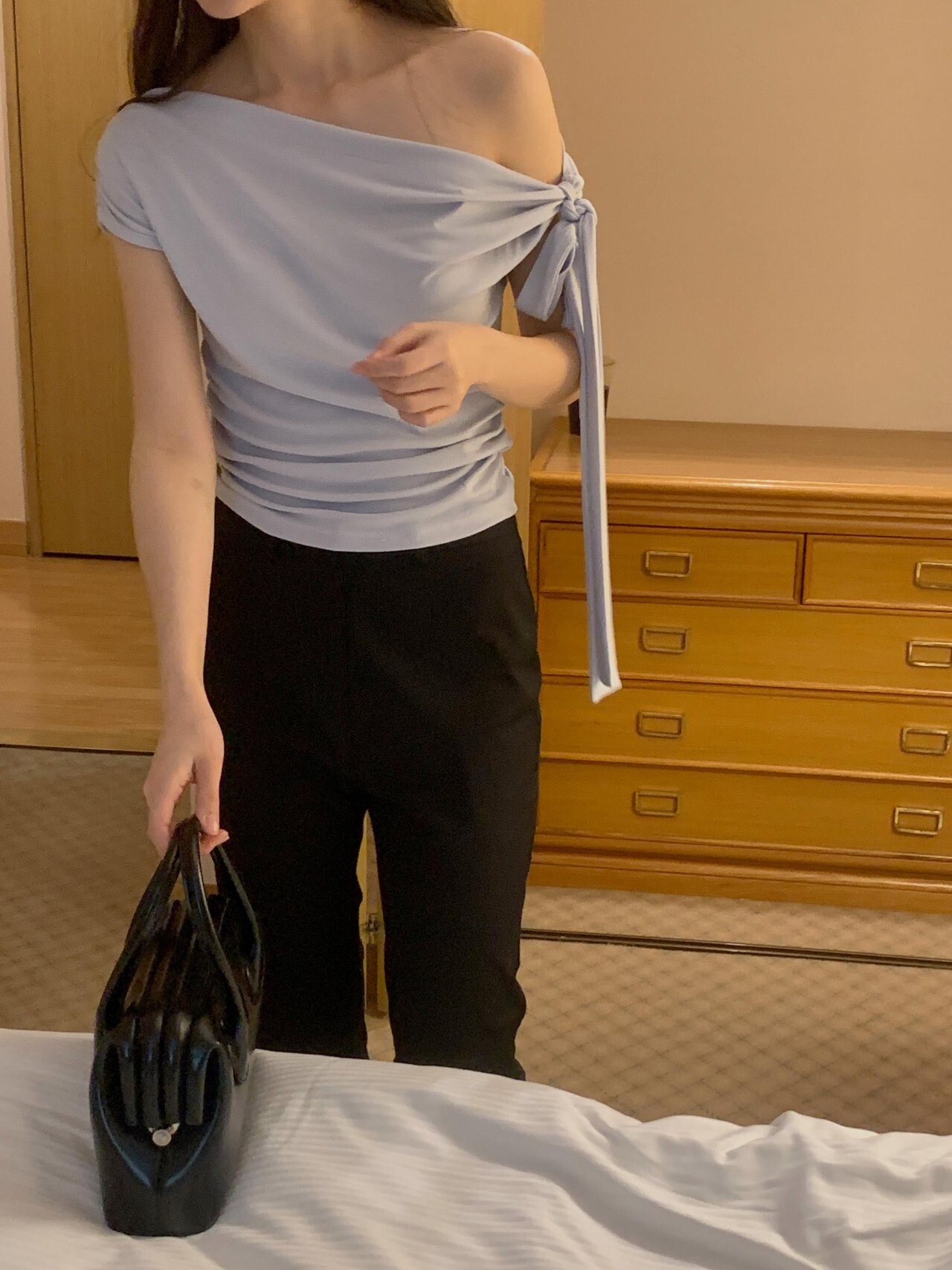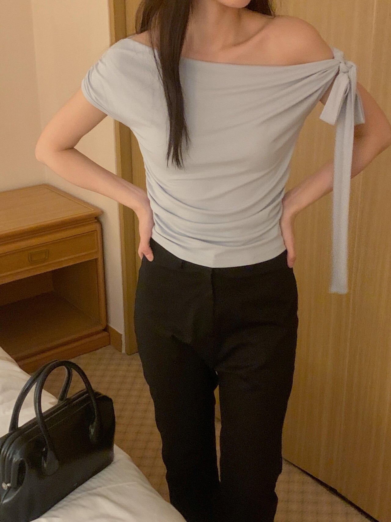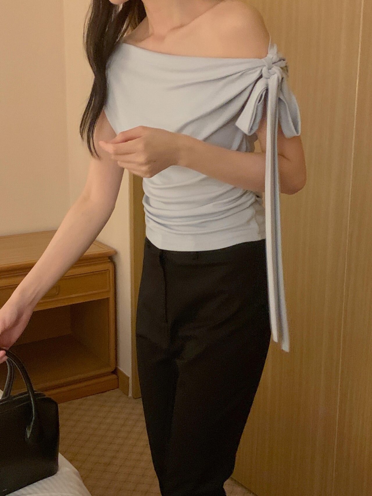 Boat neck ribbon top-2color