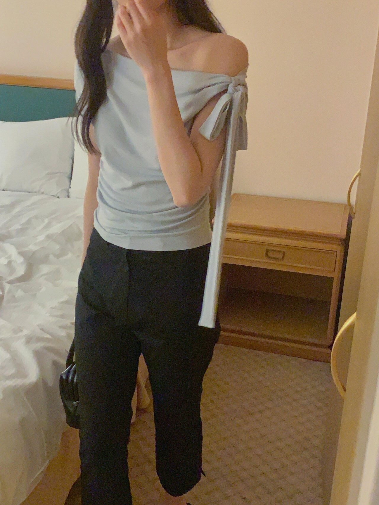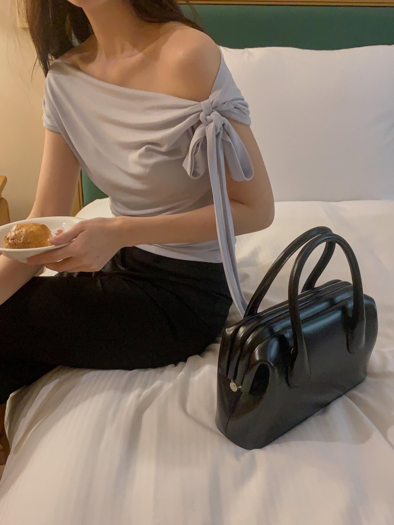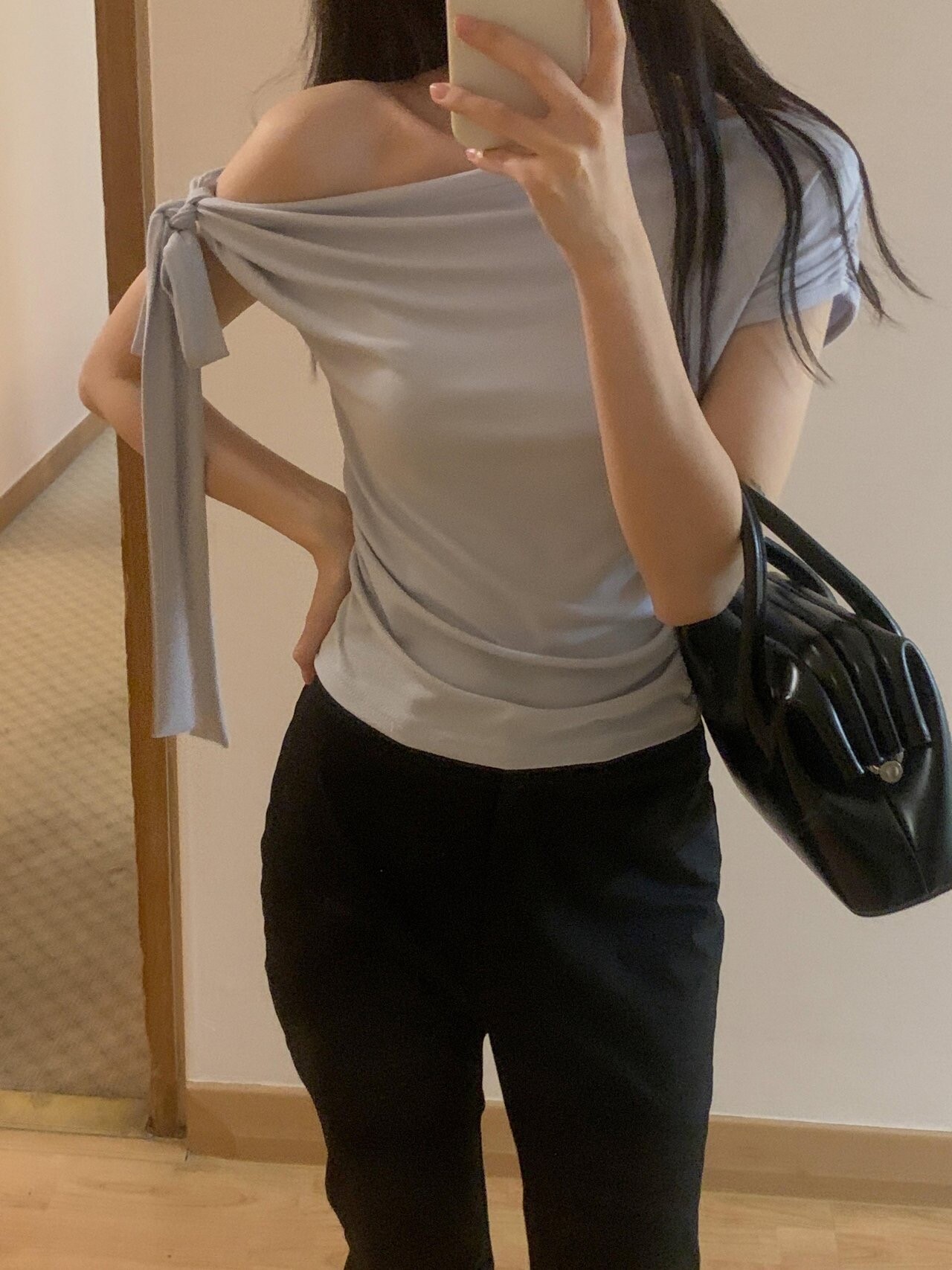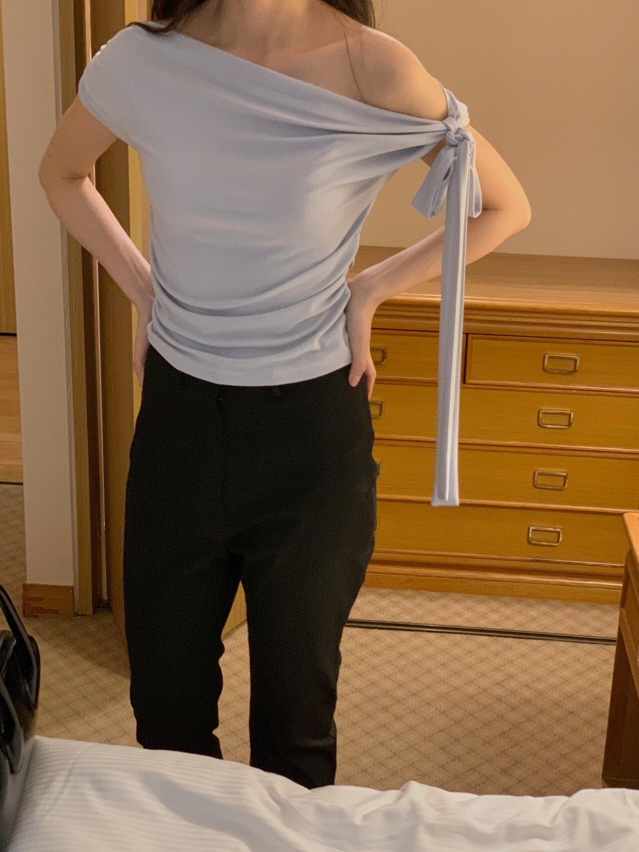 Boat neck ribbon top-2color
