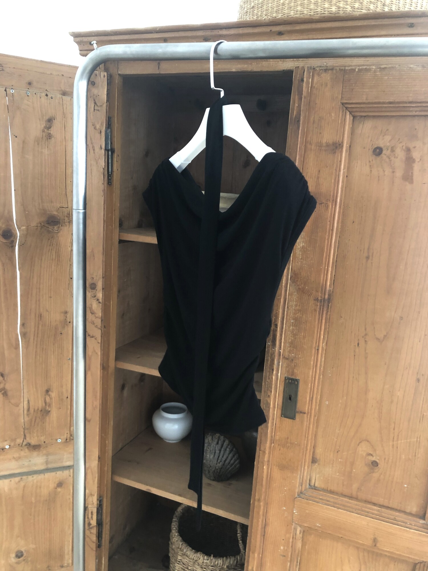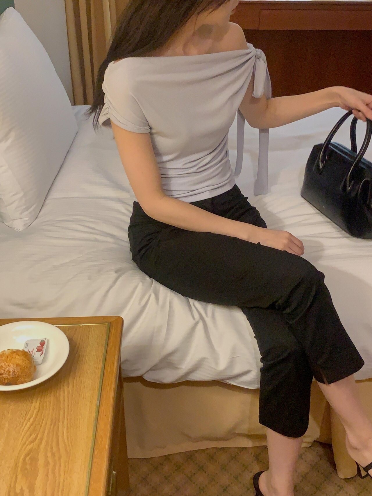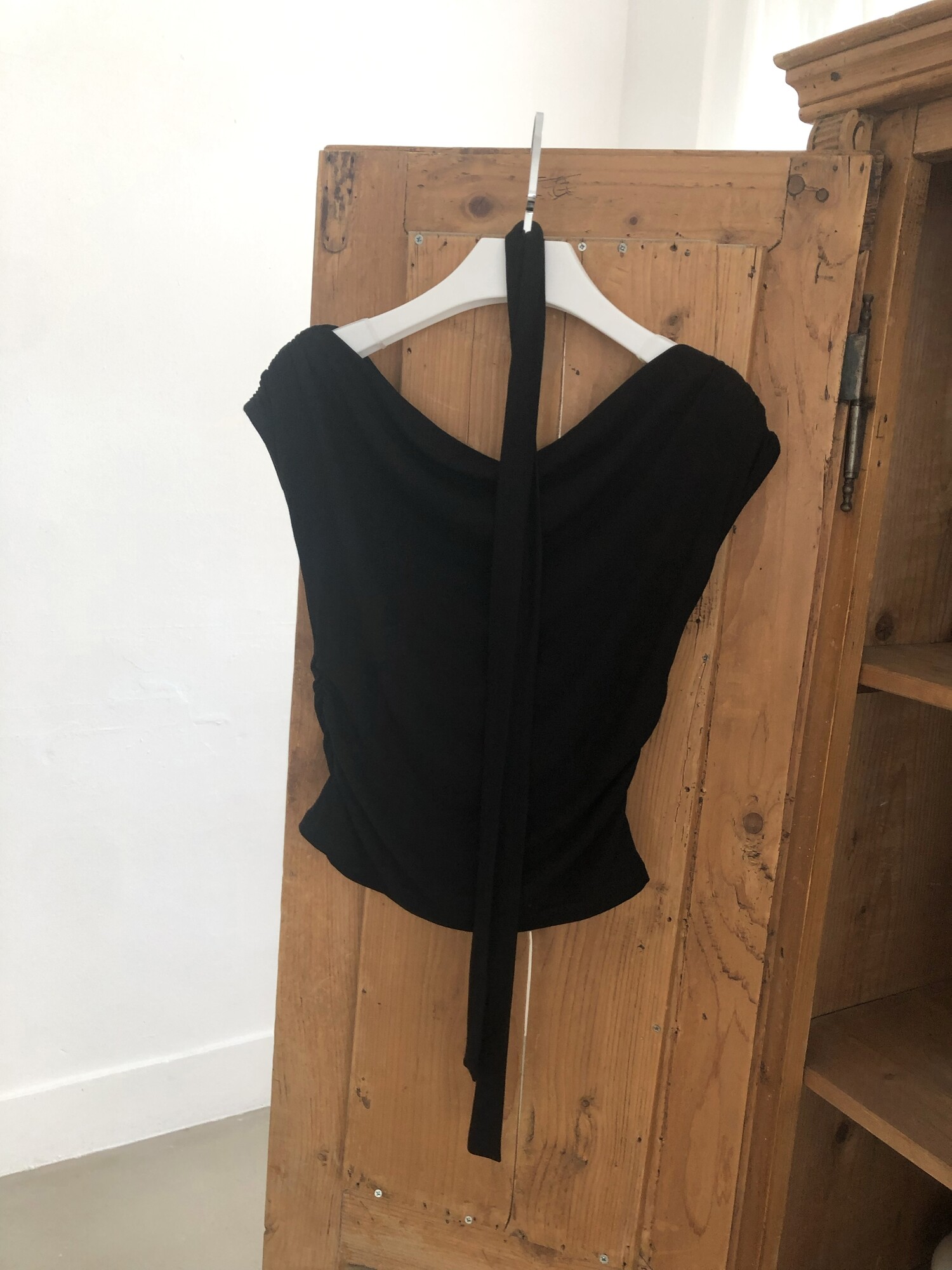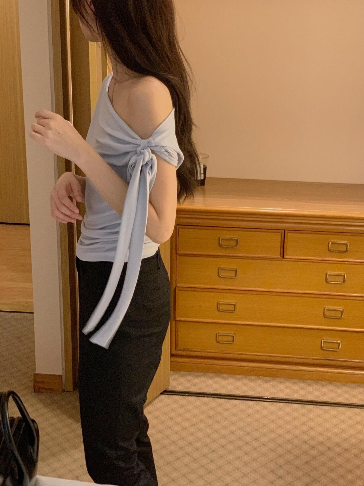 Boat neck ribbon top-2color