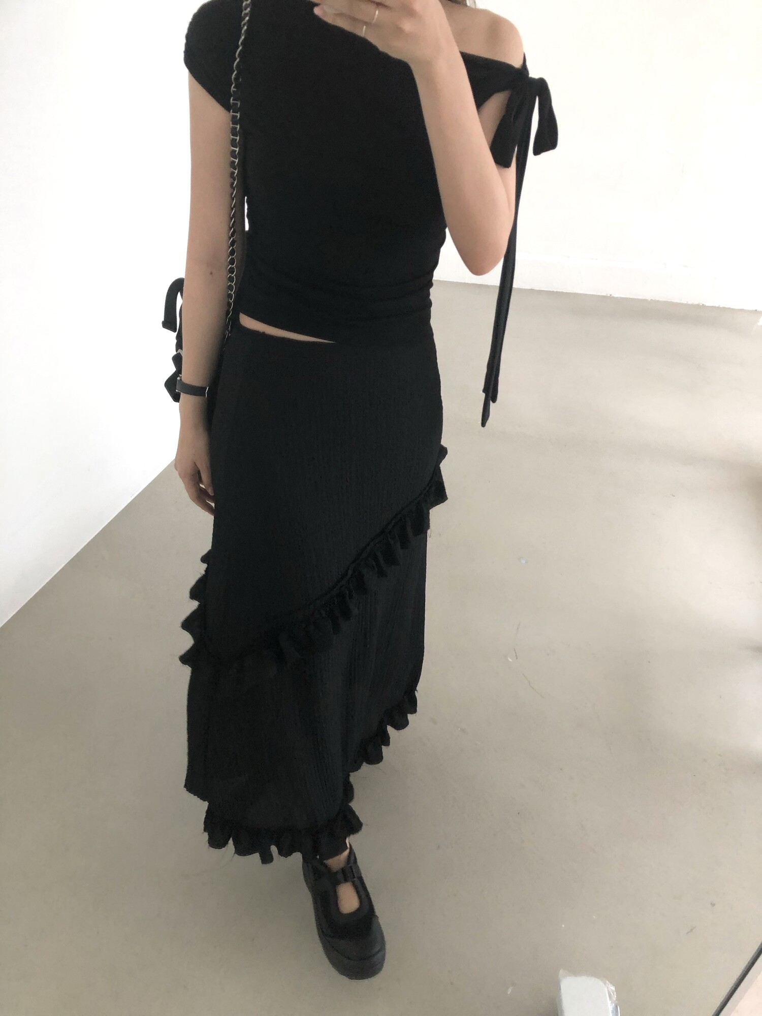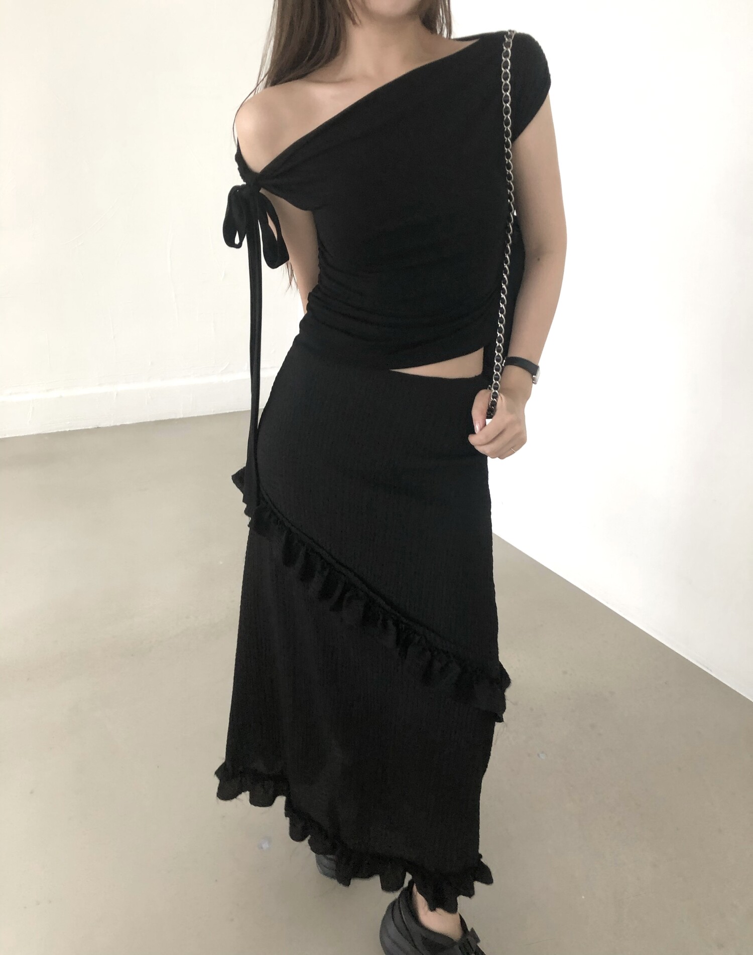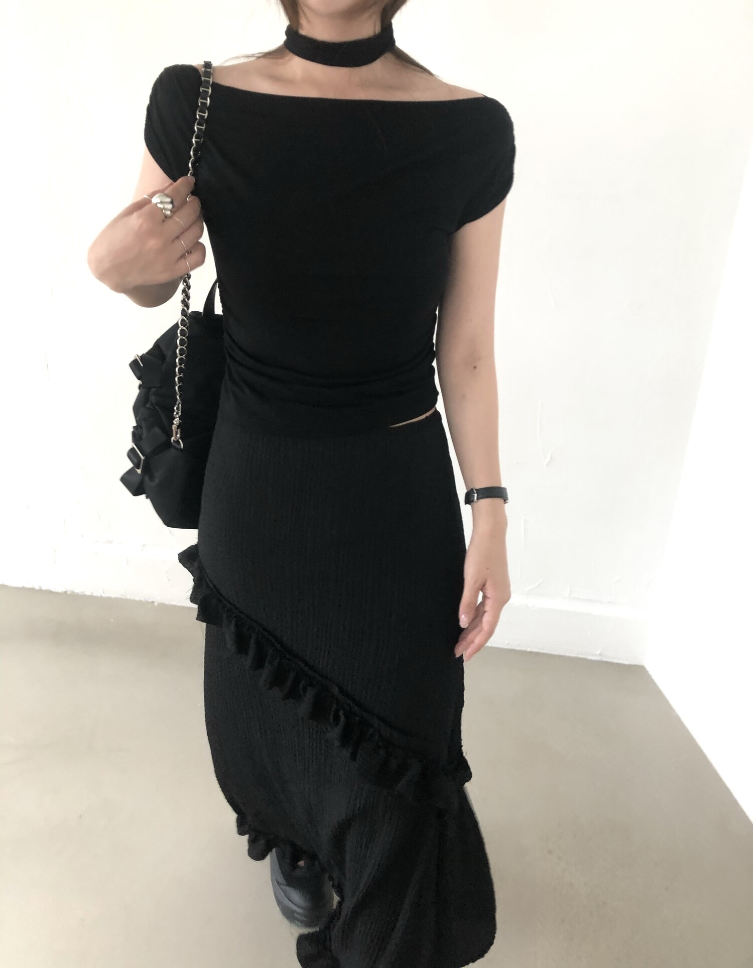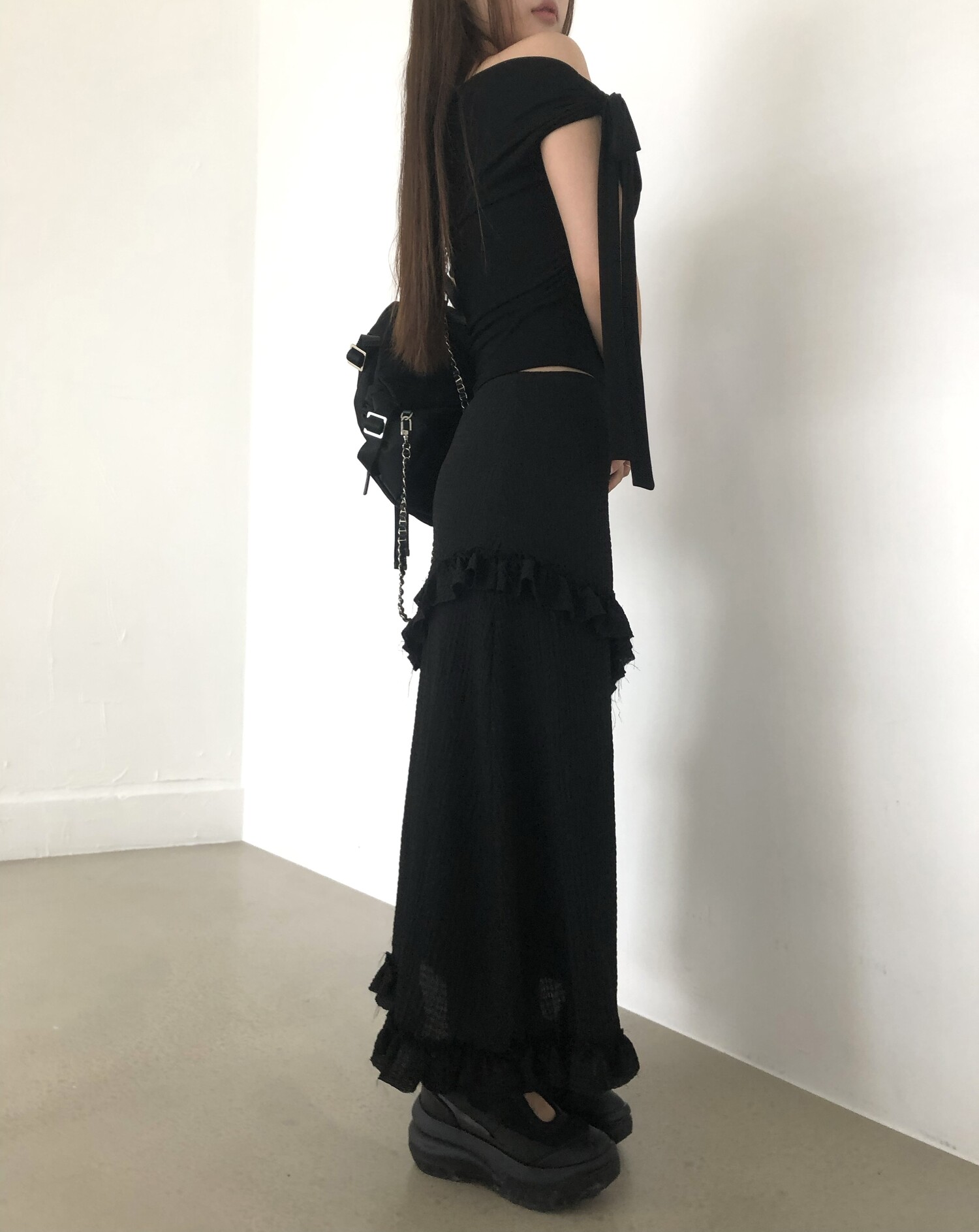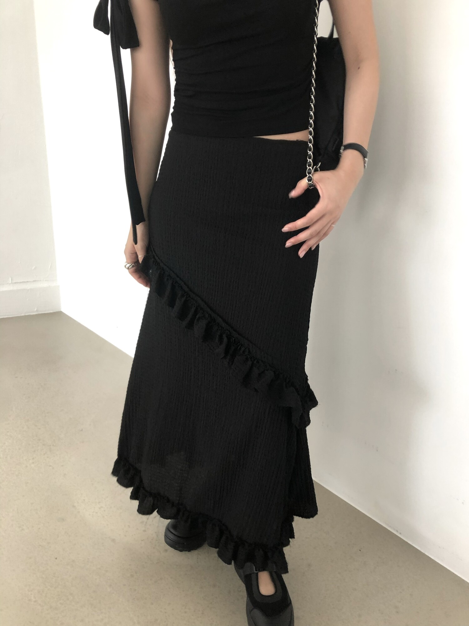 블랙 롱 스커트는 거래처 품절된 상품입니다. 스타일링 참고만 부탁드립니다.