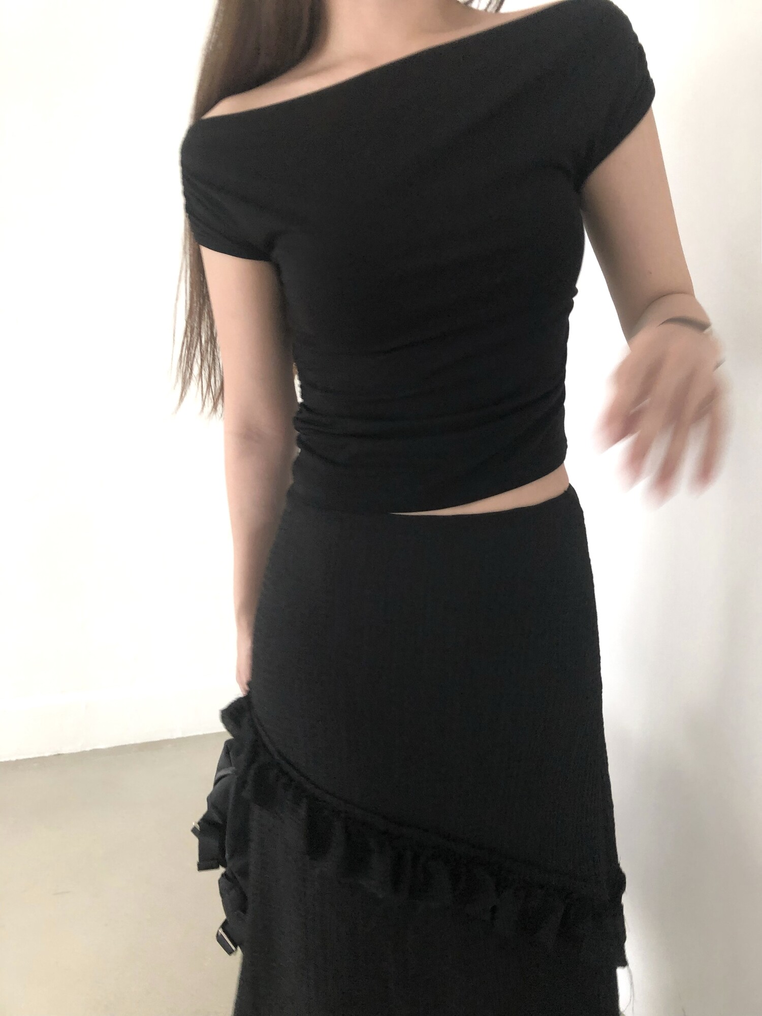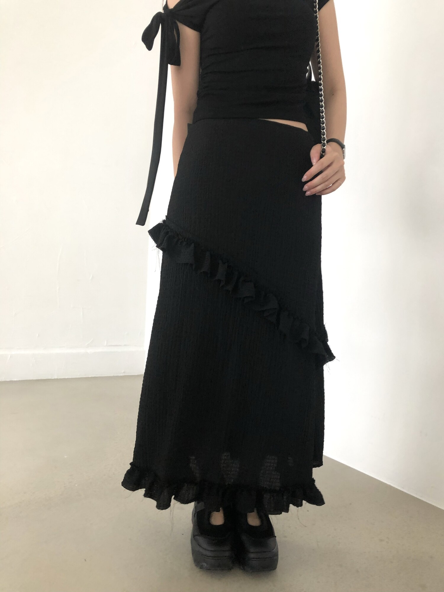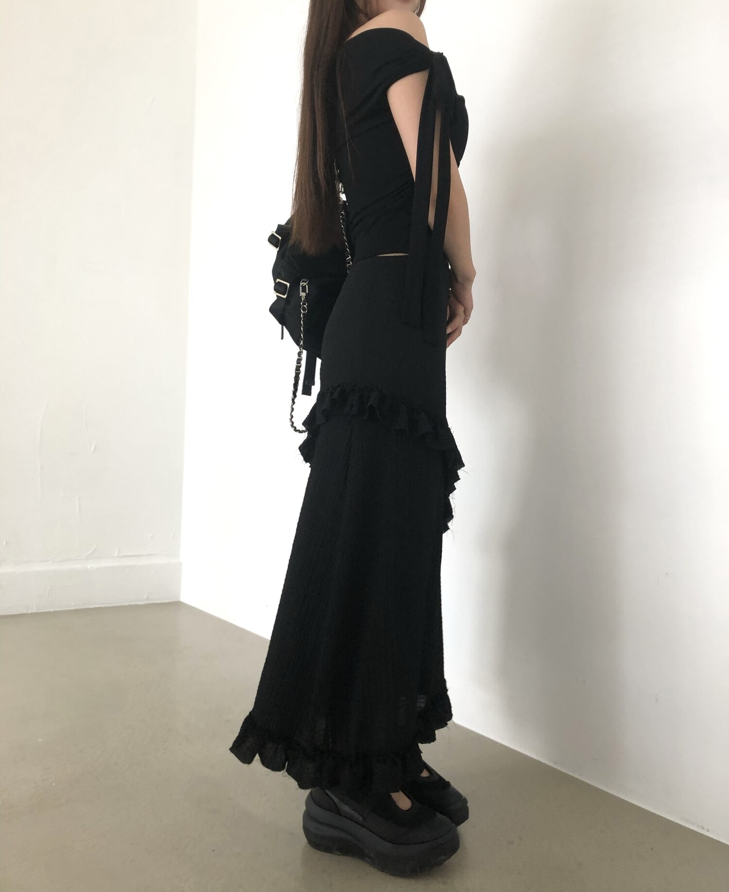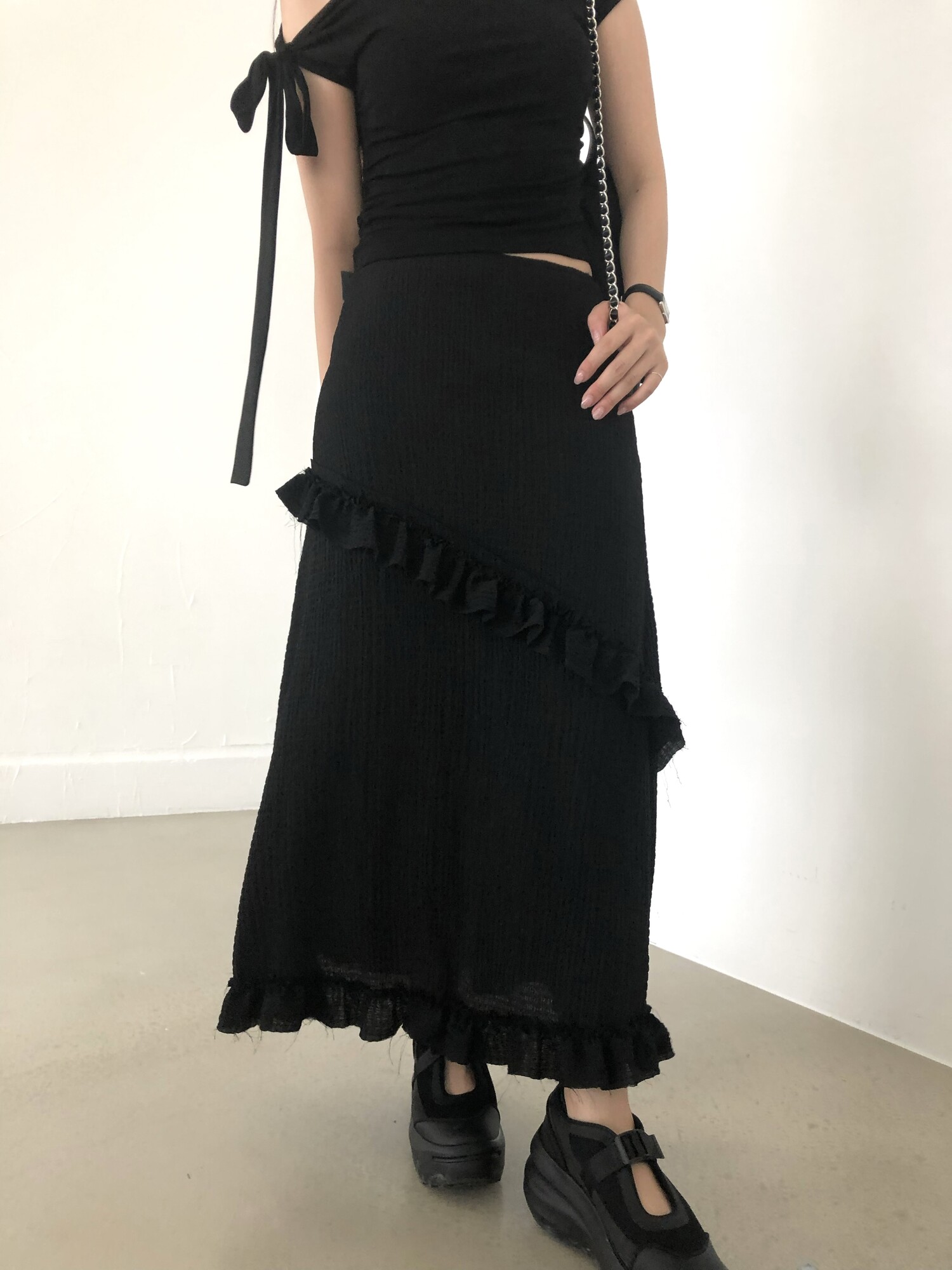 블랙 롱 스커트는 거래처 품절된 상품입니다. 스타일링 참고만 부탁드립니다.