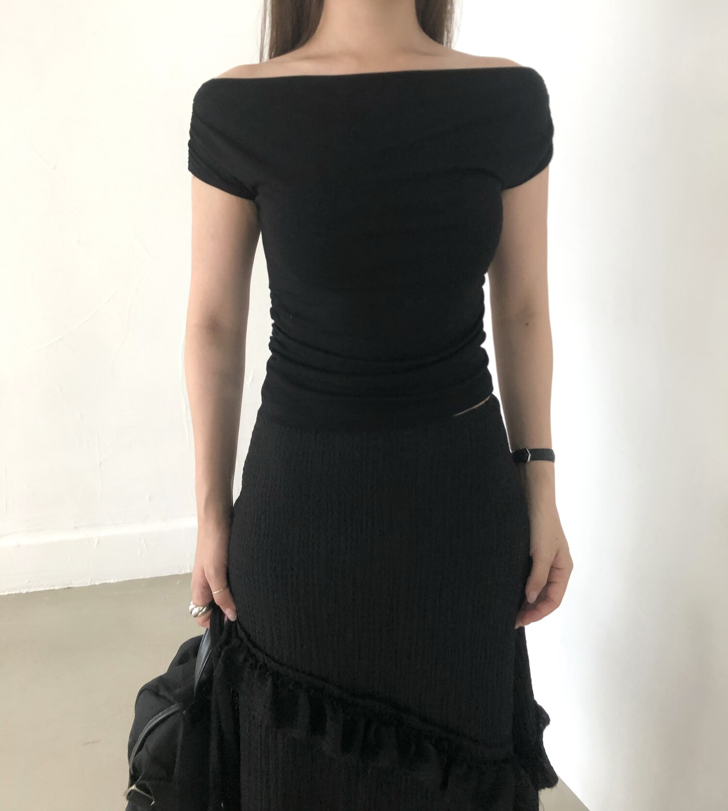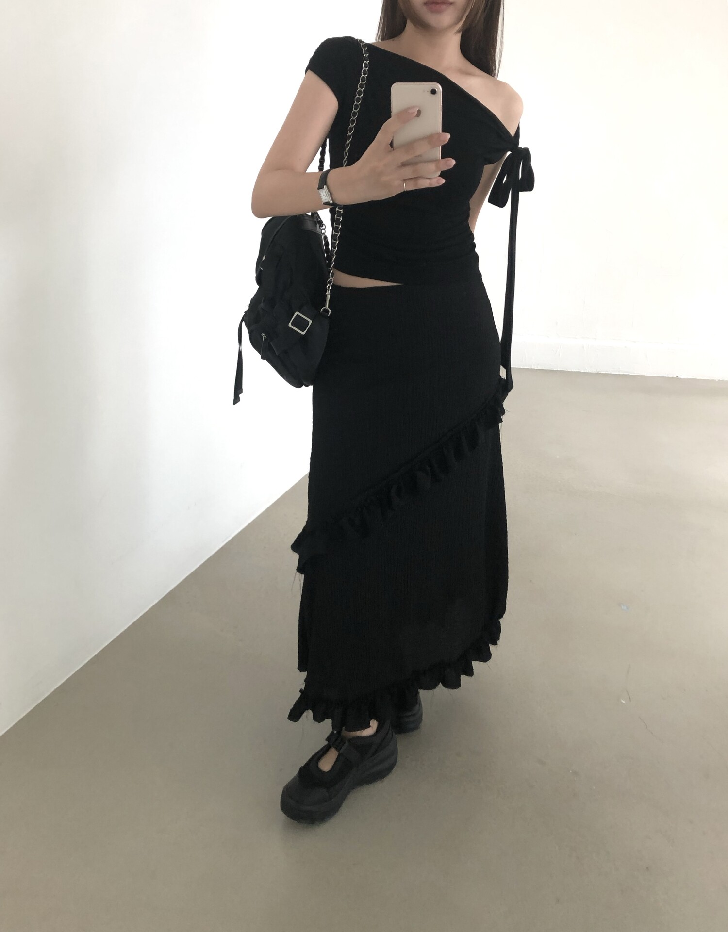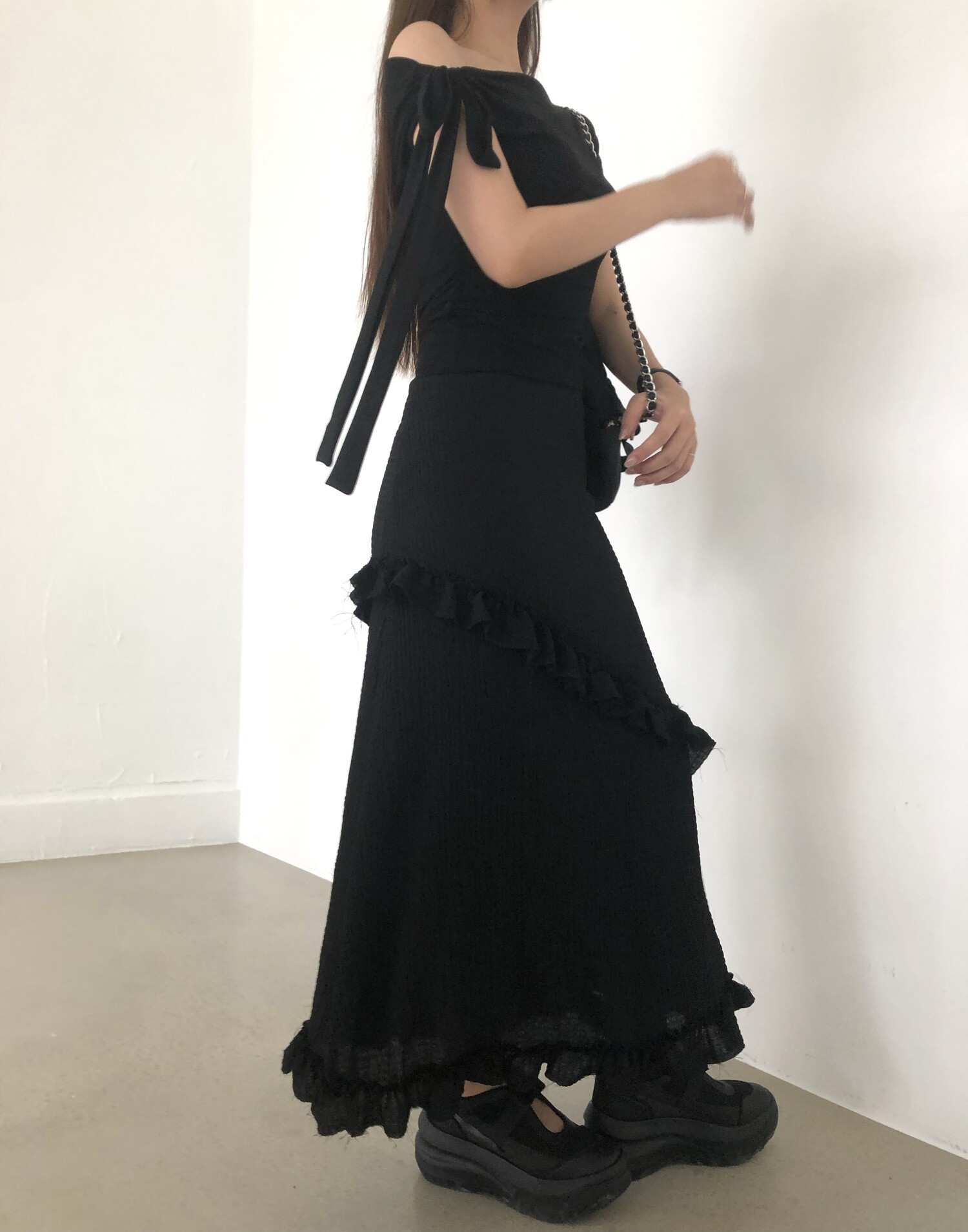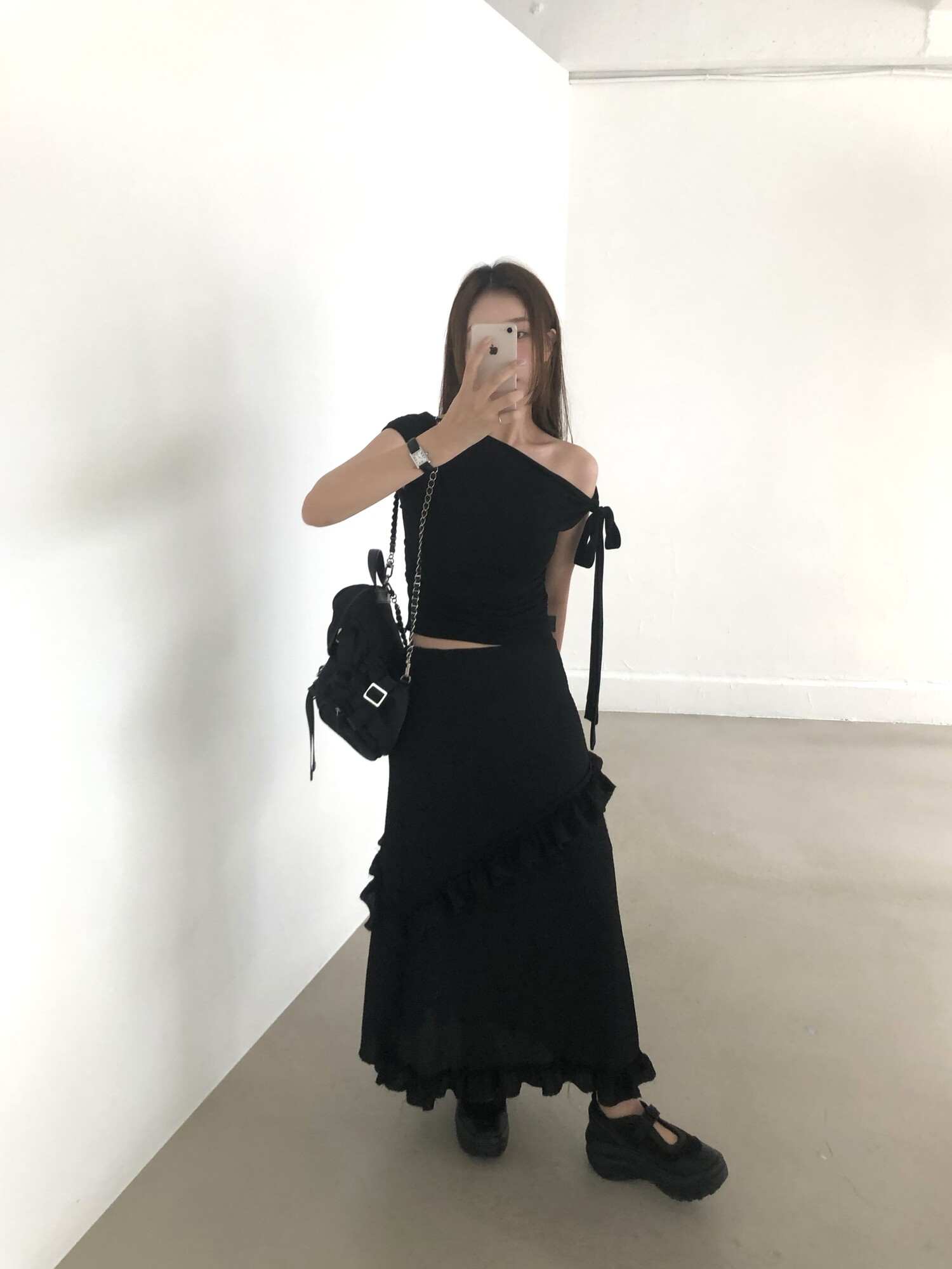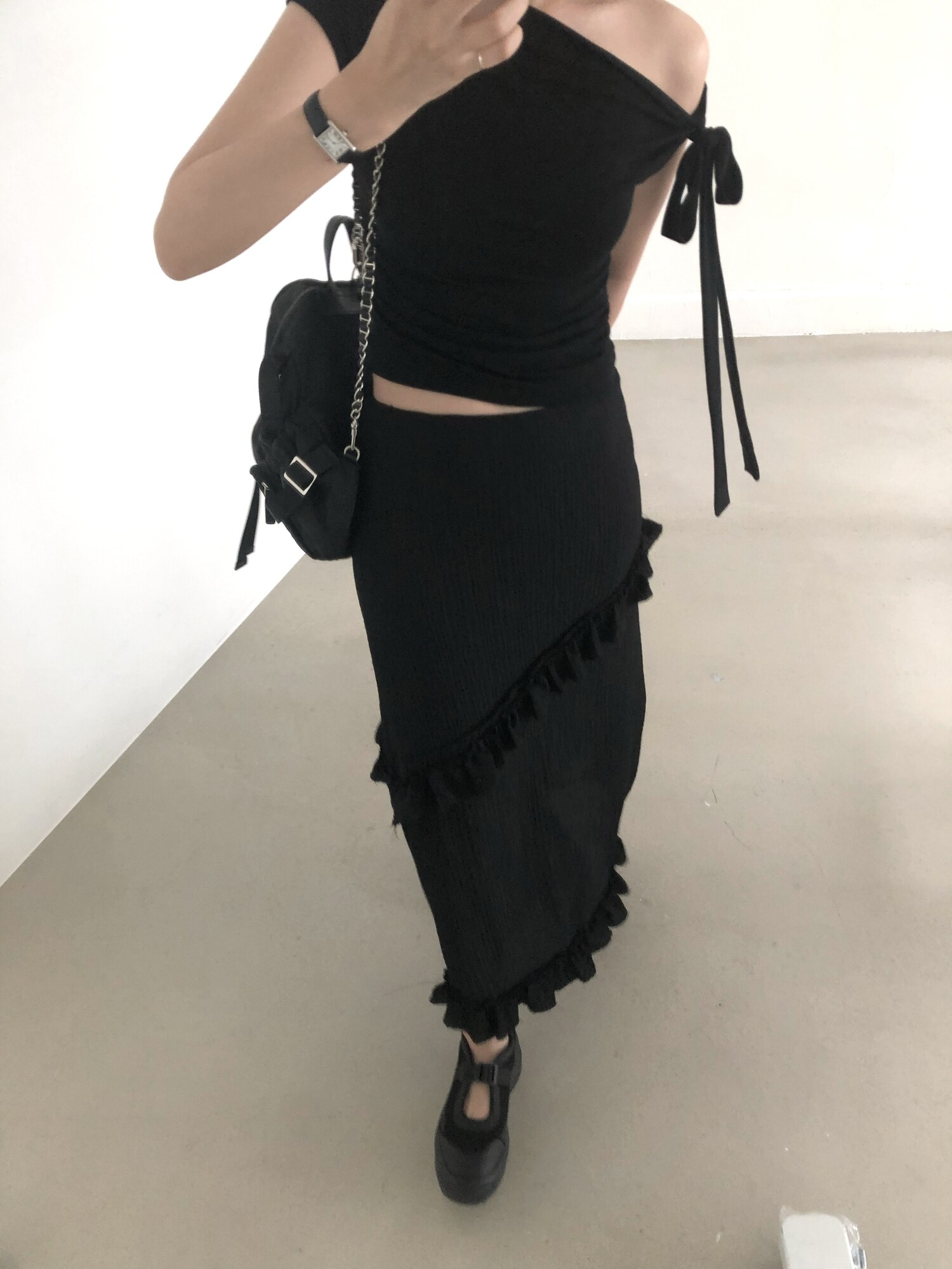 블랙 롱 스커트는 거래처 품절된 상품입니다. 스타일링 참고만 부탁드립니다.