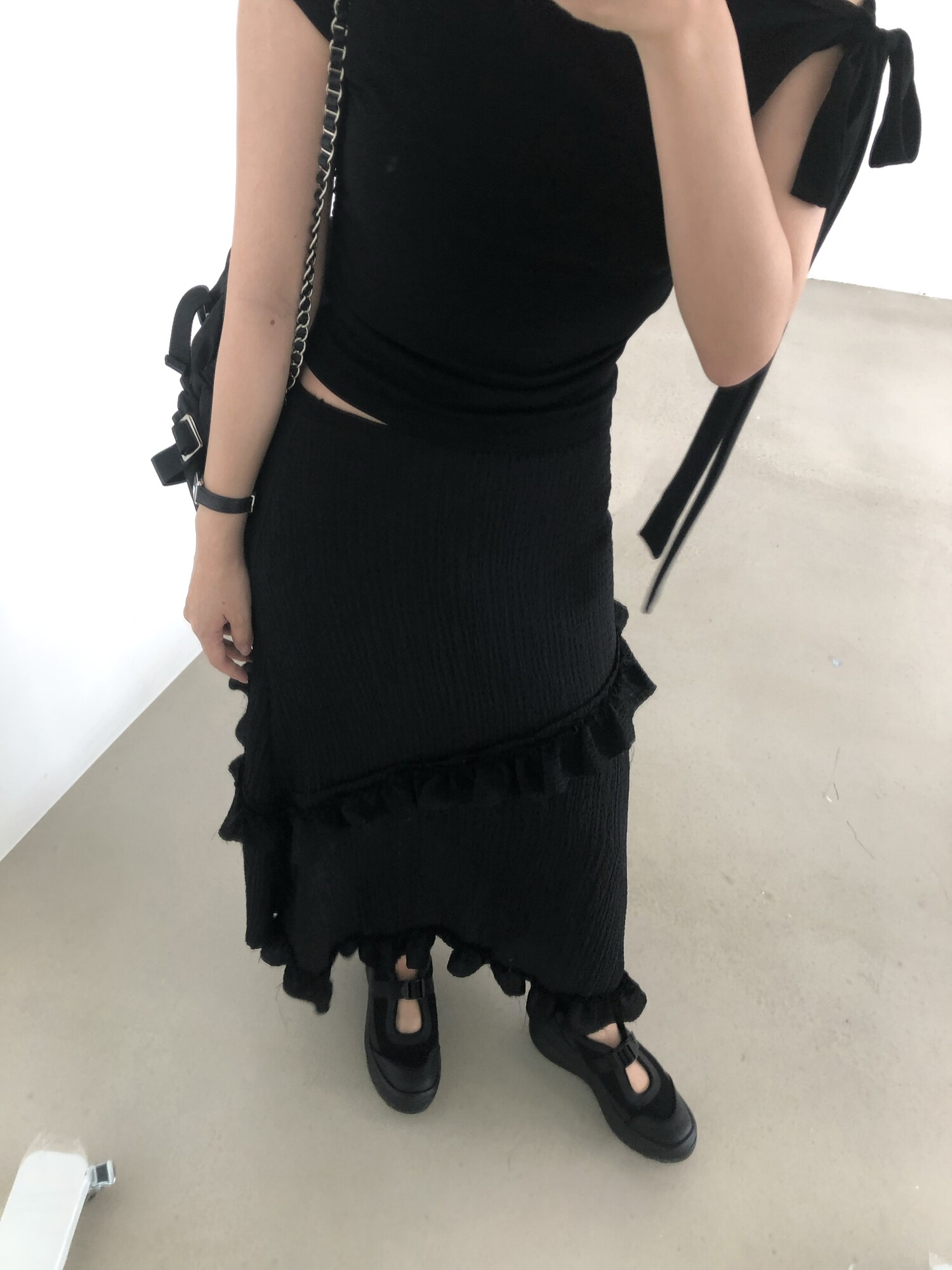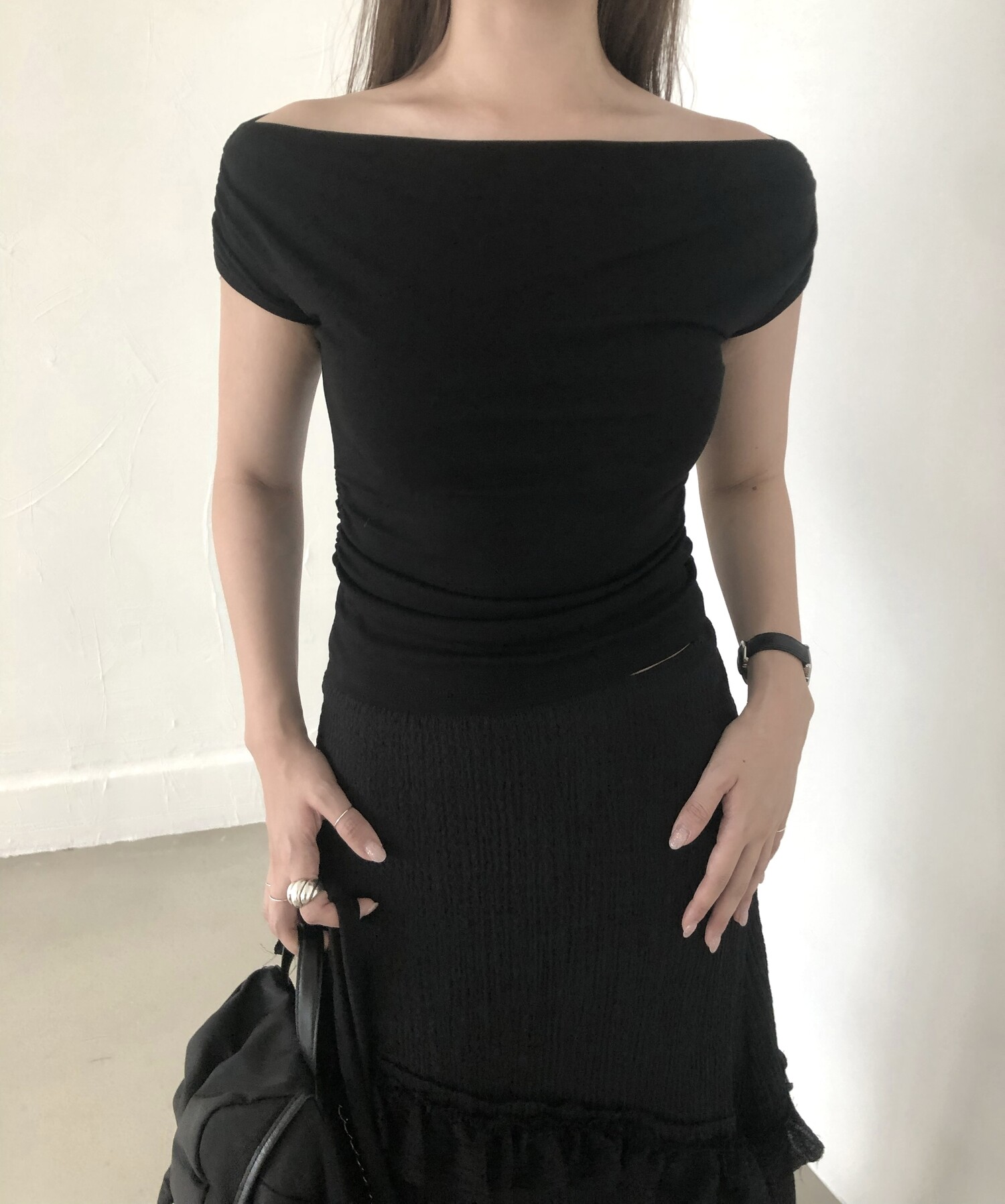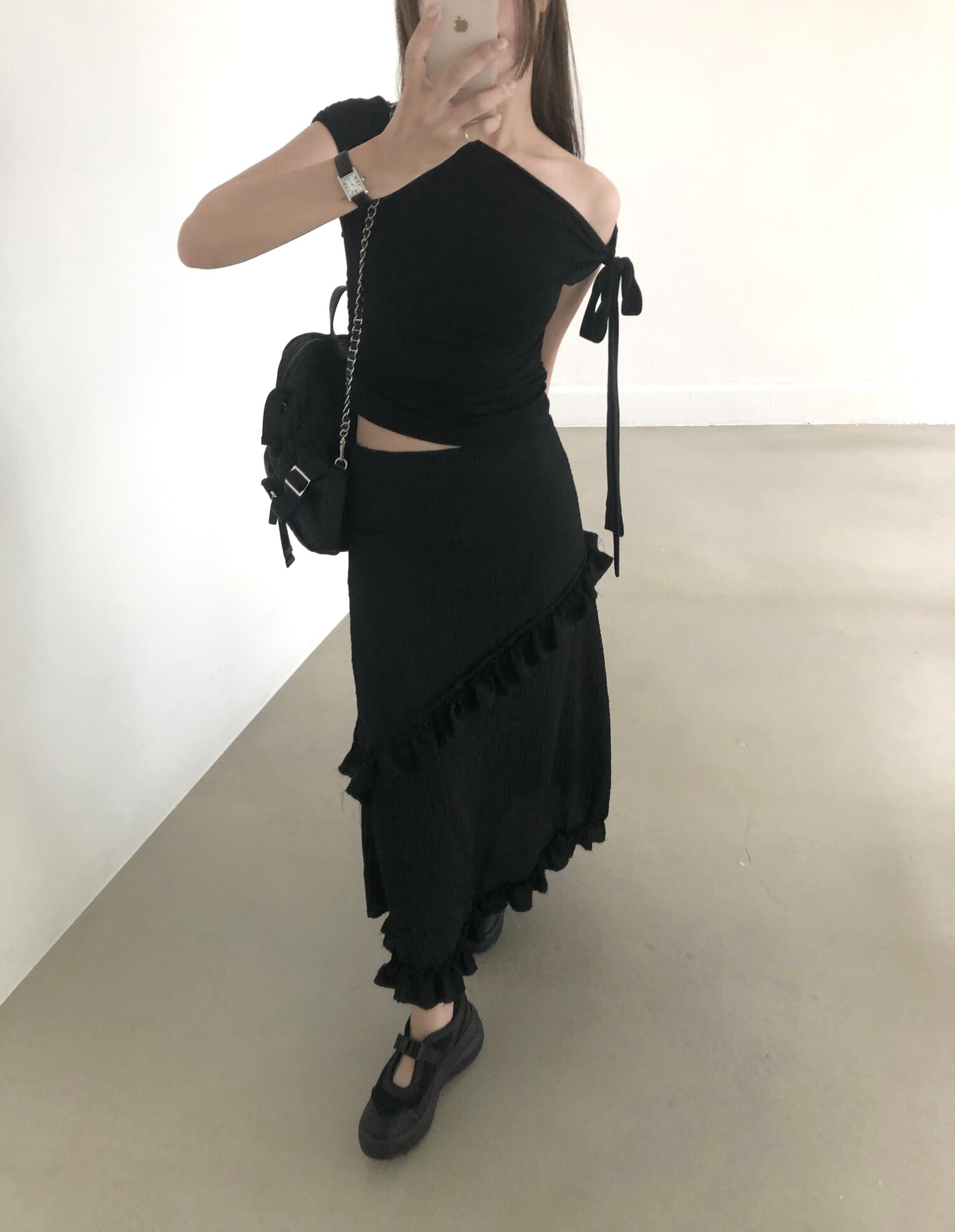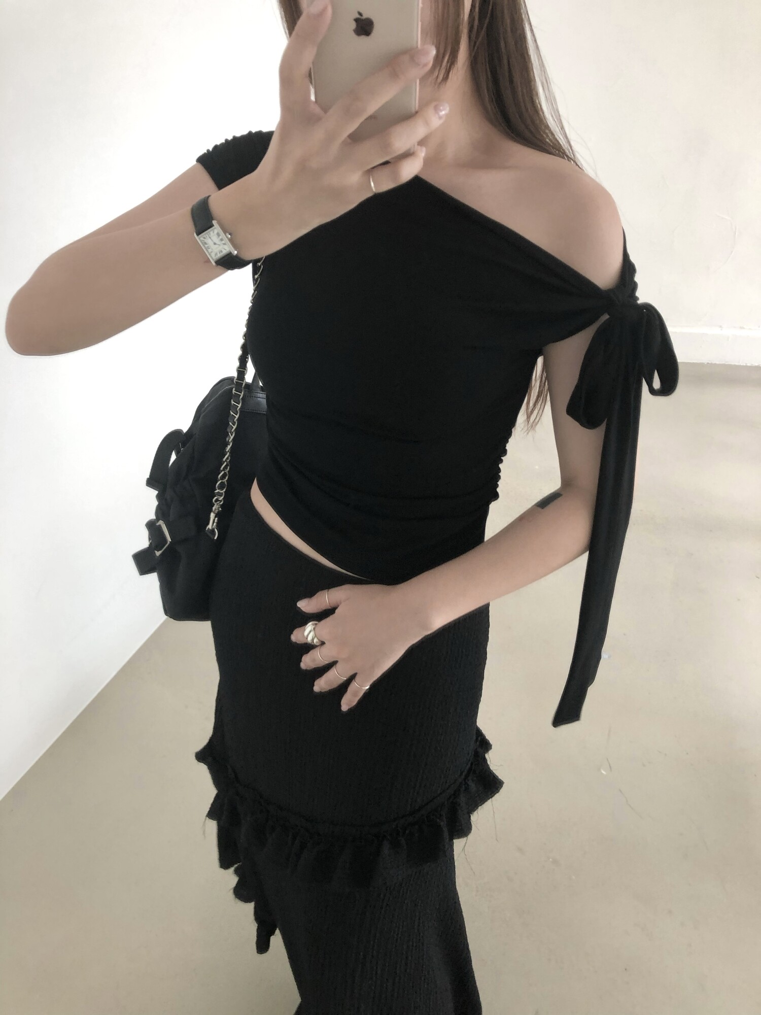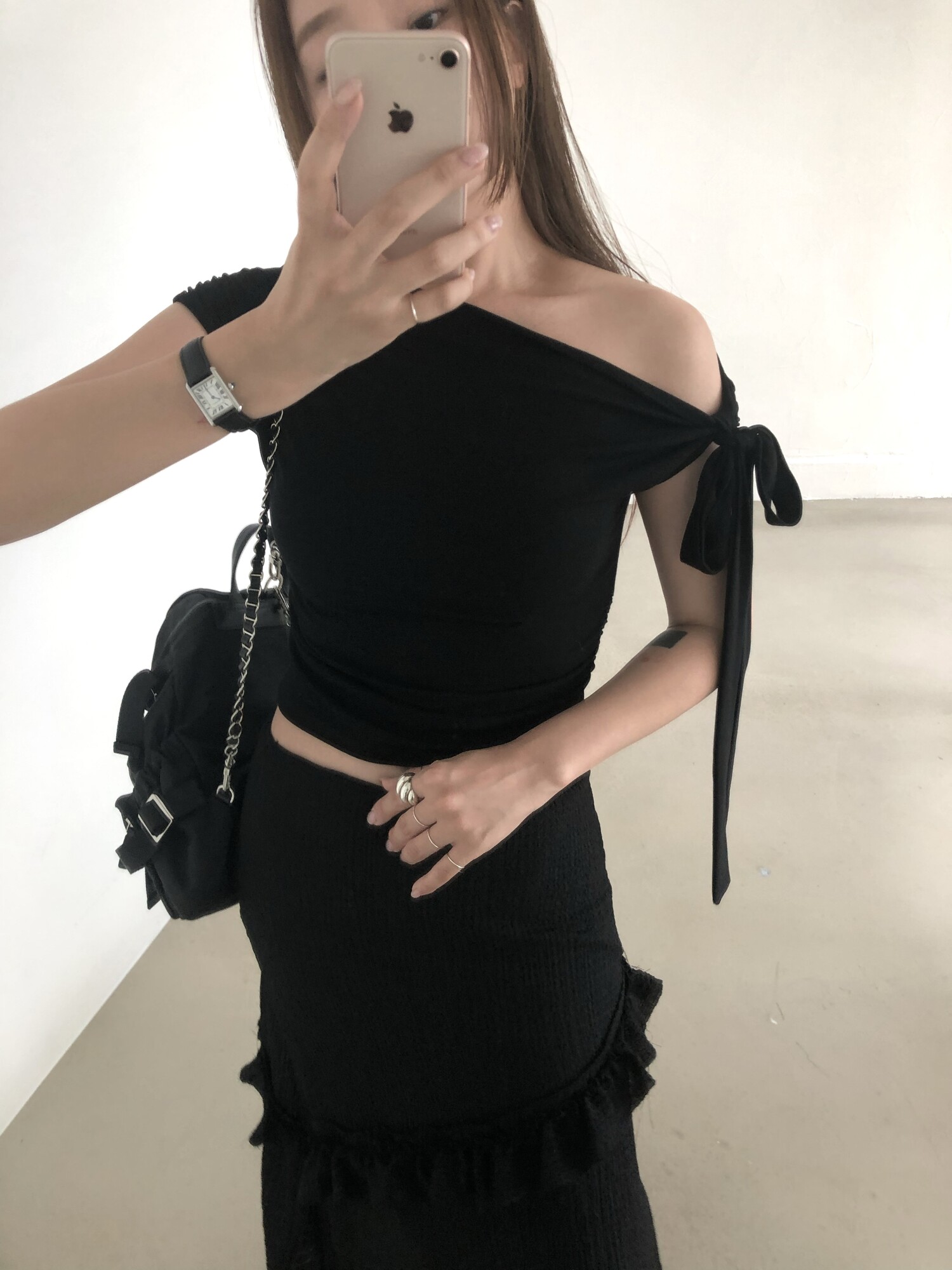 블랙 롱 스커트는 거래처 품절된 상품입니다. 스타일링 참고만 부탁드립니다.