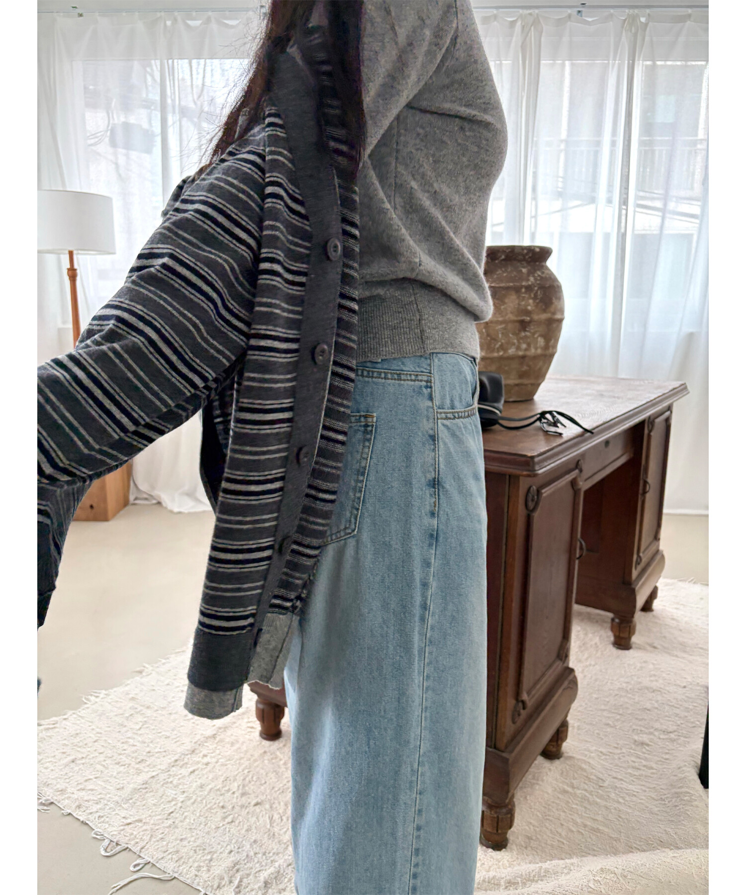 -밝은 빈티지 연청으로 시즌리스 활용하기 좋은 아이템(두껍지 않고 얇은 편입니다.)