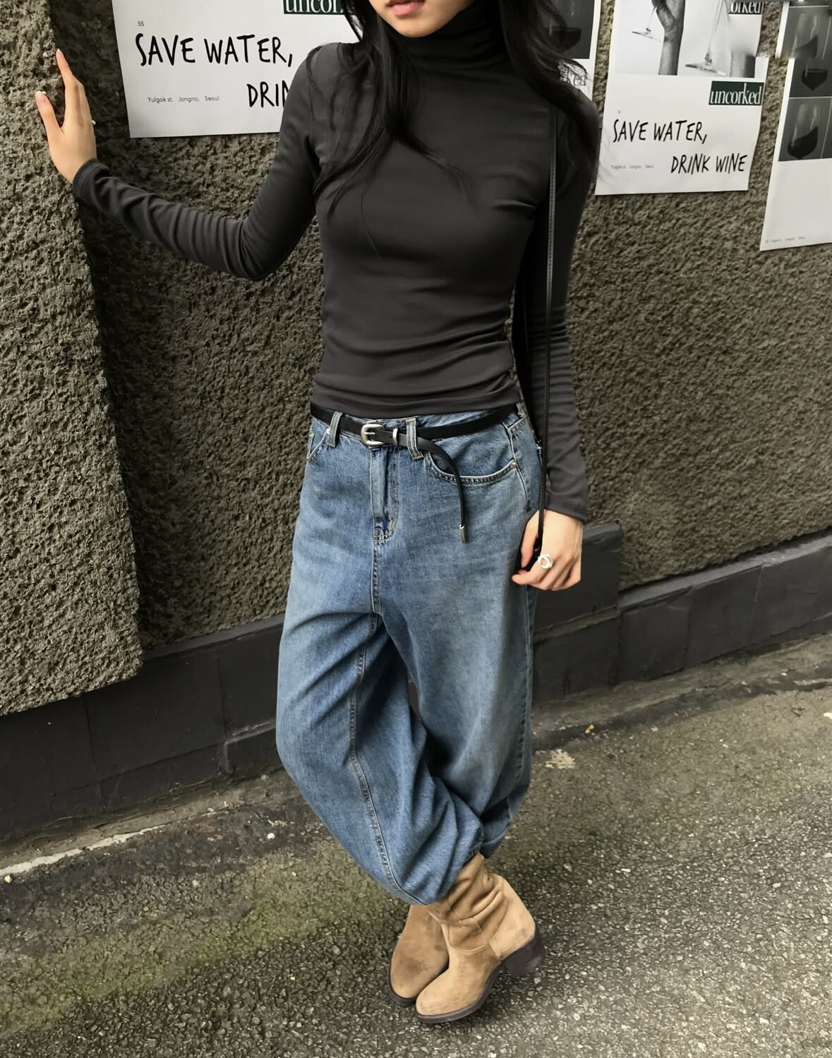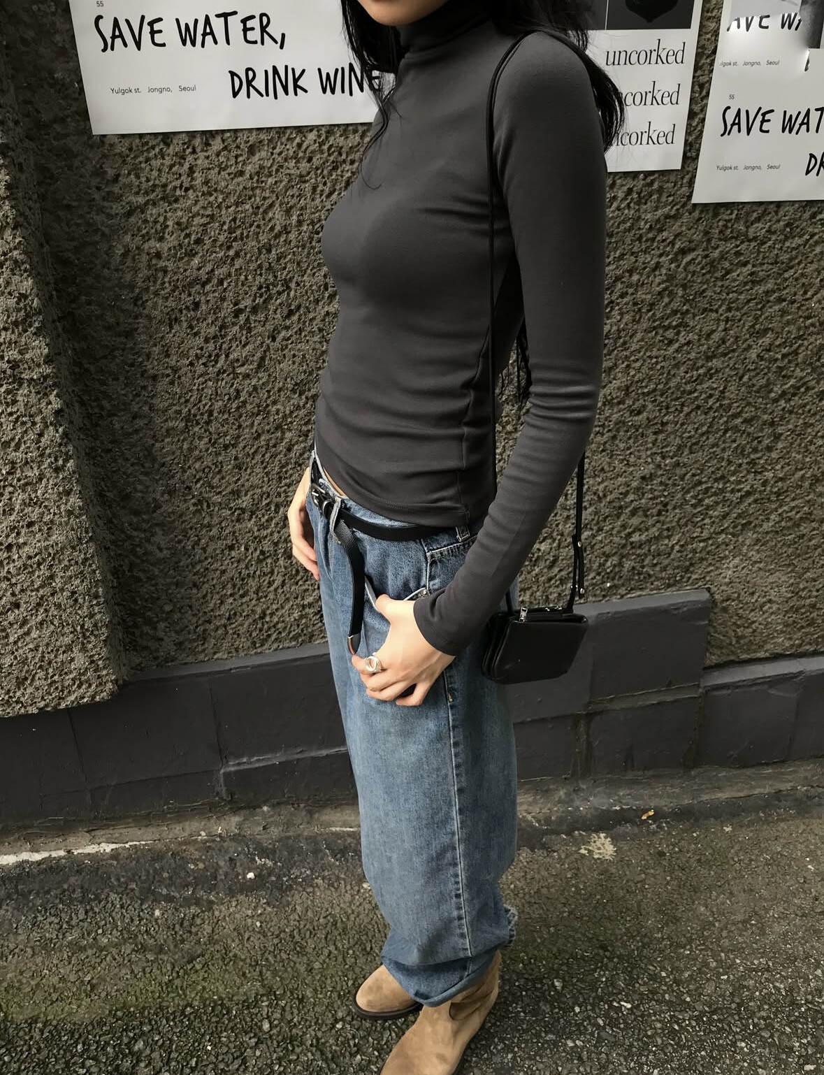 -부드럽고 탄탄하면서도 텐셀감 좋은 소재감의 터틀넥 티