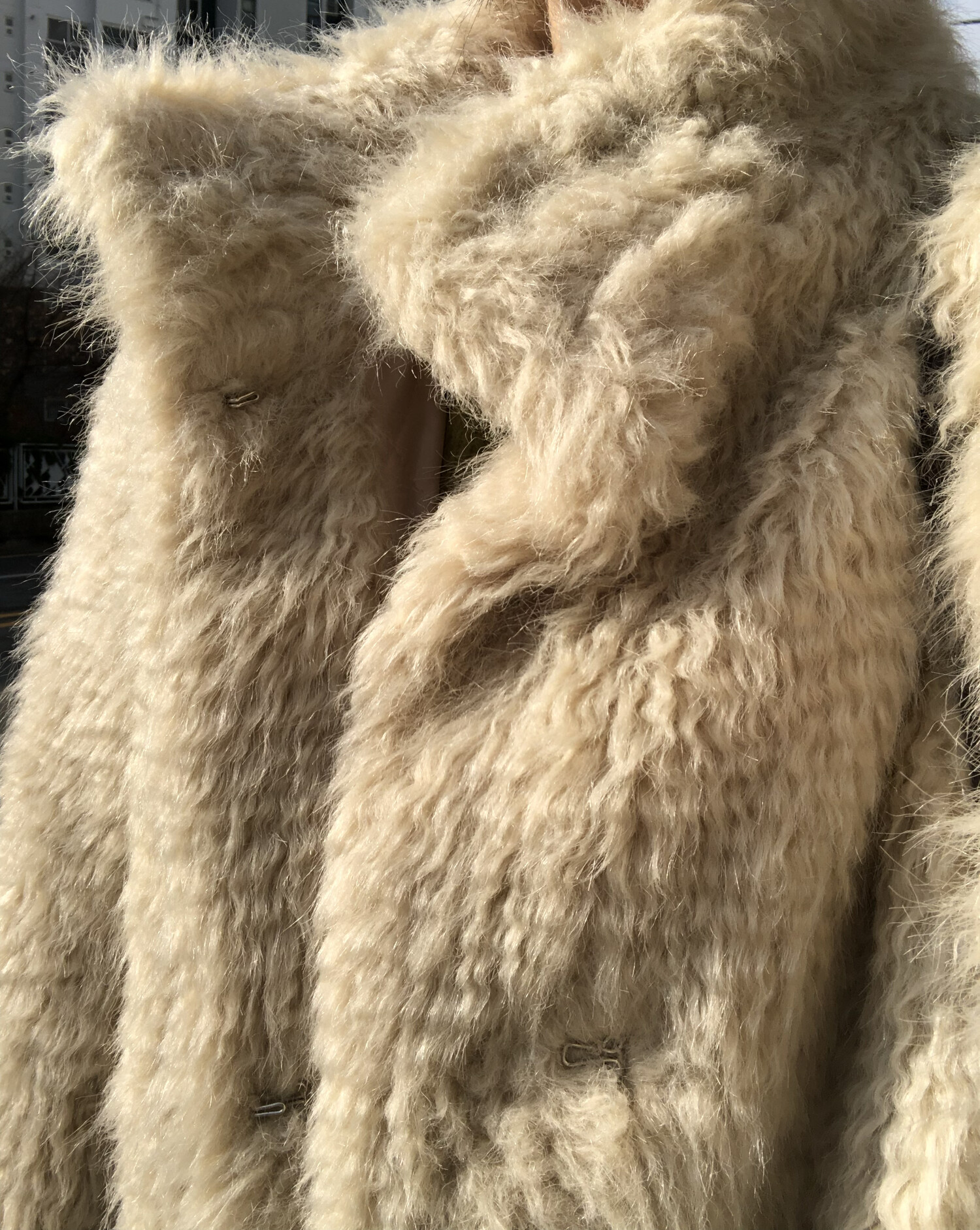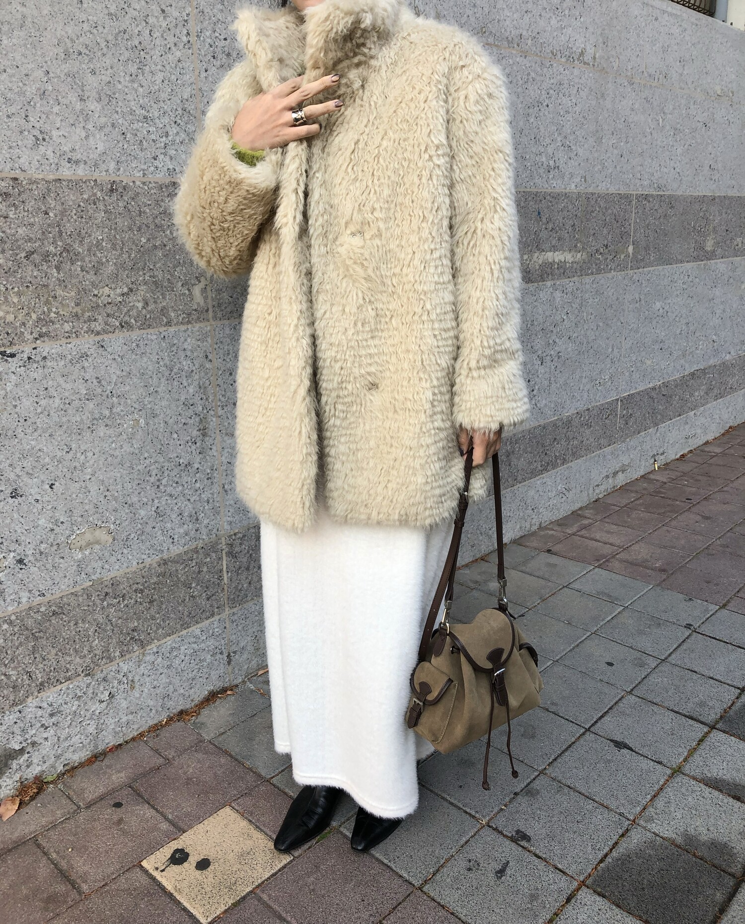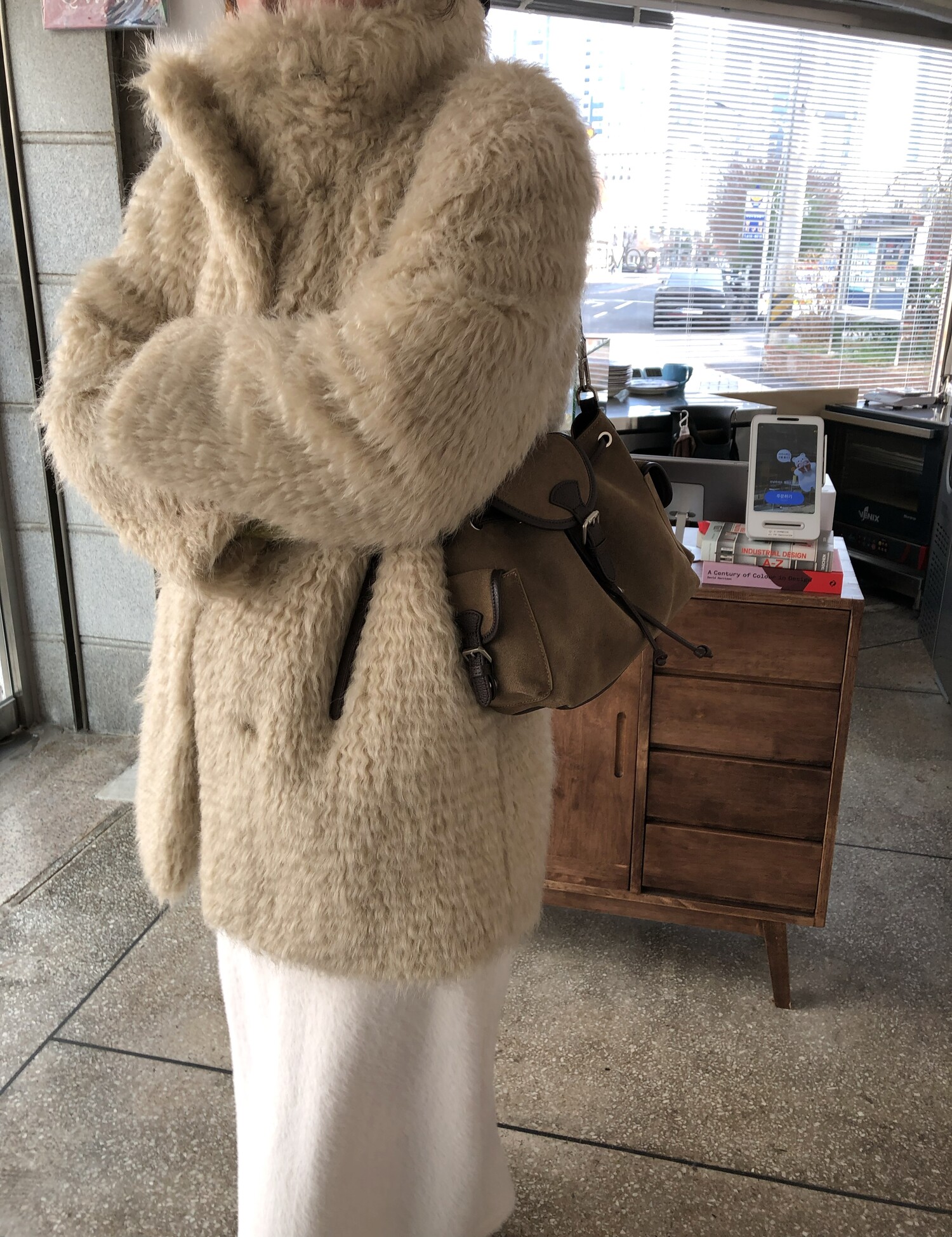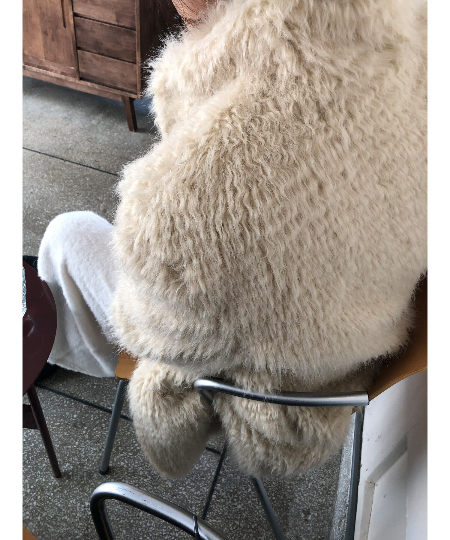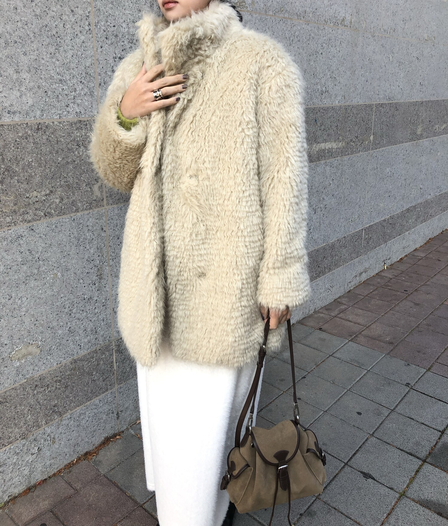 -컬리한 퍼의 텍스처가 매력적인 하이넥 하프 퍼재킷