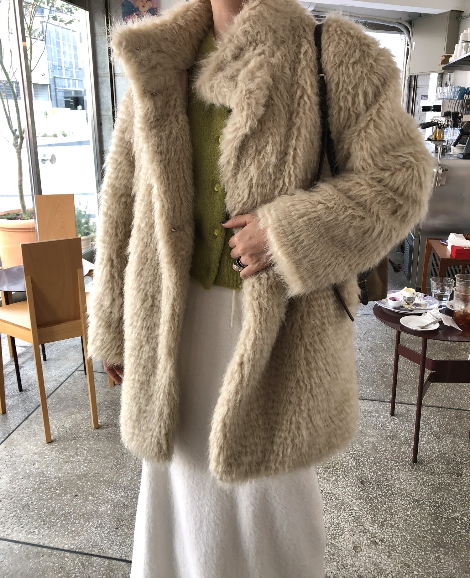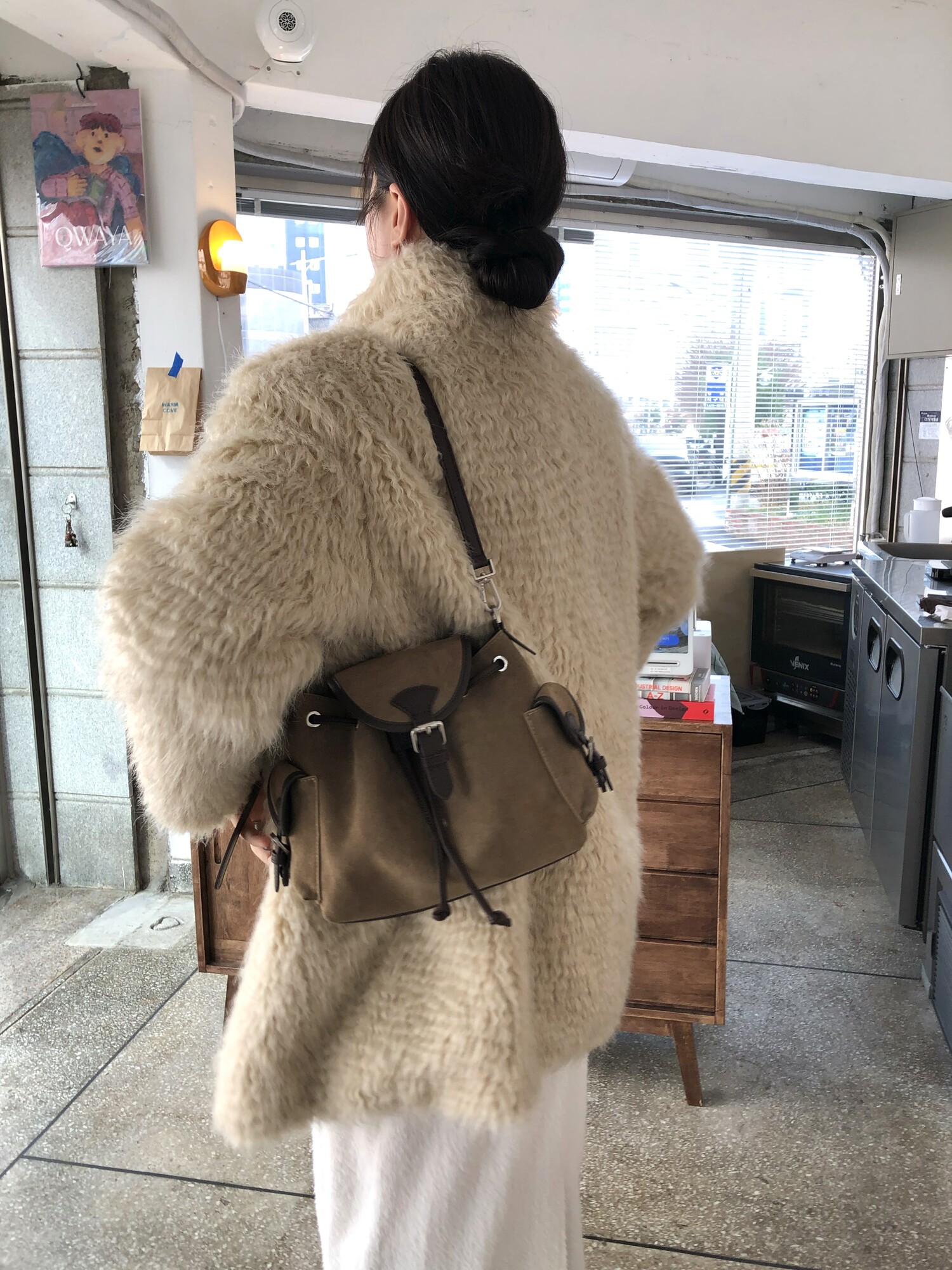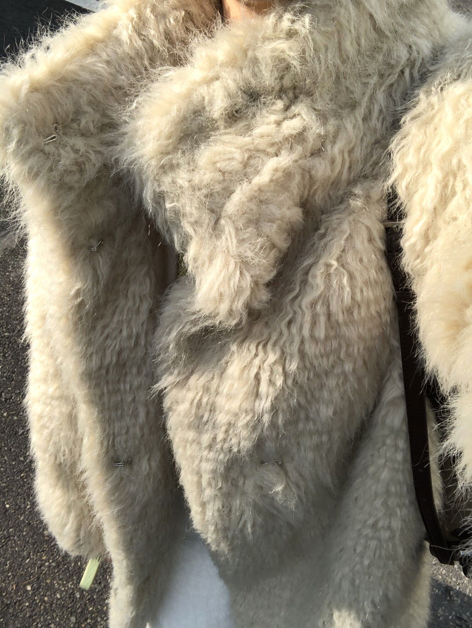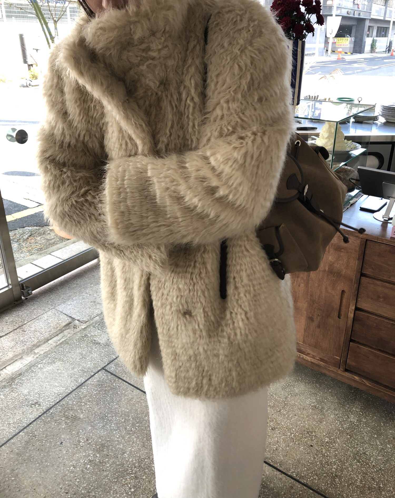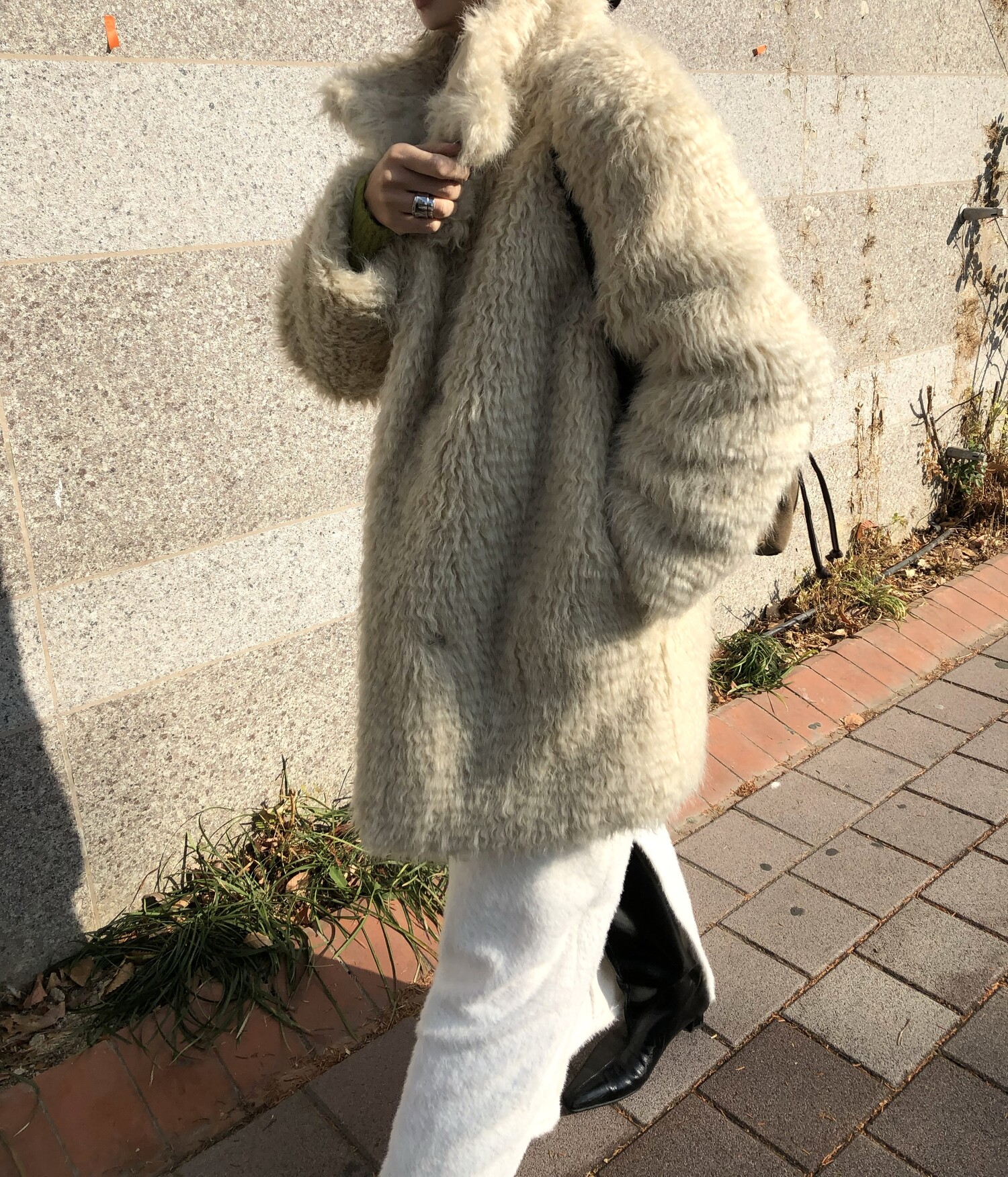 -컬리한 퍼의 텍스처가 매력적인 하이넥 하프 퍼재킷
