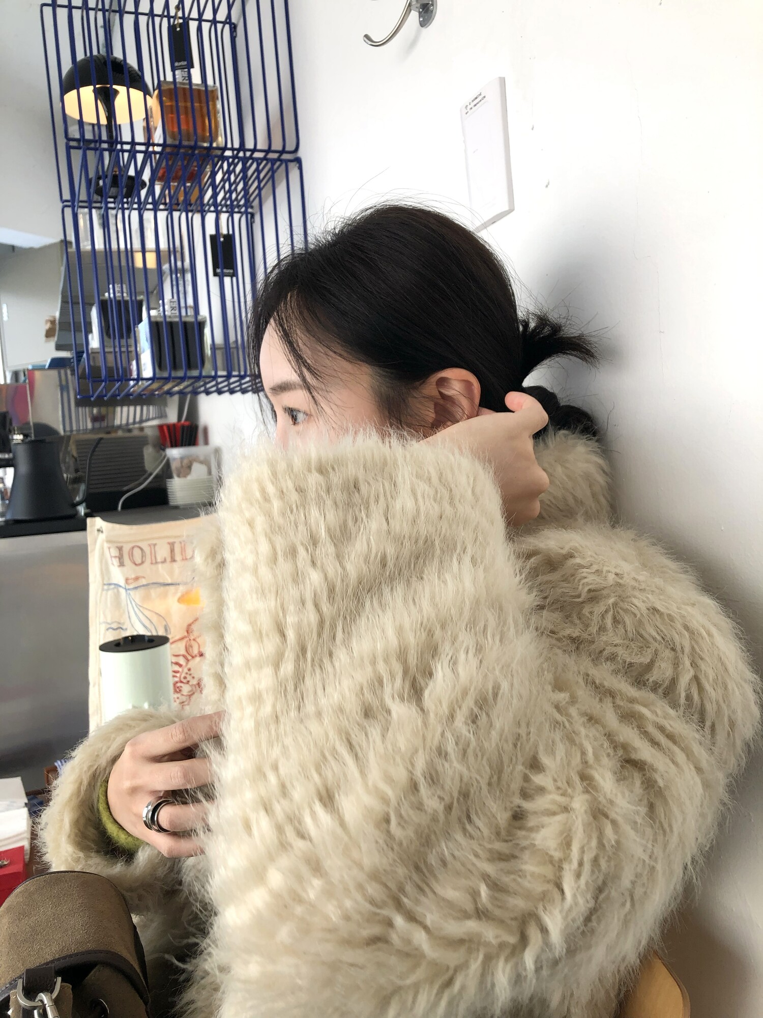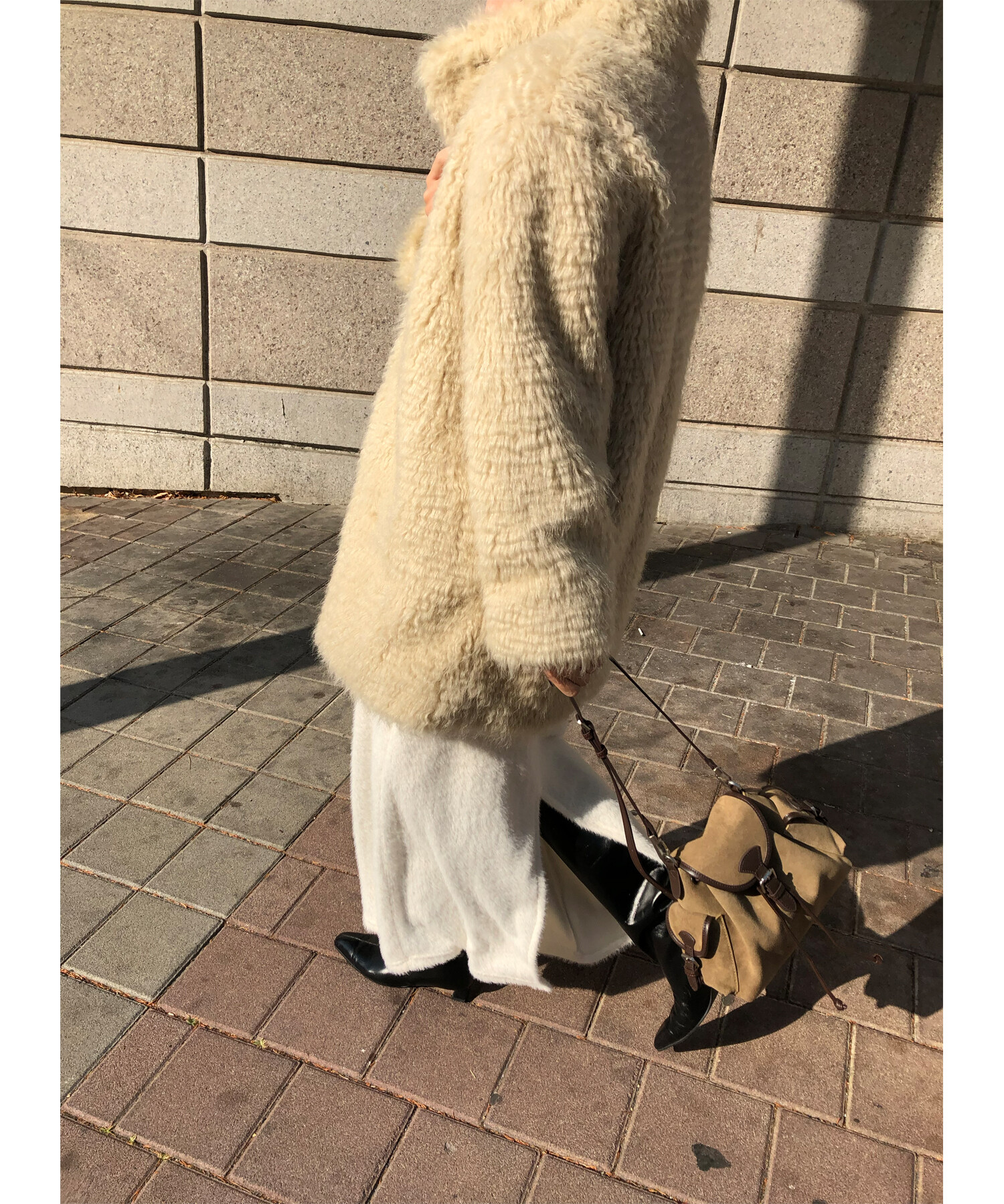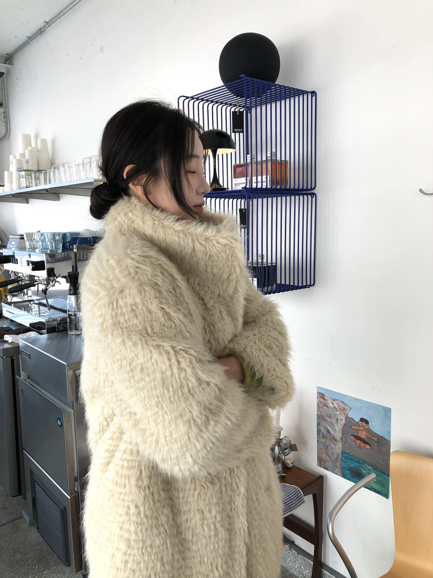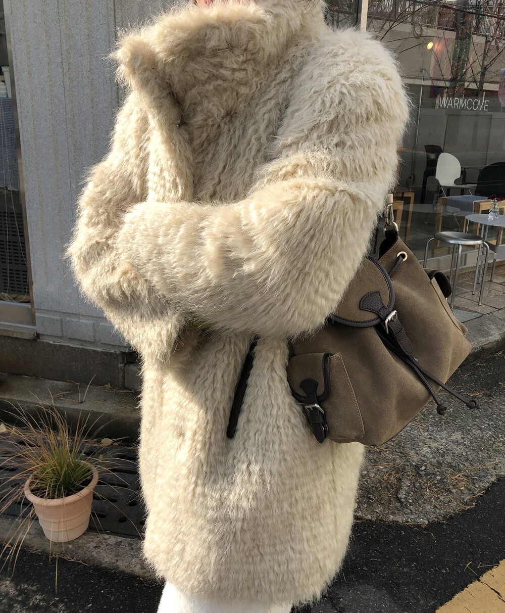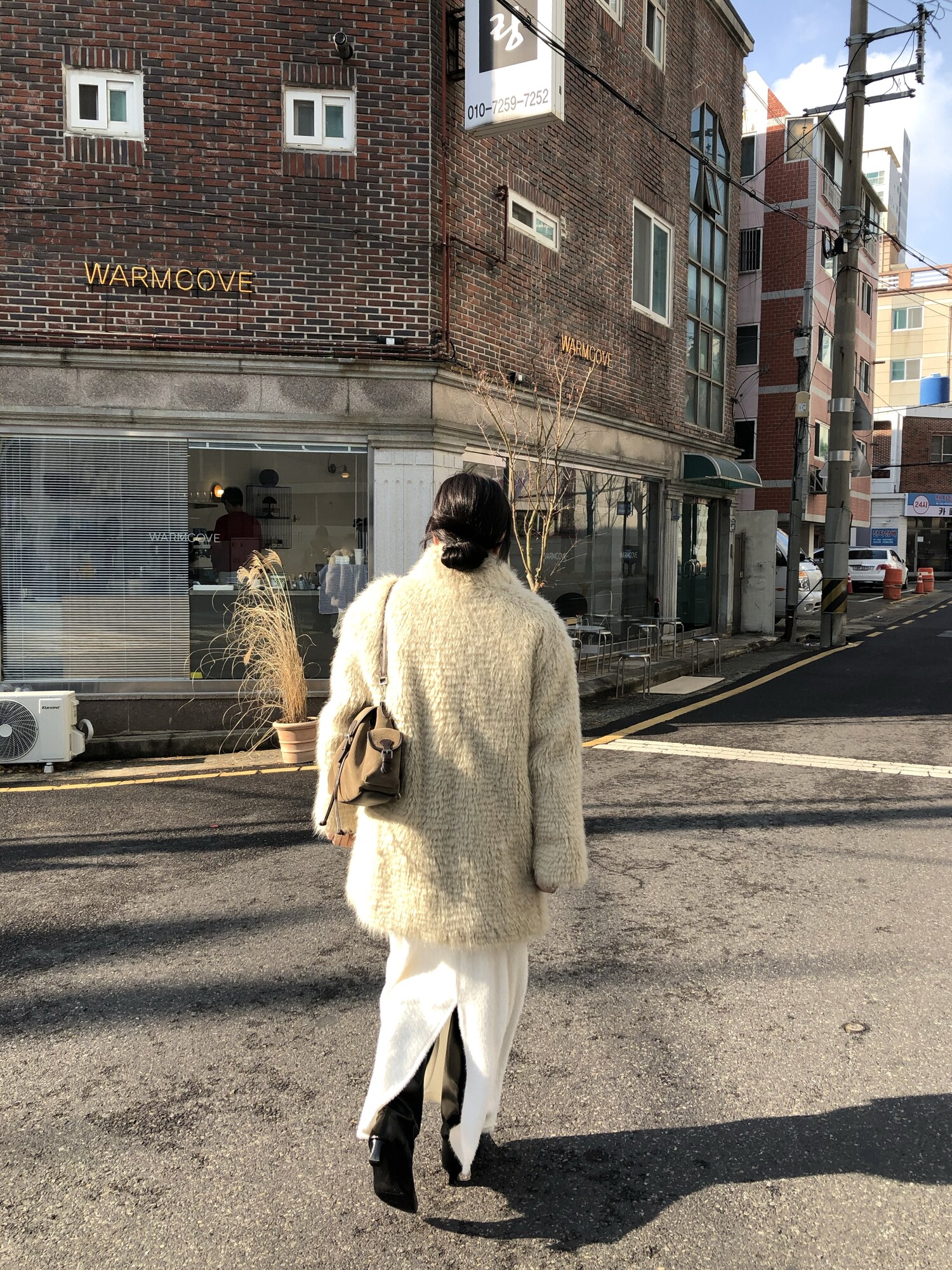 -컬리한 퍼의 텍스처가 매력적인 하이넥 하프 퍼재킷