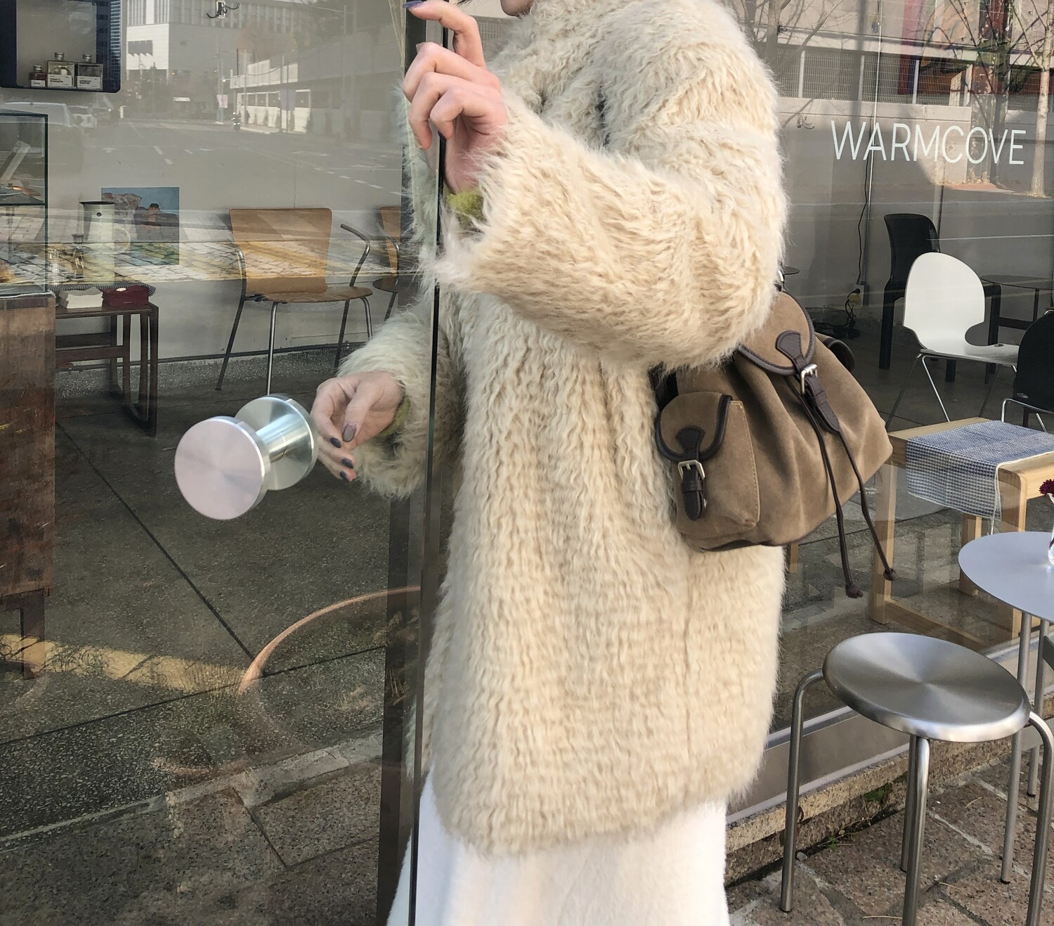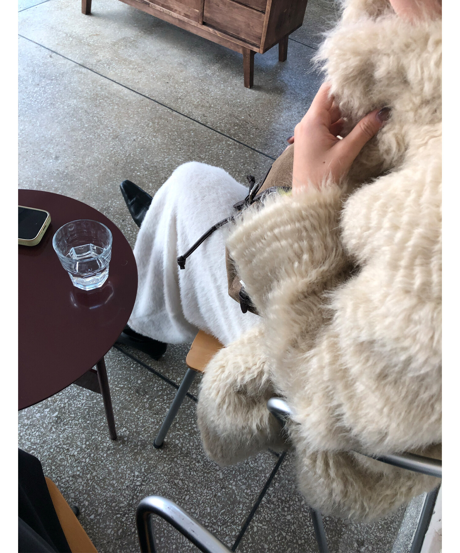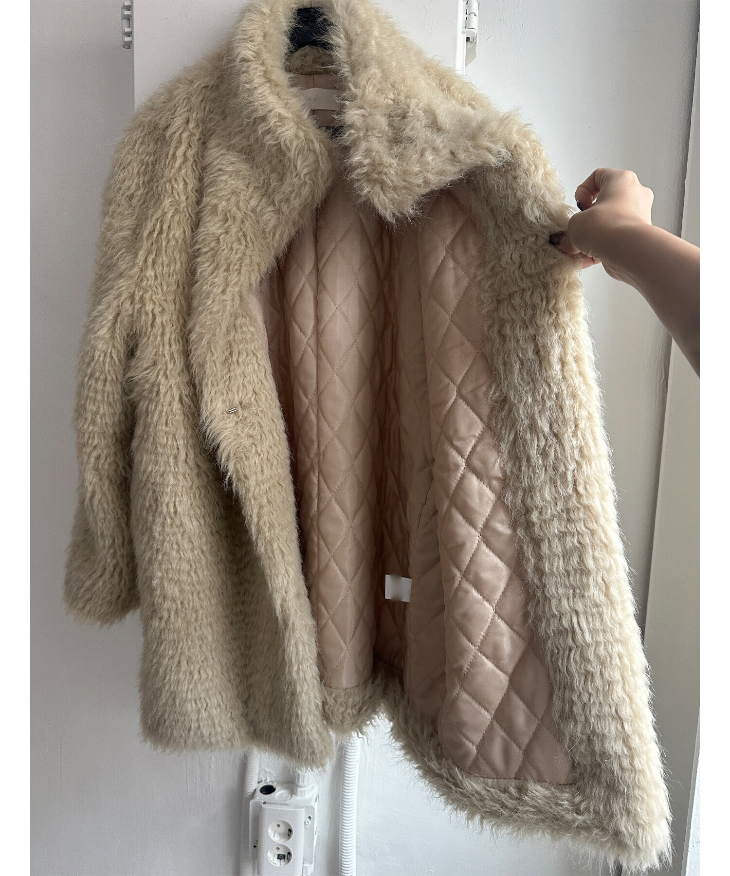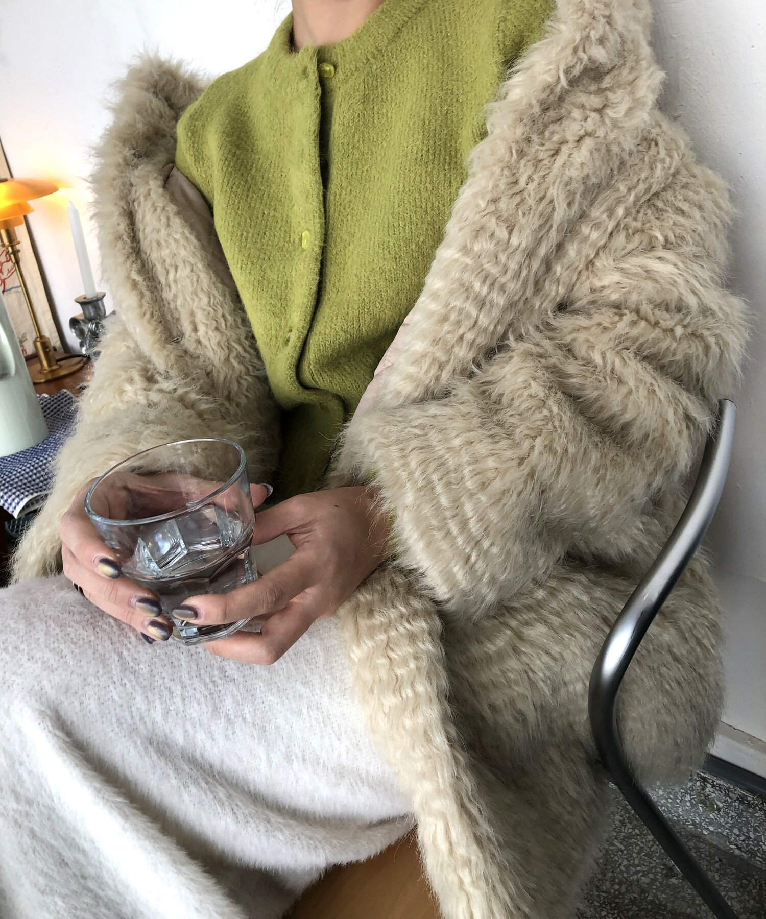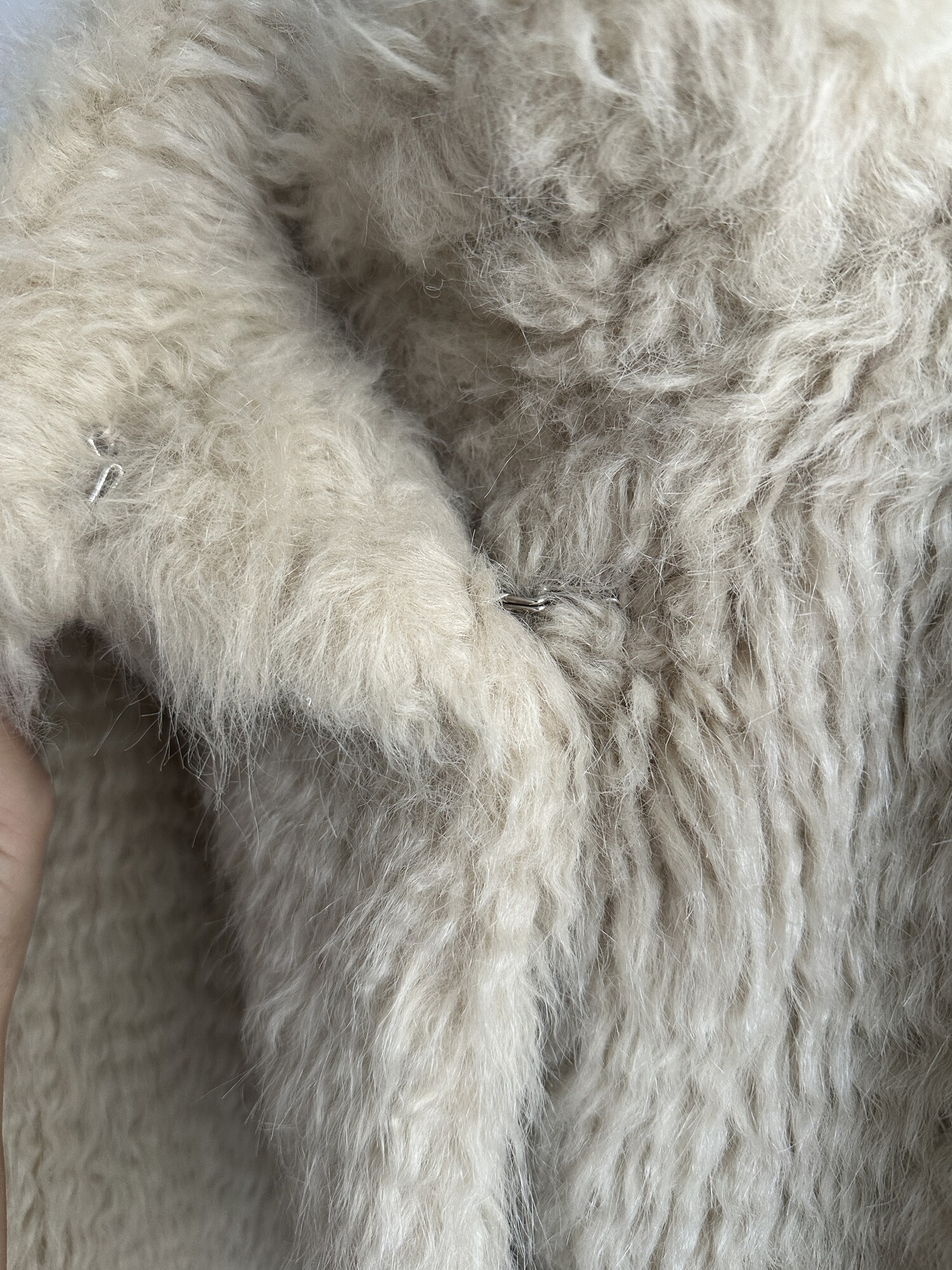 -컬리한 퍼의 텍스처가 매력적인 하이넥 하프 퍼재킷