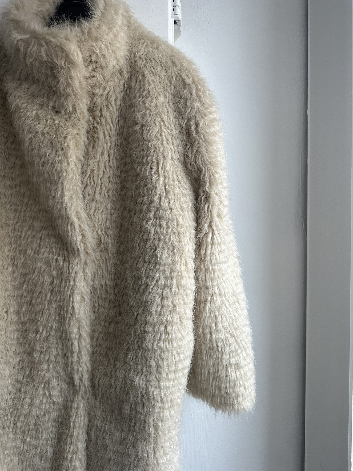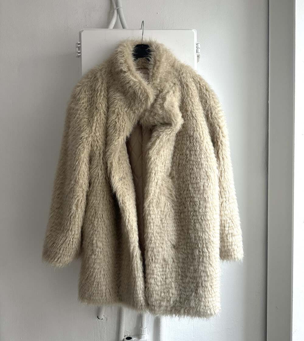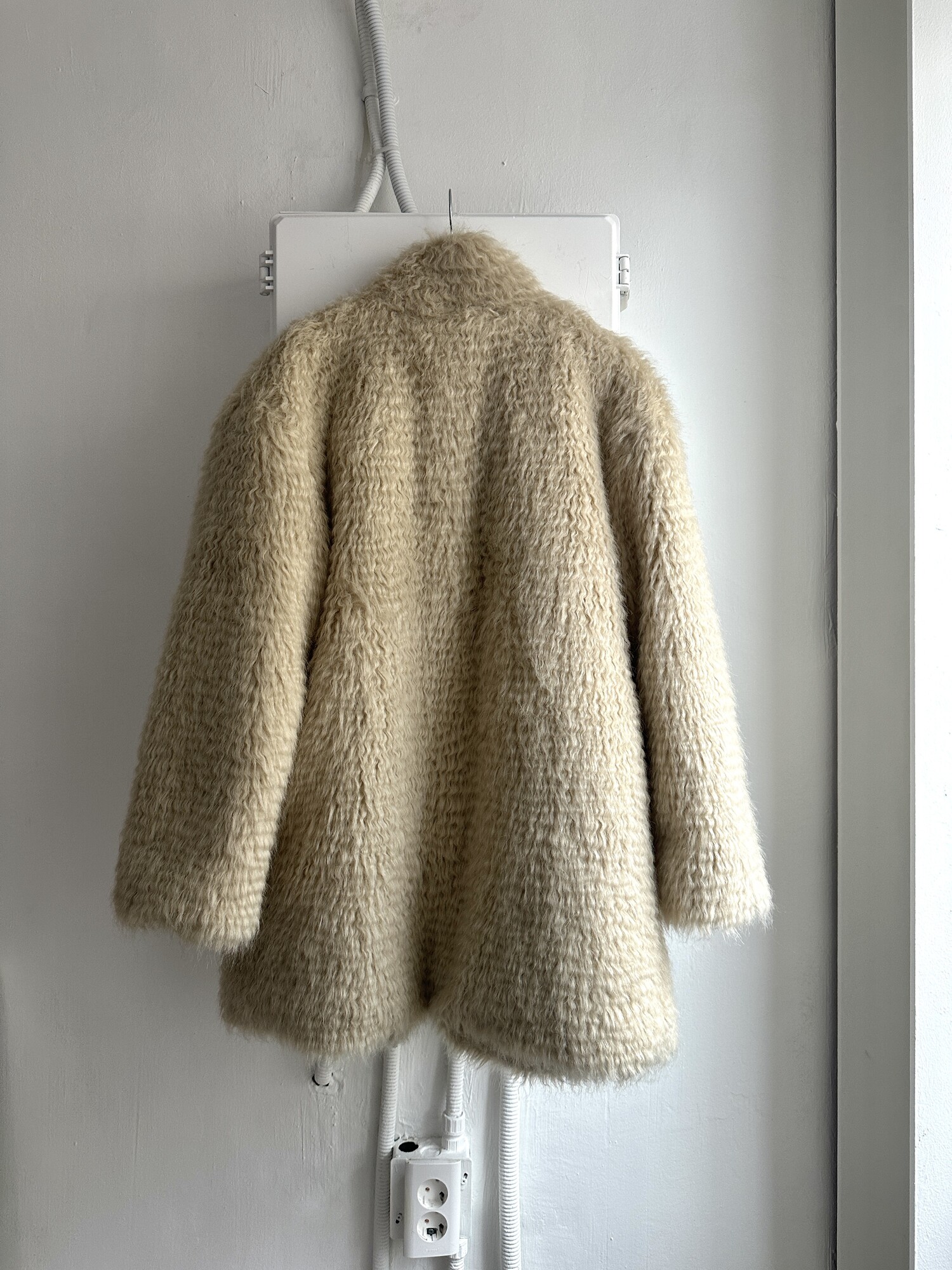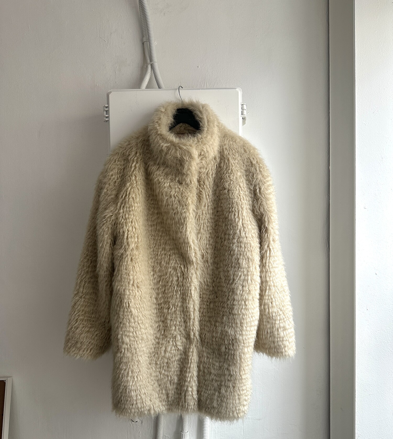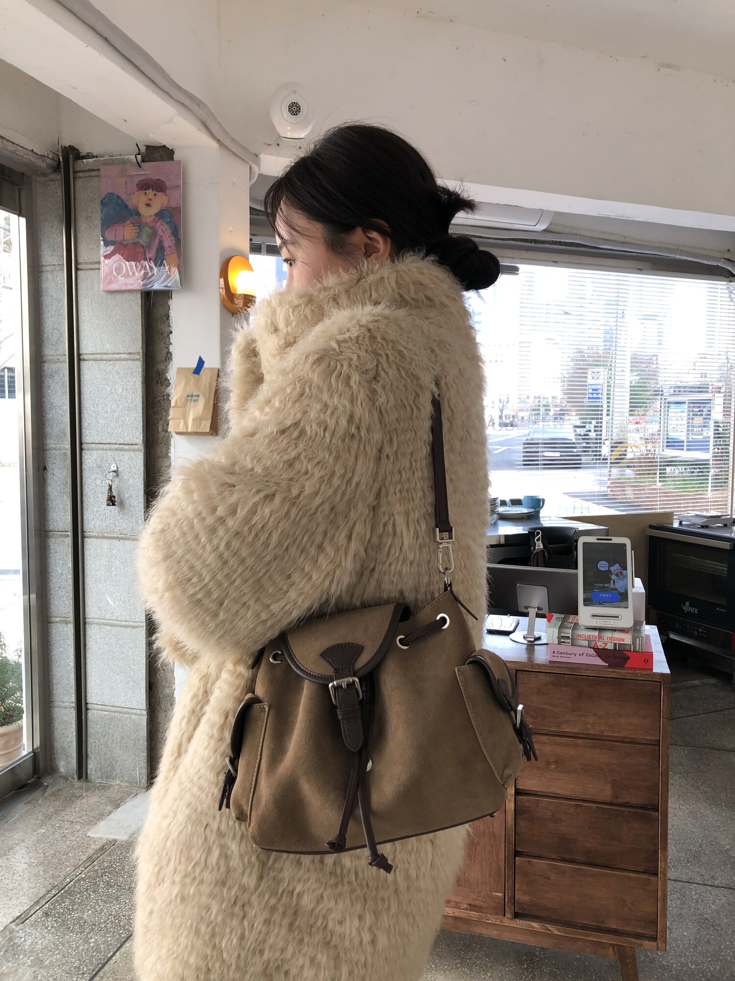 -컬리한 퍼의 텍스처가 매력적인 하이넥 하프 퍼재킷